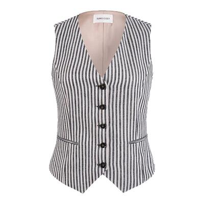 "Gentlewomen" 收腰亚麻休闲通勤修身马甲镰刀裤套装100%亚麻高腰