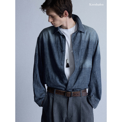"来自老友记 "棉麻水洗渐变色牛仔蓝长袖衬衫| kernhafen柯恩哈芬