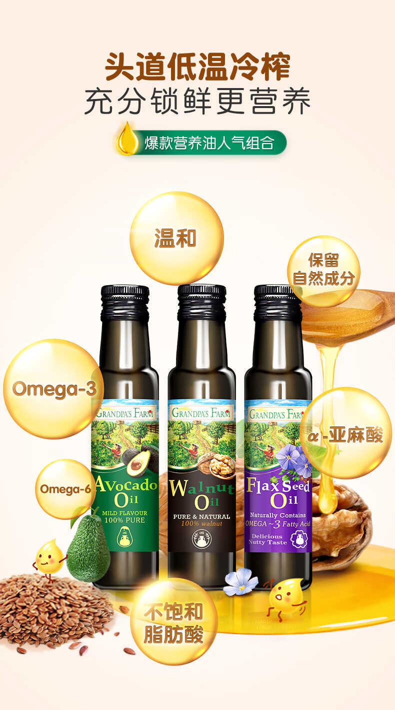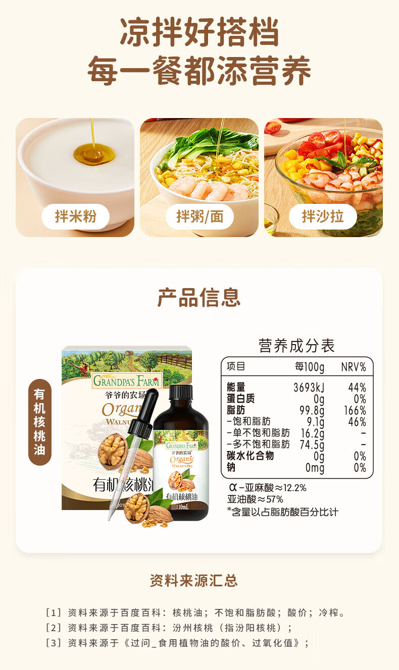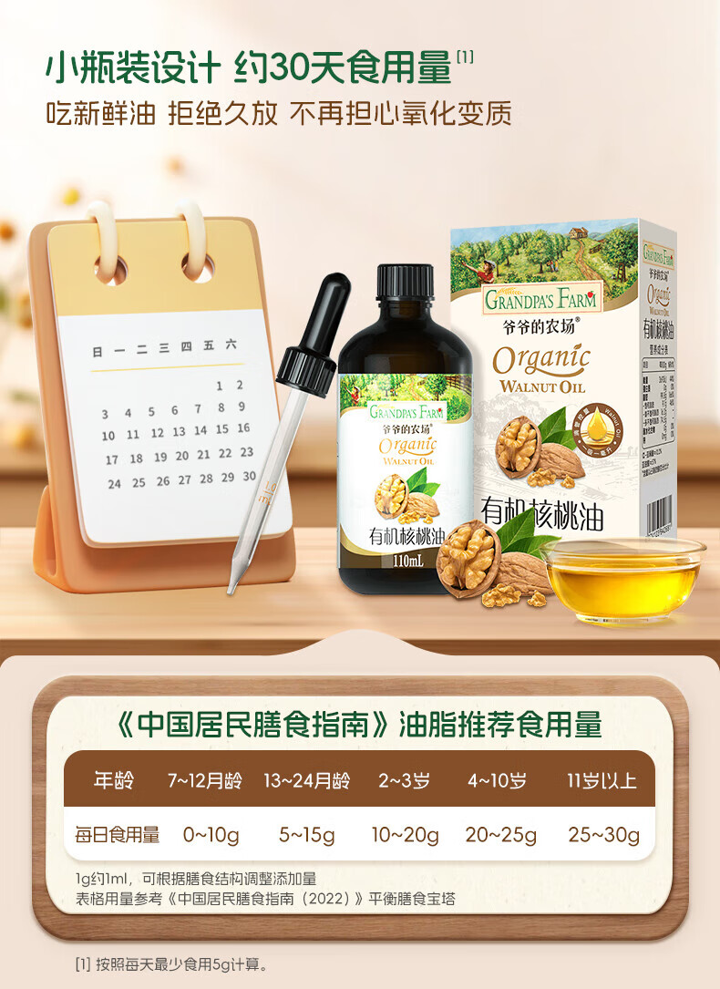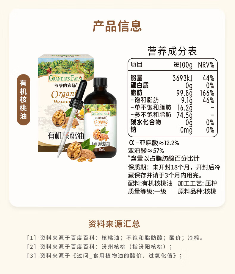 爷爷的农场儿童辅食油热炒油小瓶滴管冷榨营养辅食添加食用油110ml 【滴管控量】有机紫苏籽油110ml