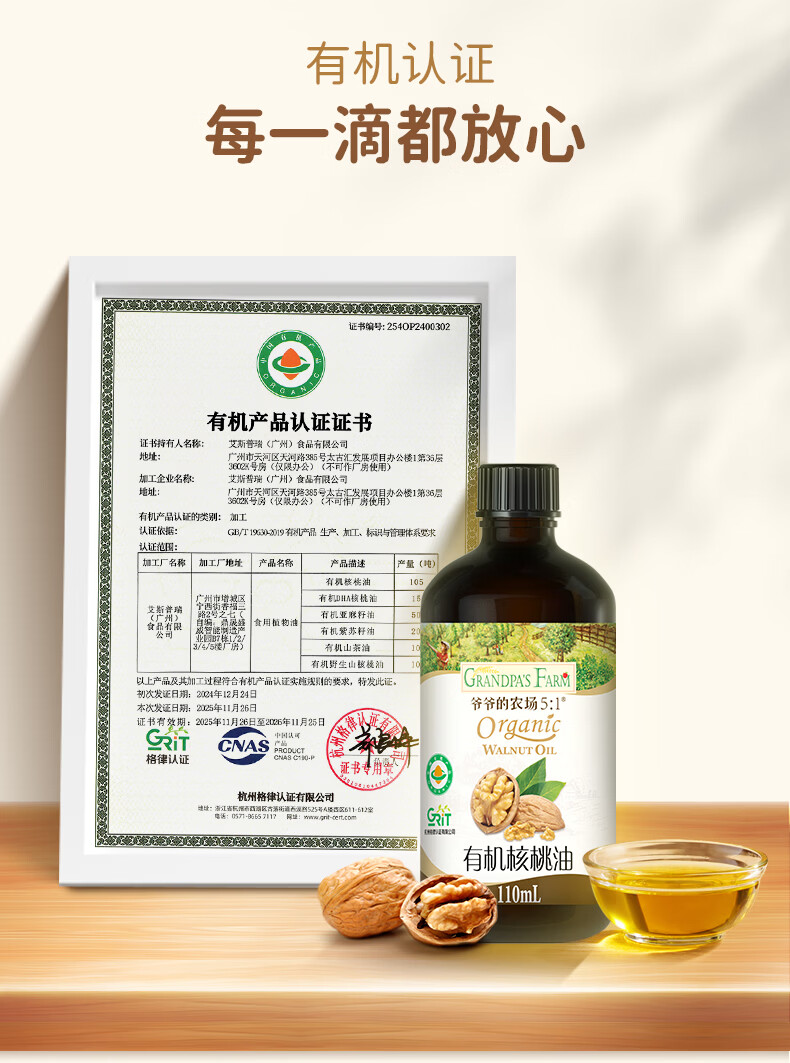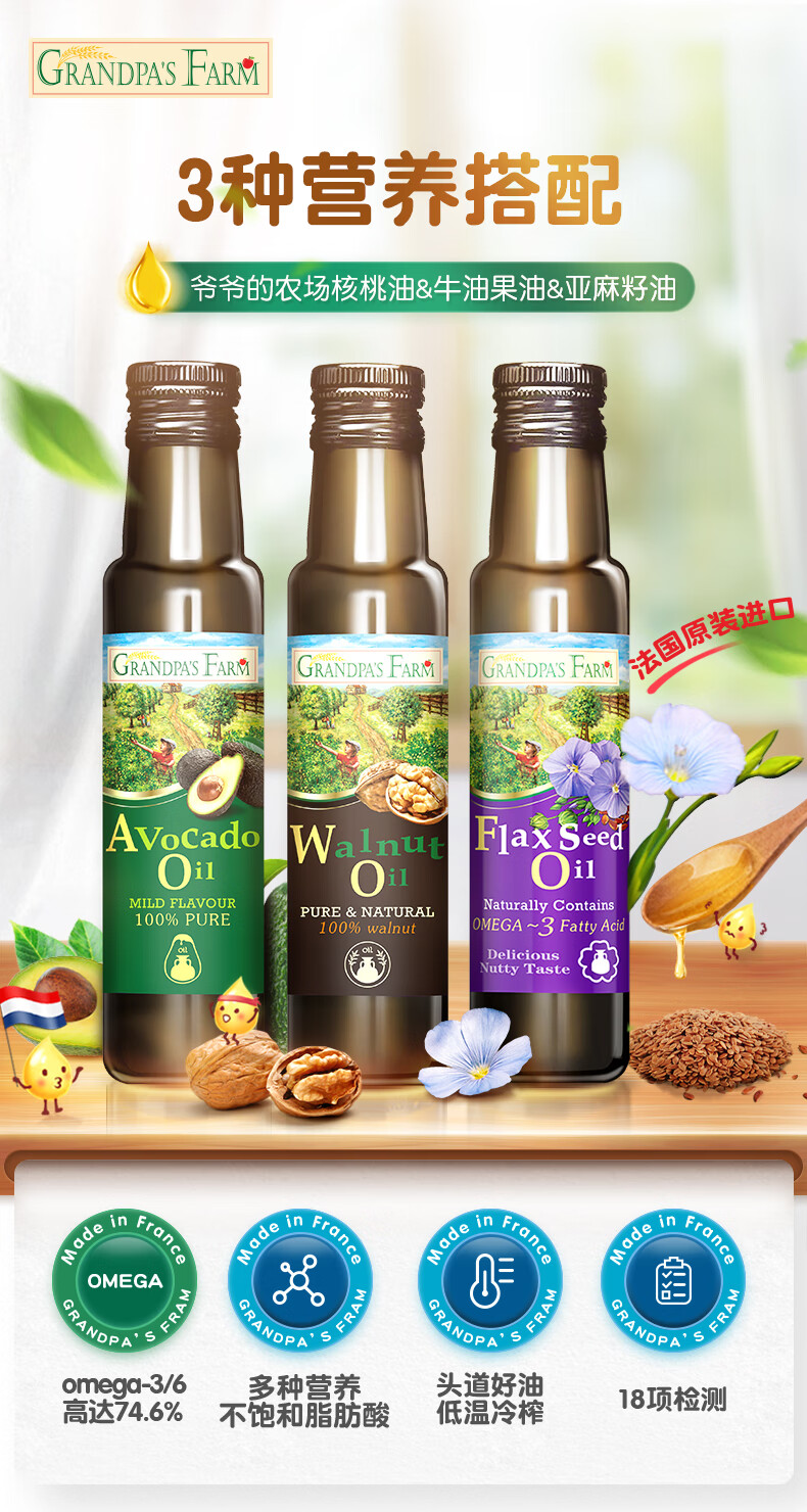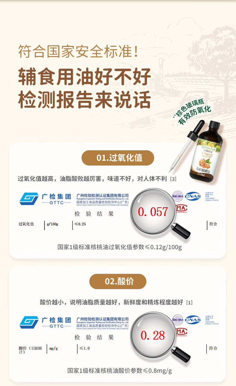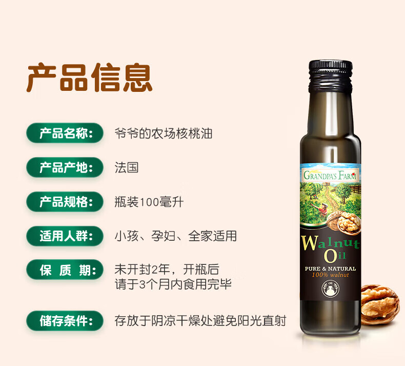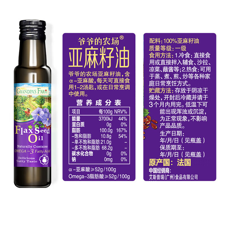 爷爷的农场儿童辅食油热炒油小瓶滴管冷榨营养辅食添加食用油110ml 【滴管控量】有机紫苏籽油110ml