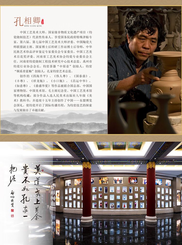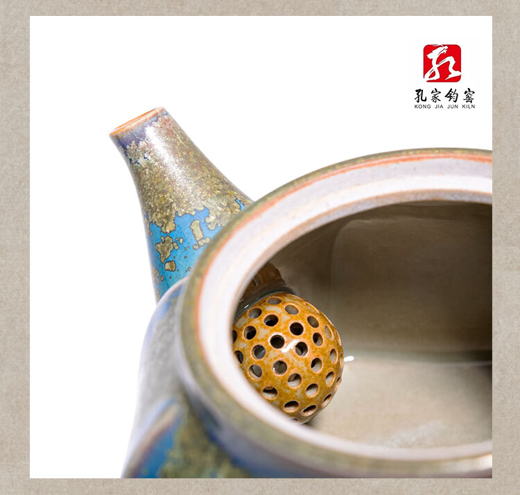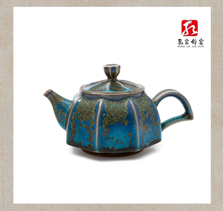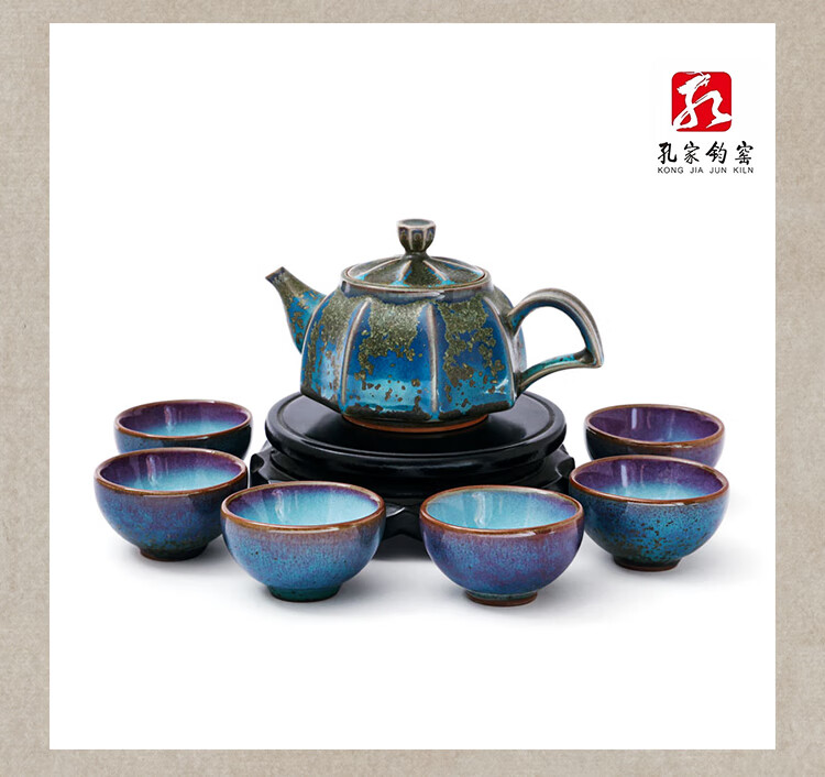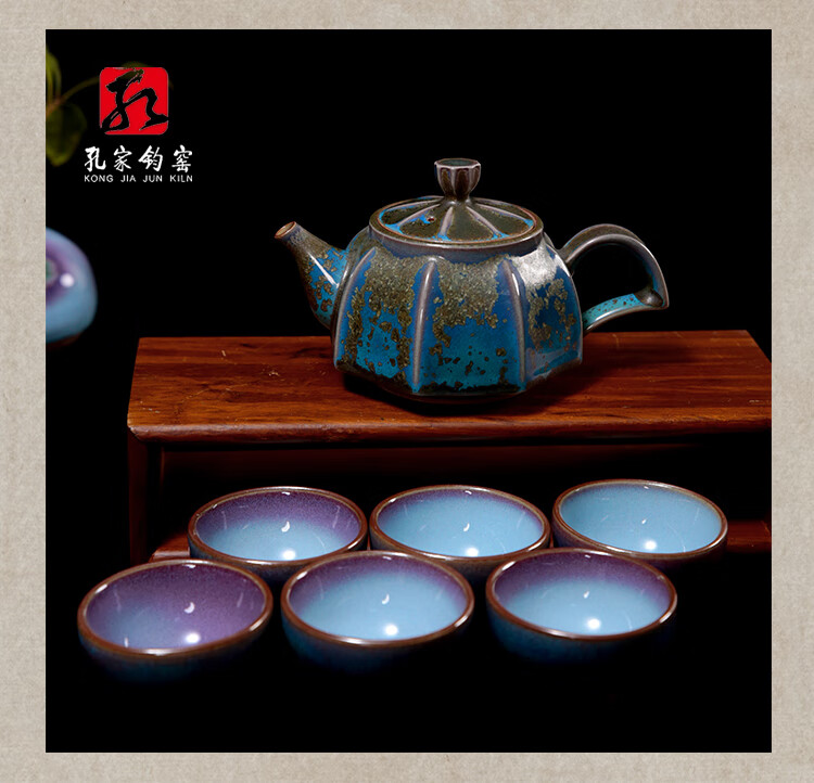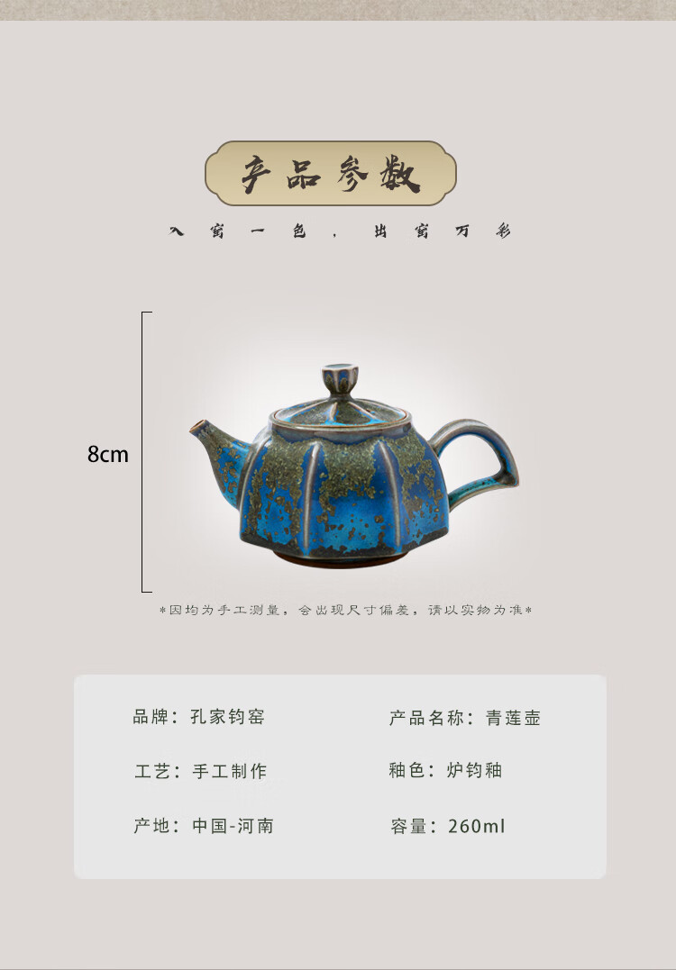 孔家钧窑官窑钧瓷青莲壶功夫茶具家用泡茶壶 【套装 一壶六杯】 260ml