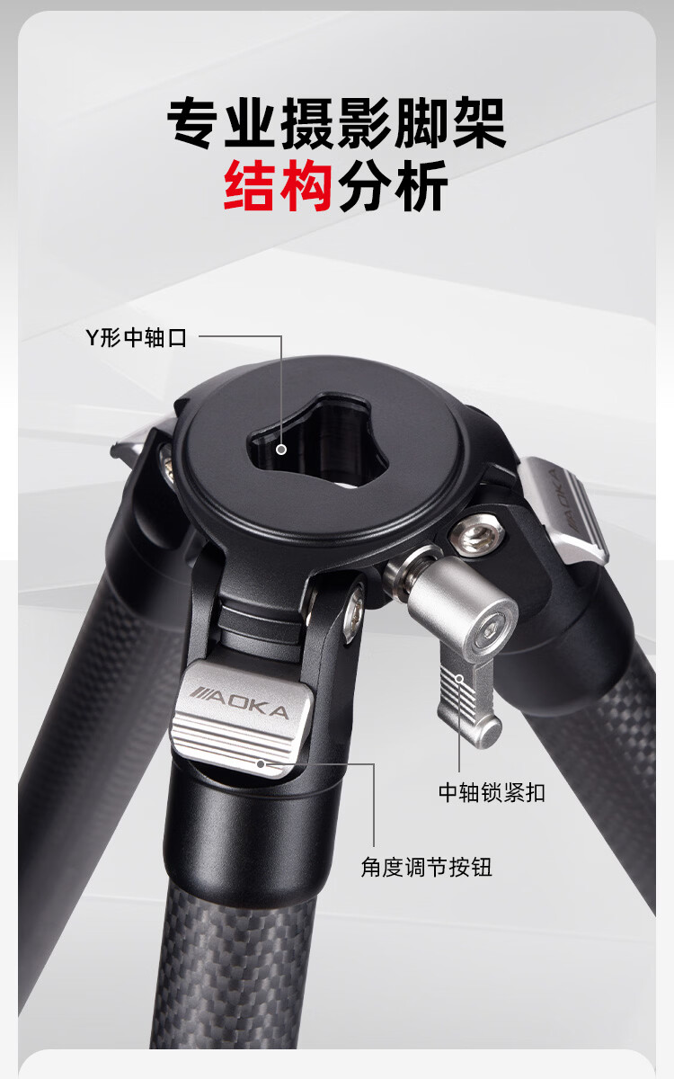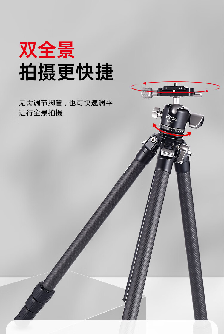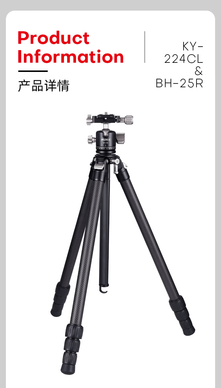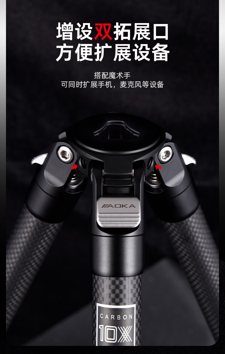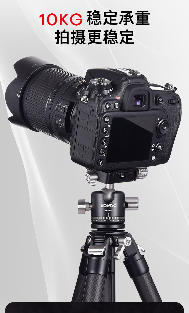 AOKA奥咔KY224CL碳纤维三脚架双全景云台套装便携三脚架户外旅行拍摄vlog视频支架专业微单摄影 黑色 KY224CL