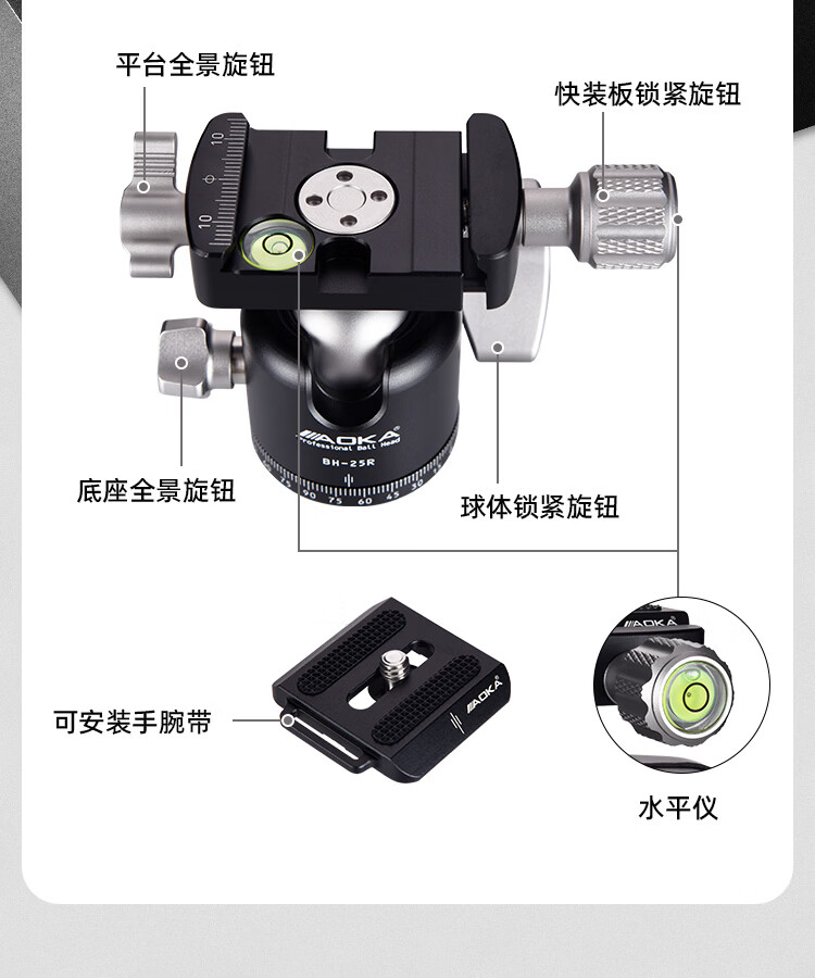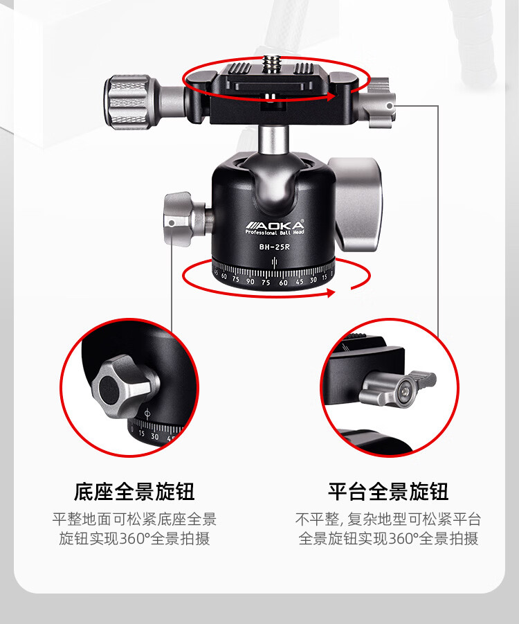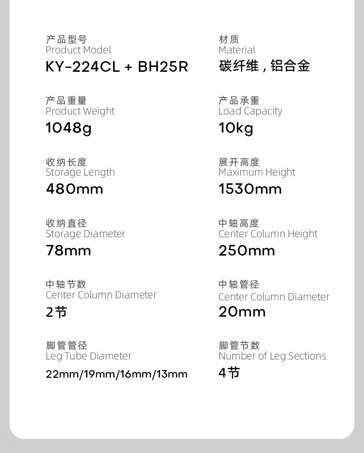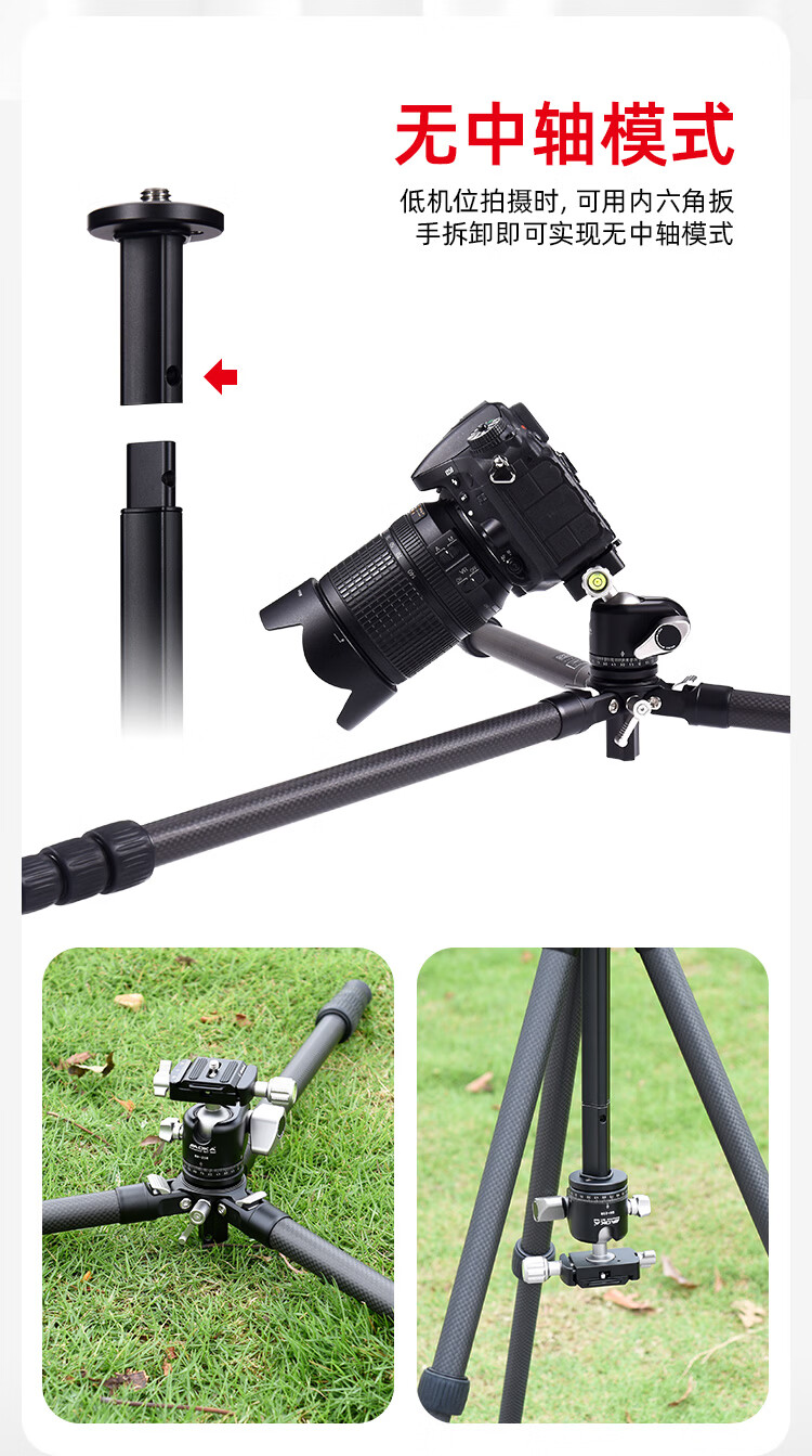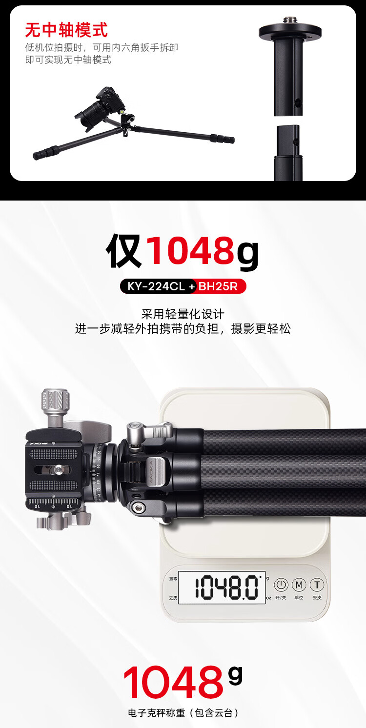 AOKA奥咔KY224CL碳纤维三脚架双全景云台套装便携三脚架户外旅行拍摄vlog视频支架专业微单摄影 黑色 KY224CL