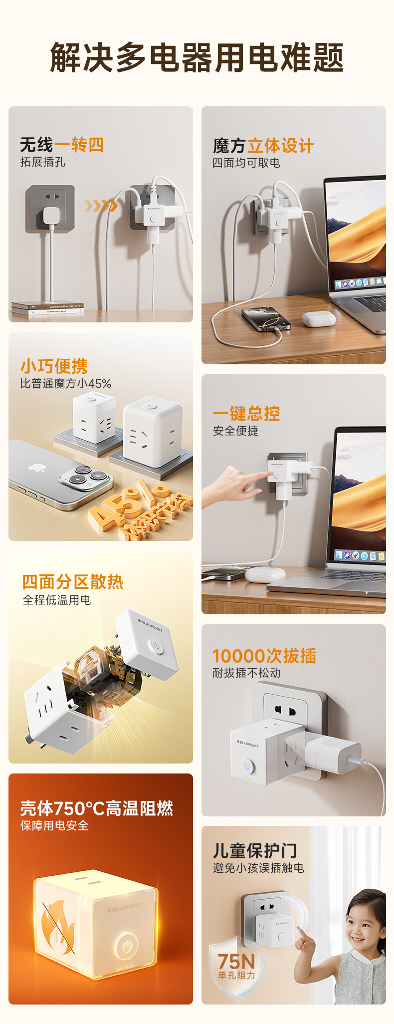 BLAUPUNKT魔方插座/插头转换器/转换插头插座/一转多插座扩展/多功能插座/无线插排