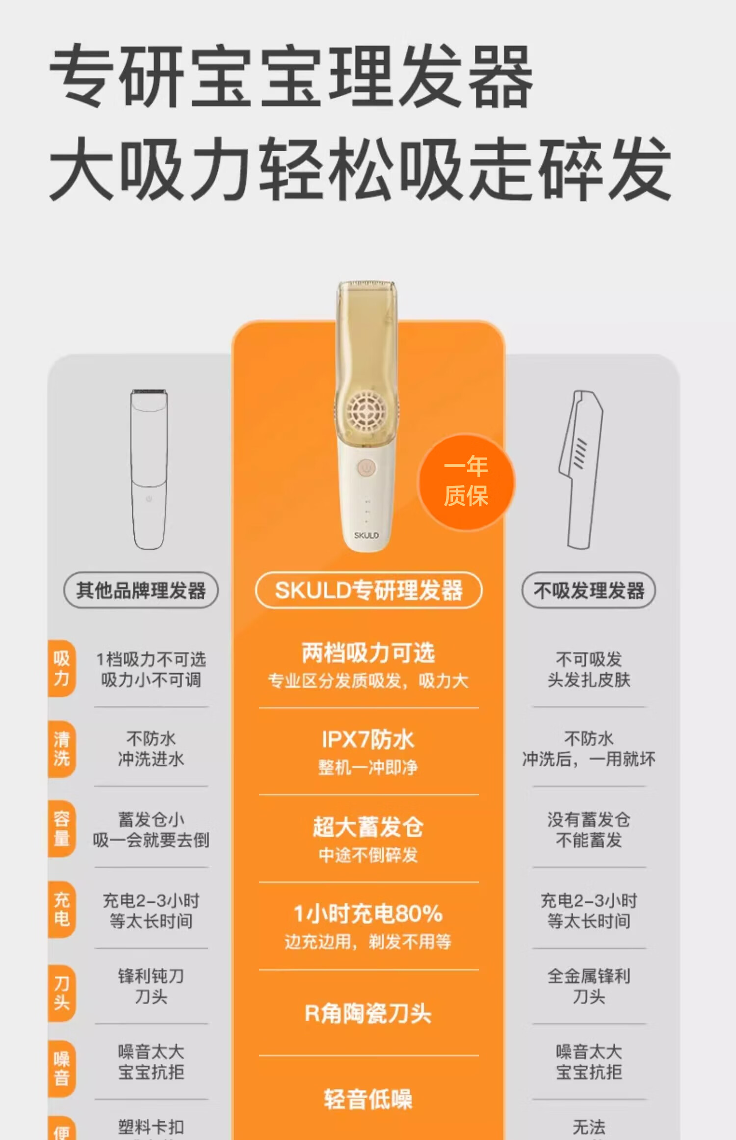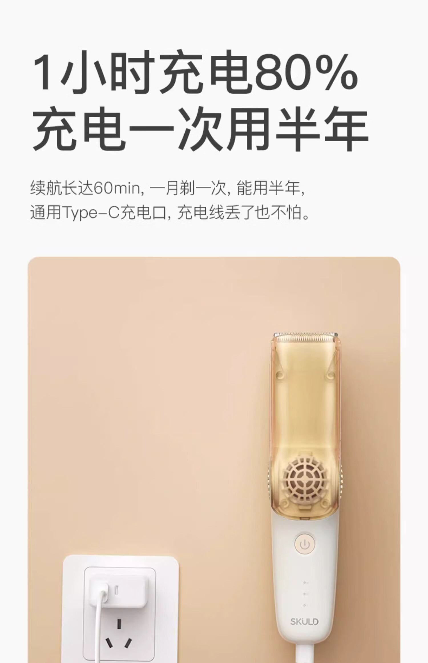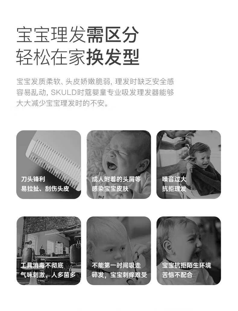 SKULD 时蔻婴儿理发器静音自动吸发电推子 儿童剃发器剃头器防水