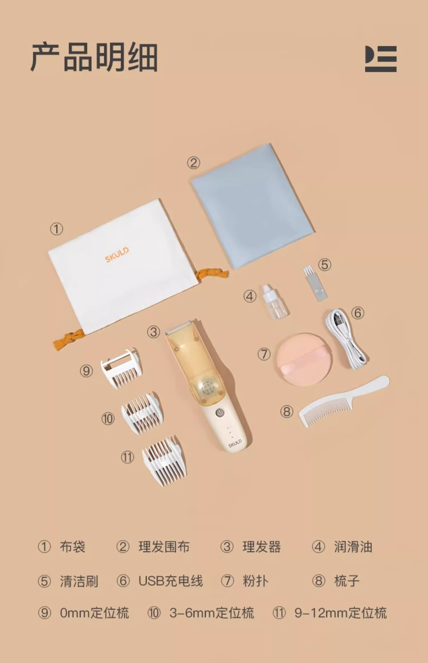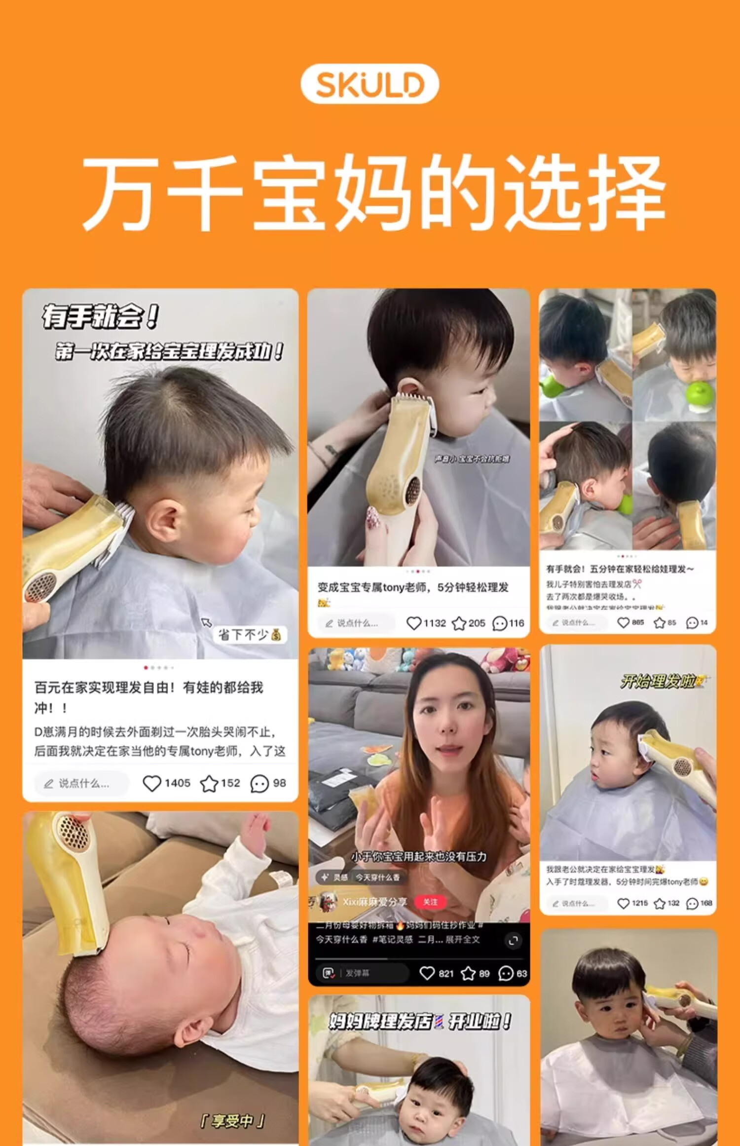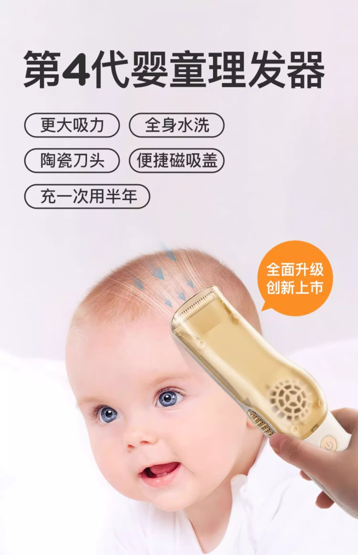 SKULD 时蔻婴儿理发器静音自动吸发电推子 儿童剃发器剃头器防水