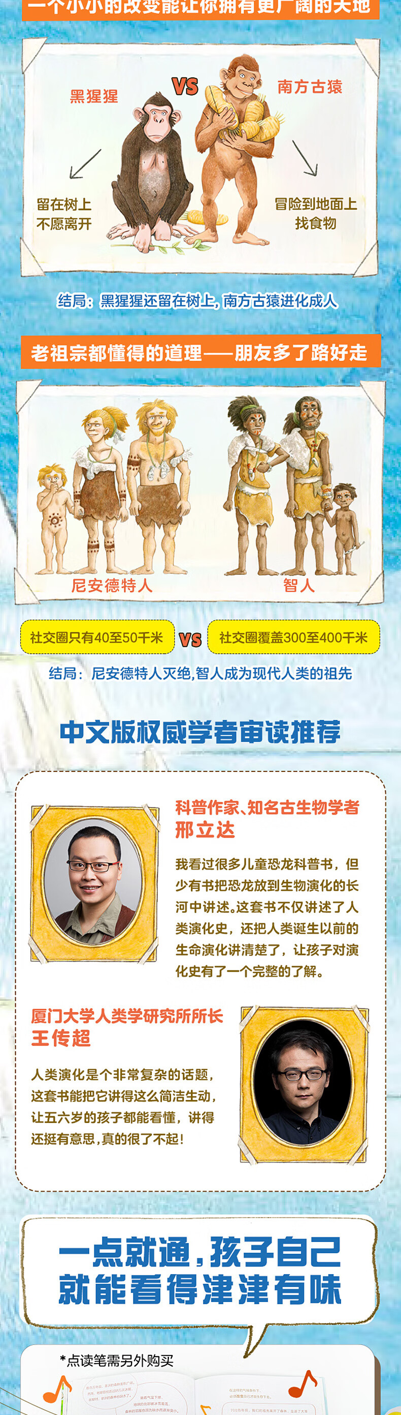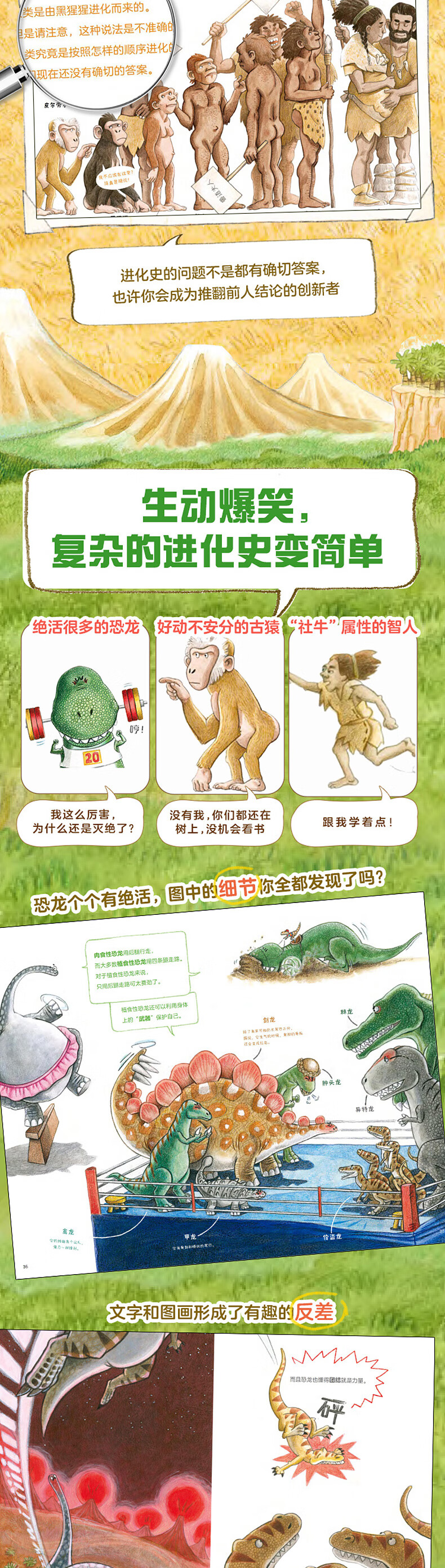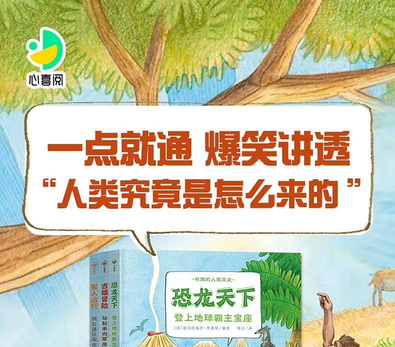 点读版有趣的人类简史全套3册精装硬壳恐龙天下古猿冒险智人远行人类进化物种起源科普知识百科全书图画书籍