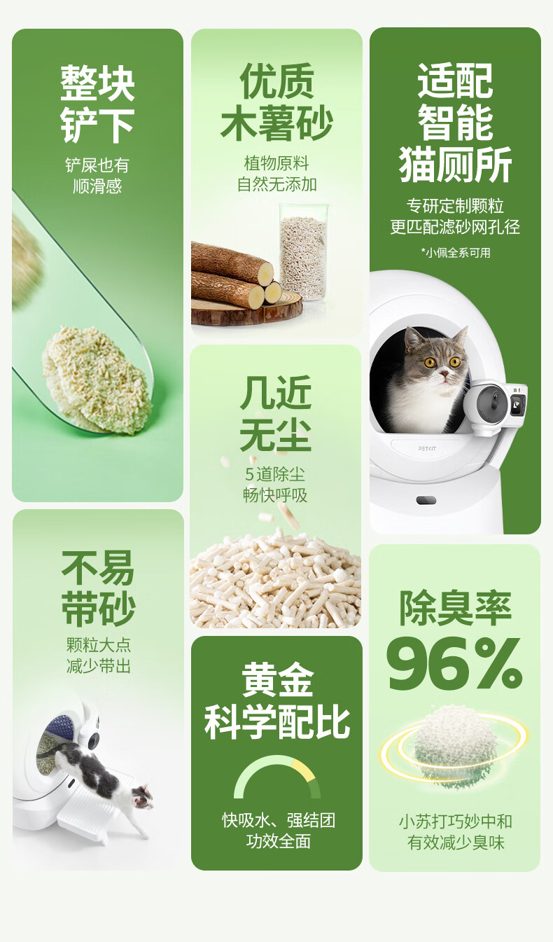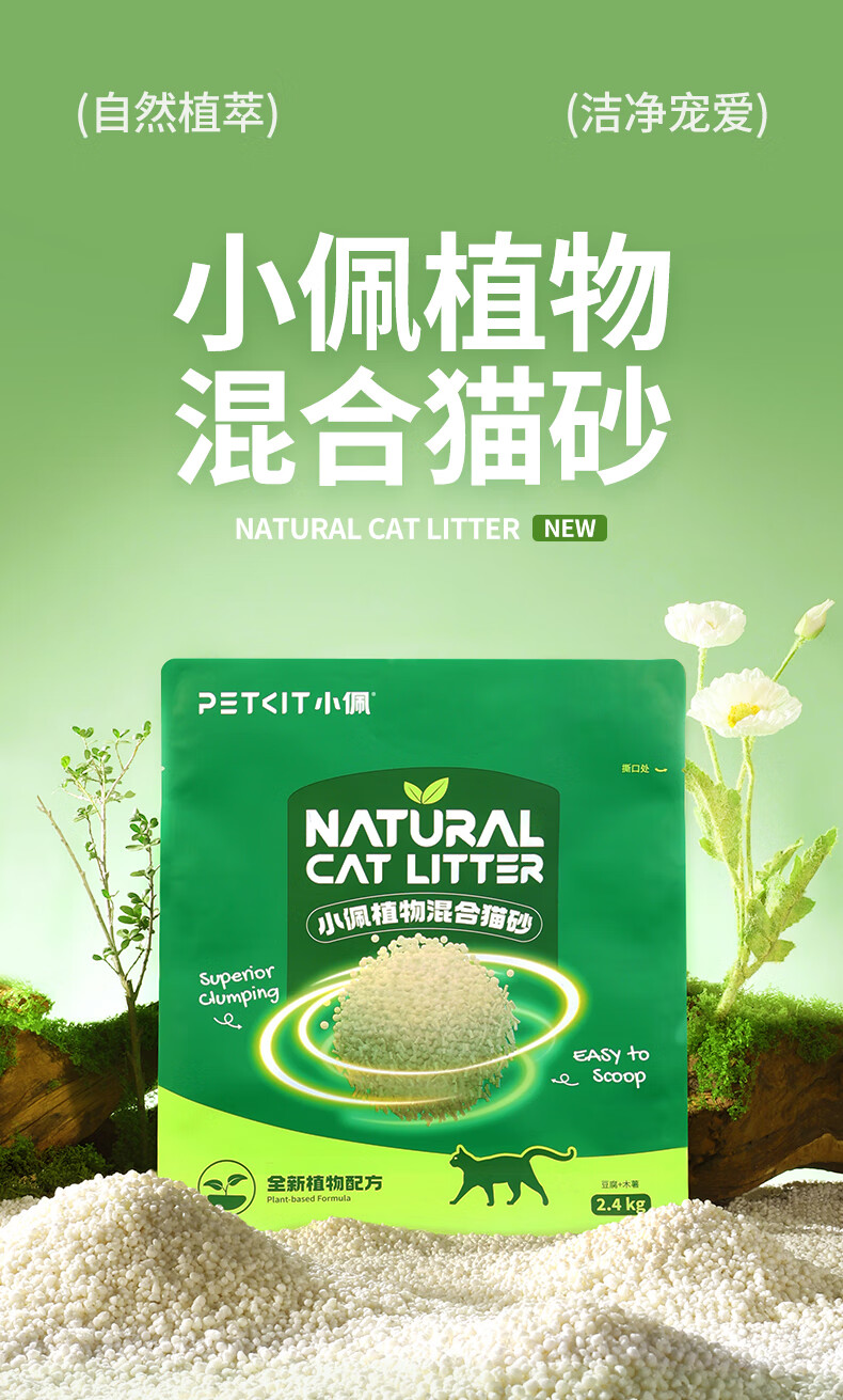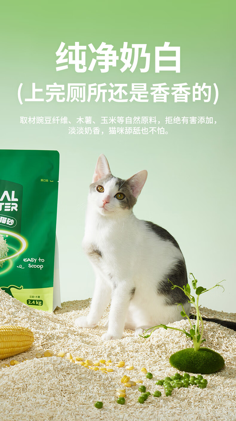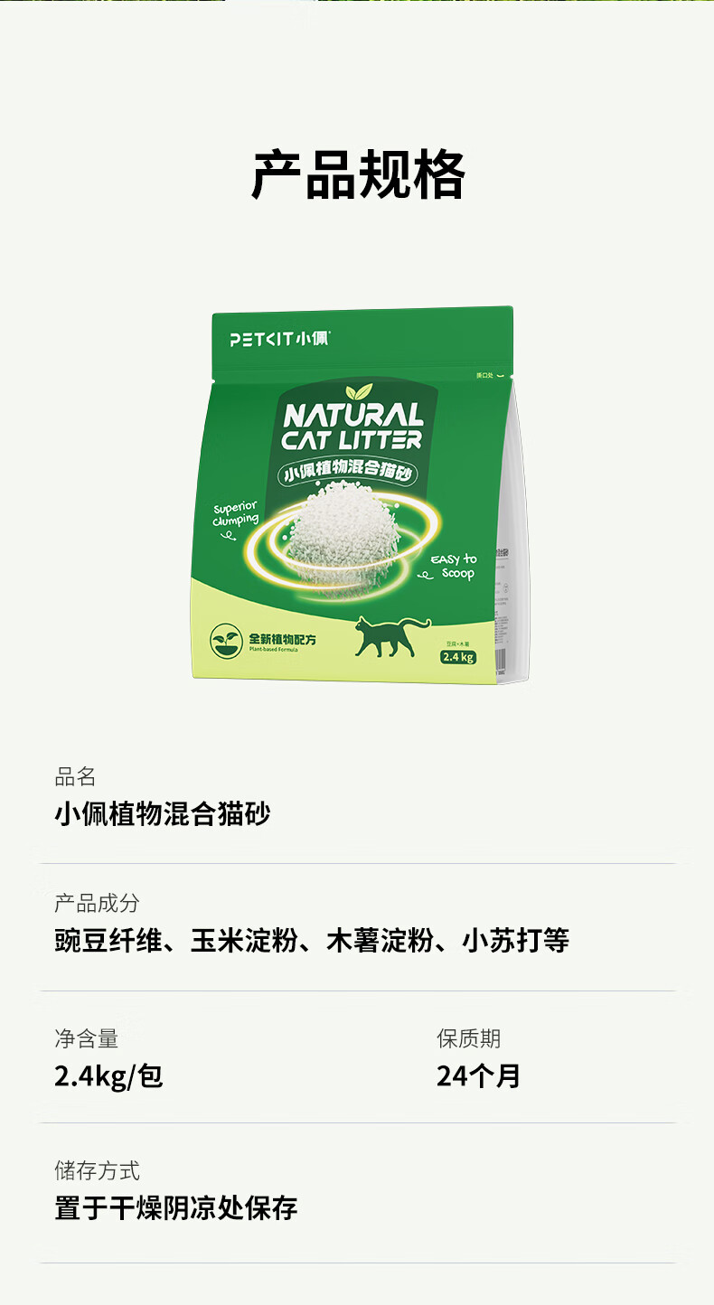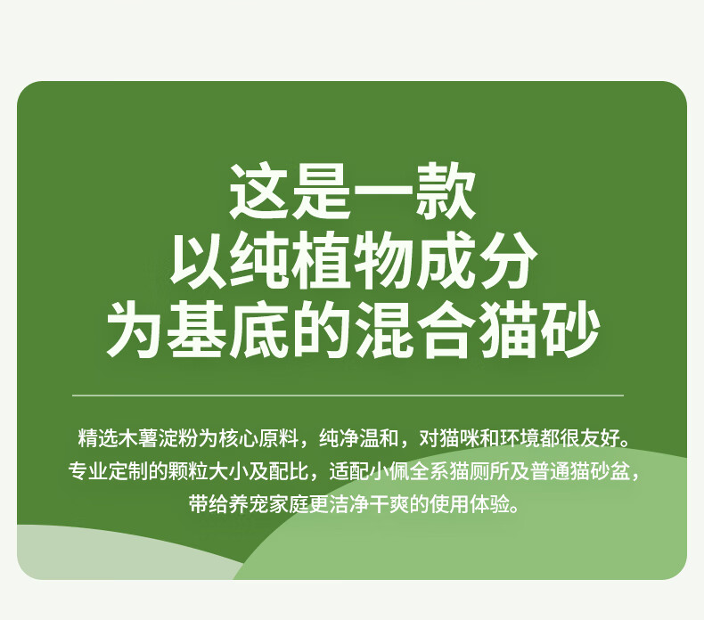 小佩植物木薯猫砂 混合猫砂强吸水不粘底除臭不可冲厕所 植物猫砂2.4kg*4包