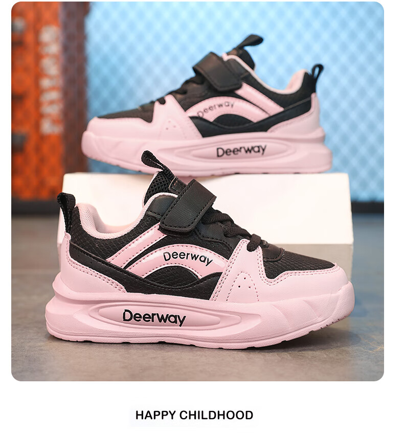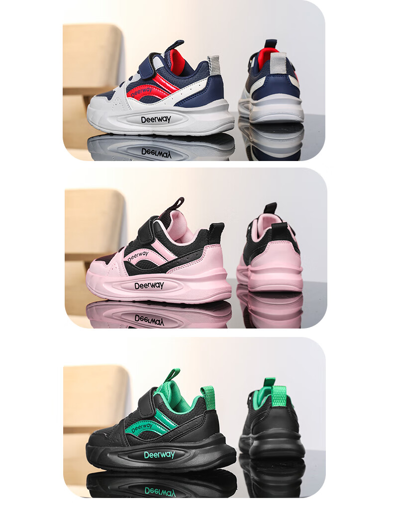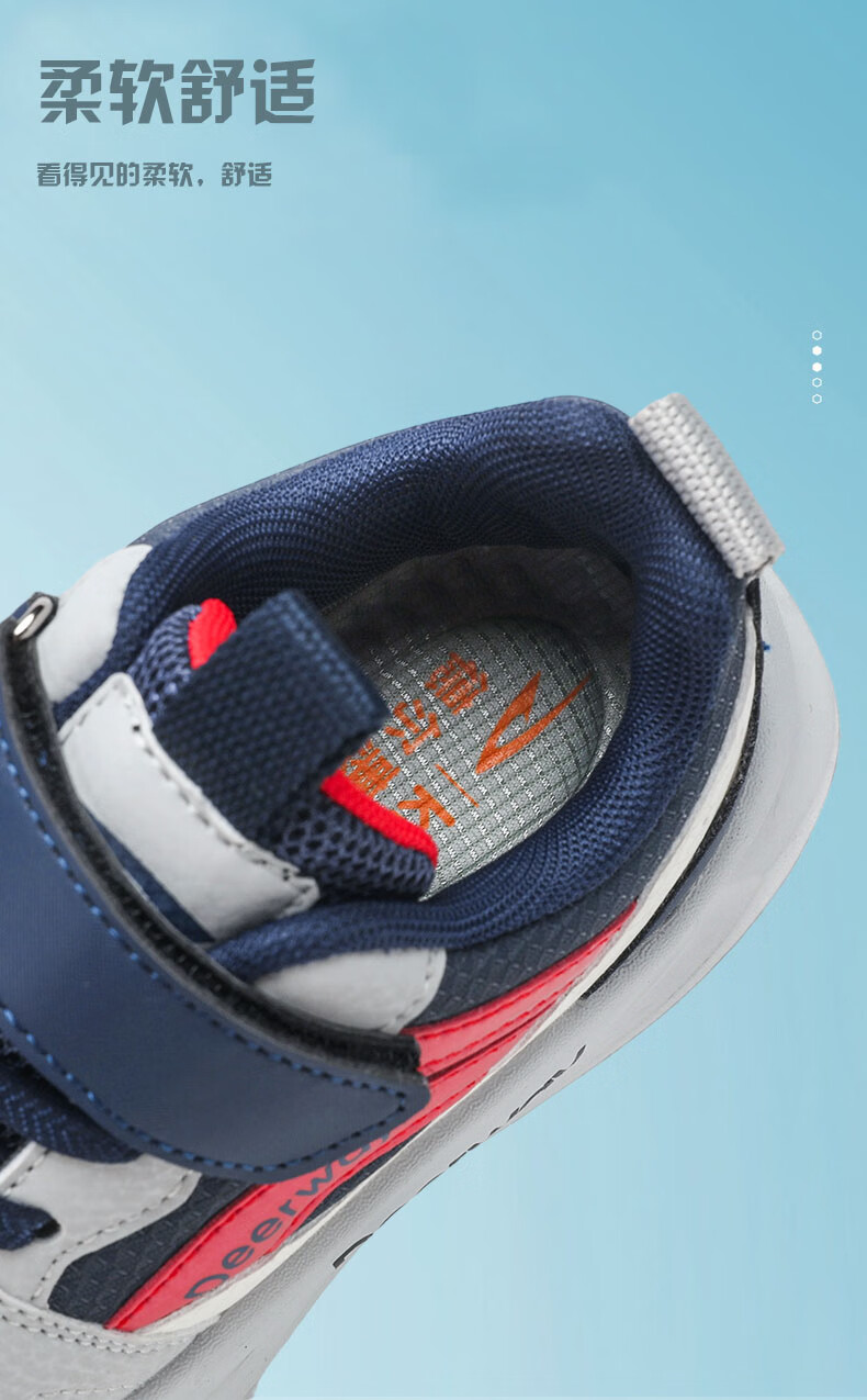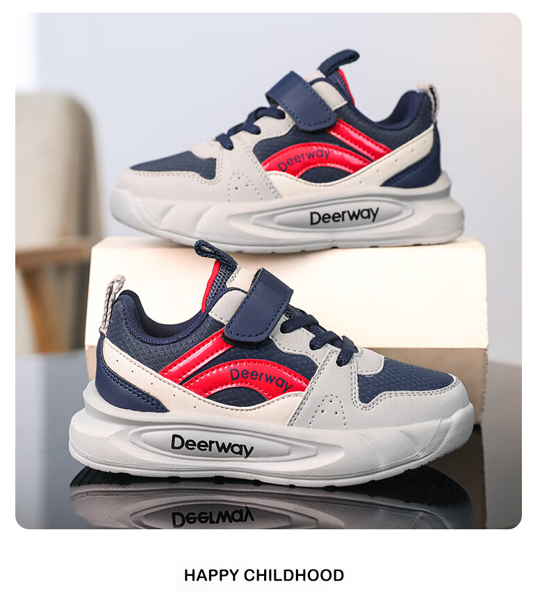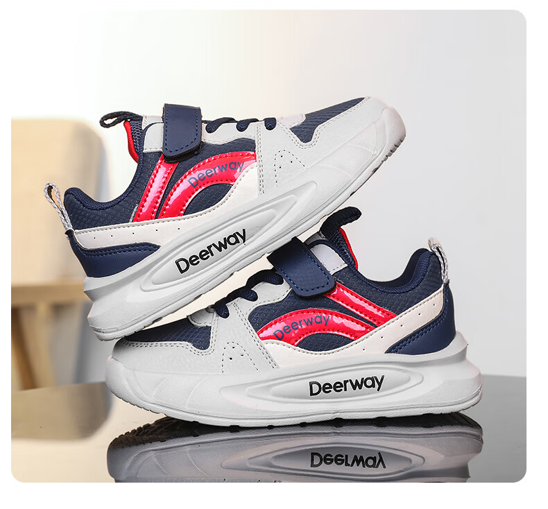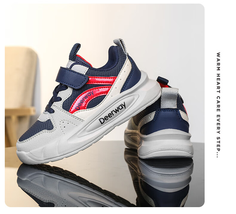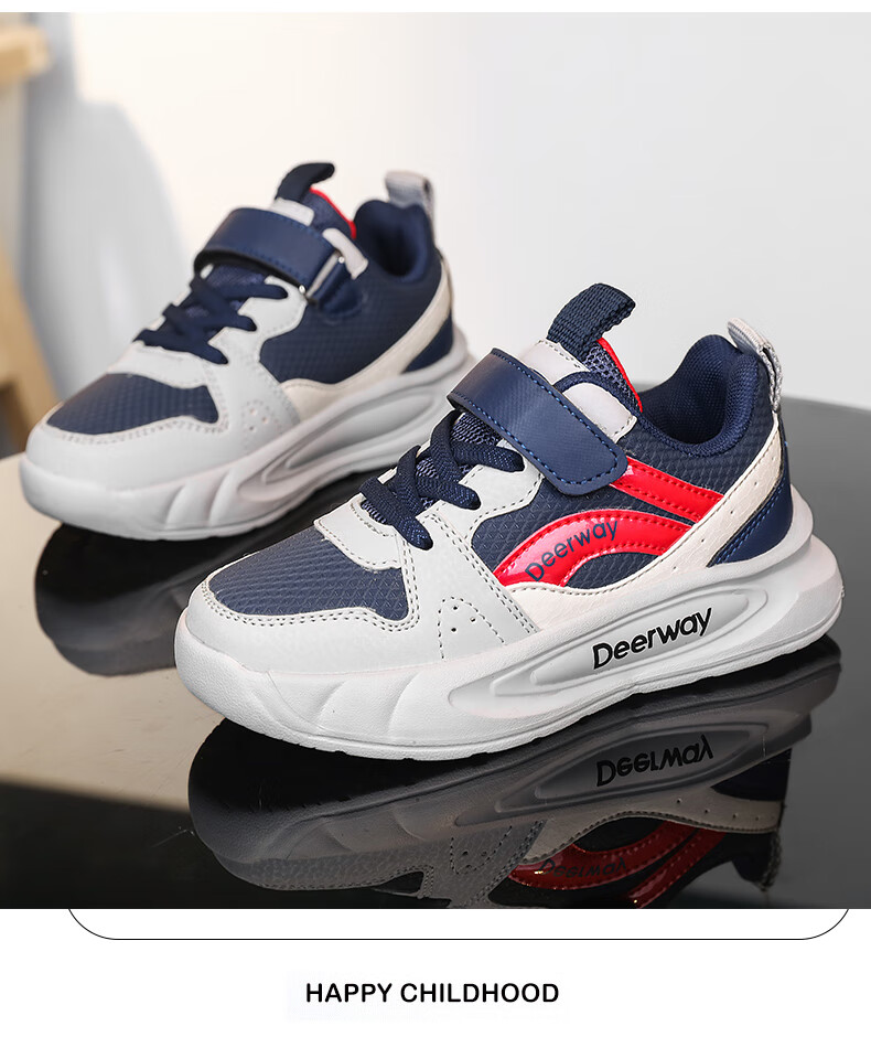 德尔惠儿童运动鞋男童中大童专业魔术贴跑步鞋冬款革面休闲女童鞋 D7701深蓝红【革面单鞋】 28 内长17.8/脚16.8