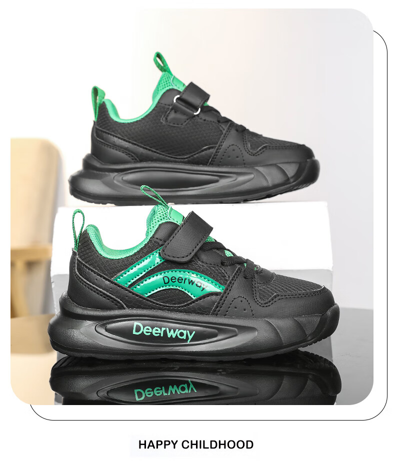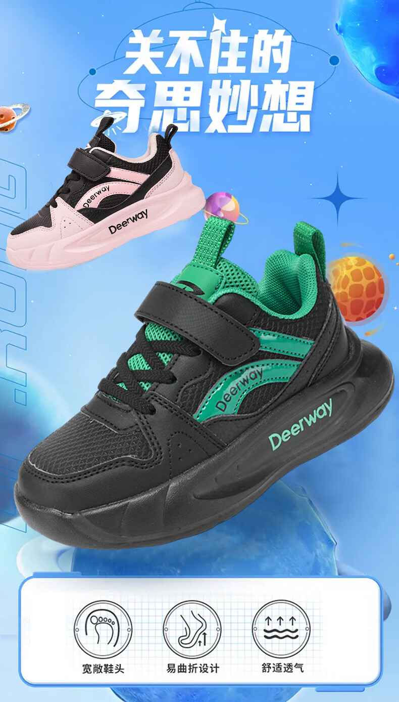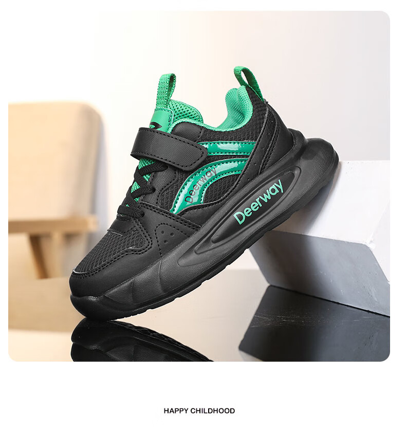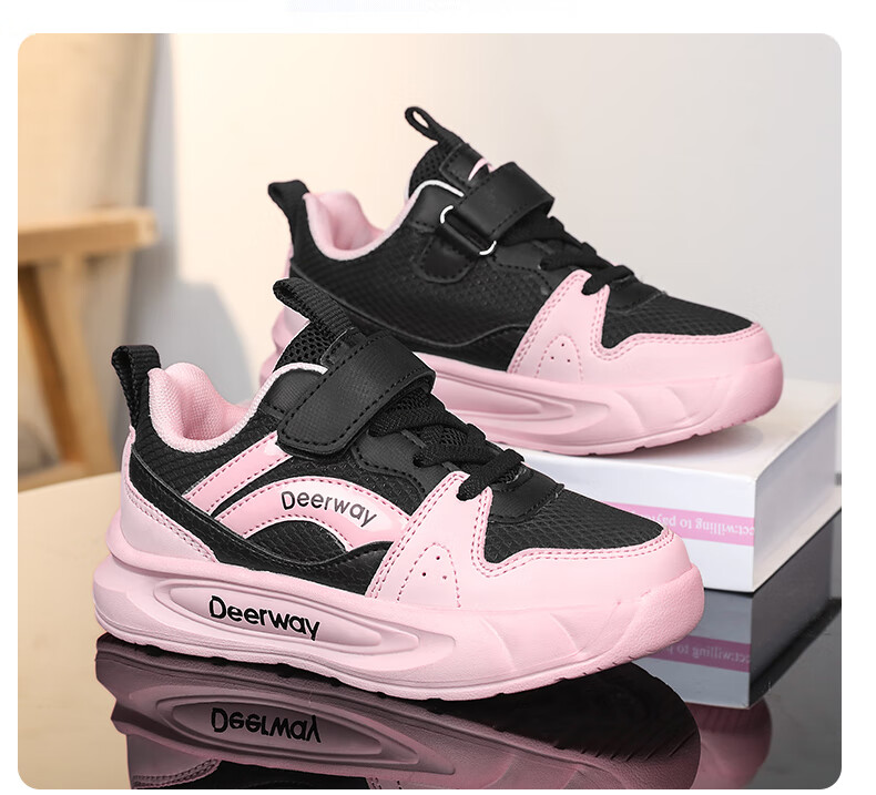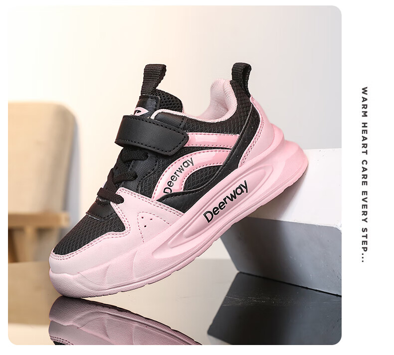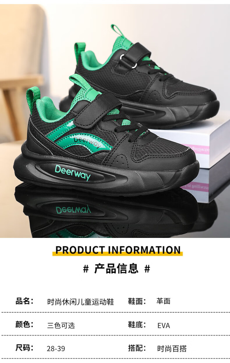 德尔惠儿童运动鞋男童中大童专业魔术贴跑步鞋冬款革面休闲女童鞋 D7701深蓝红【革面单鞋】 28 内长17.8/脚16.8