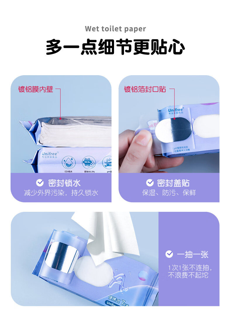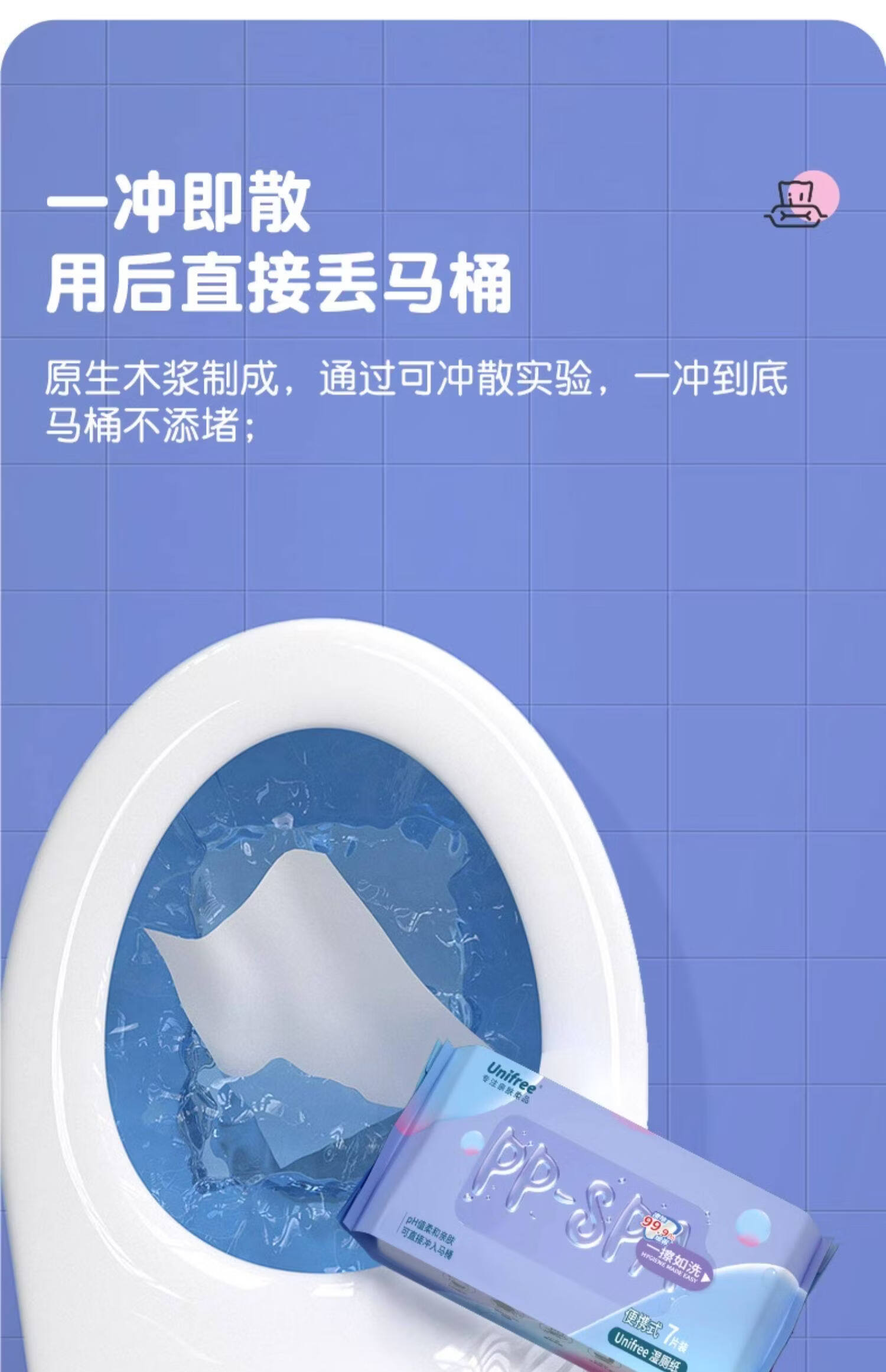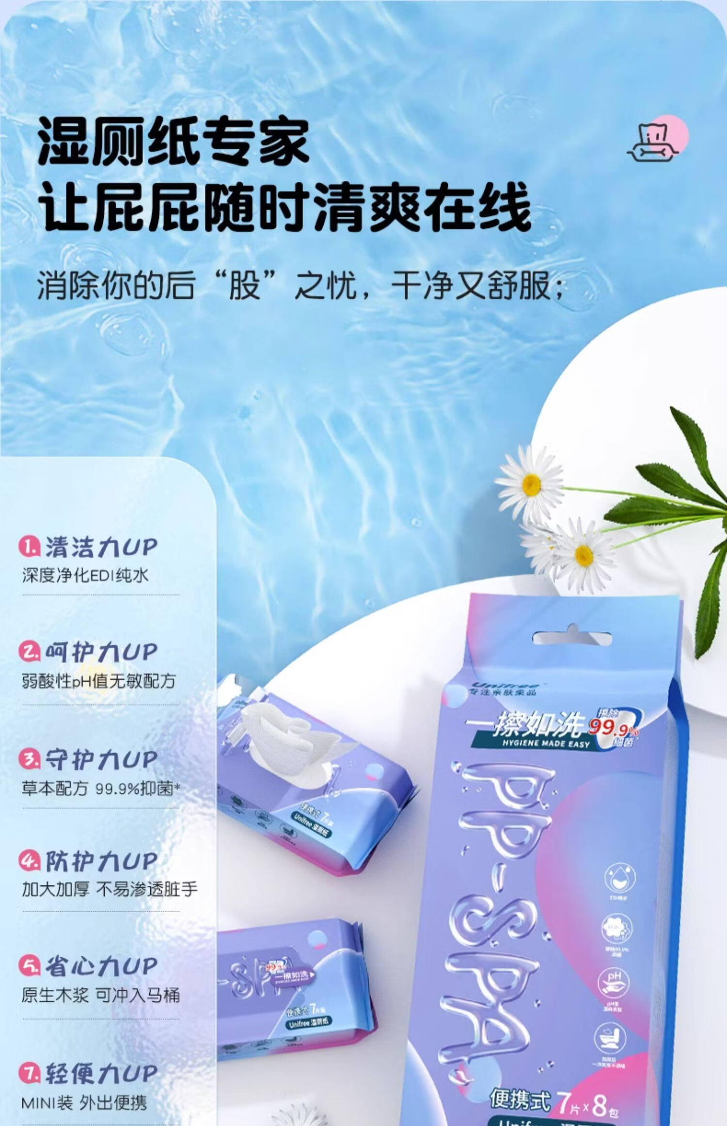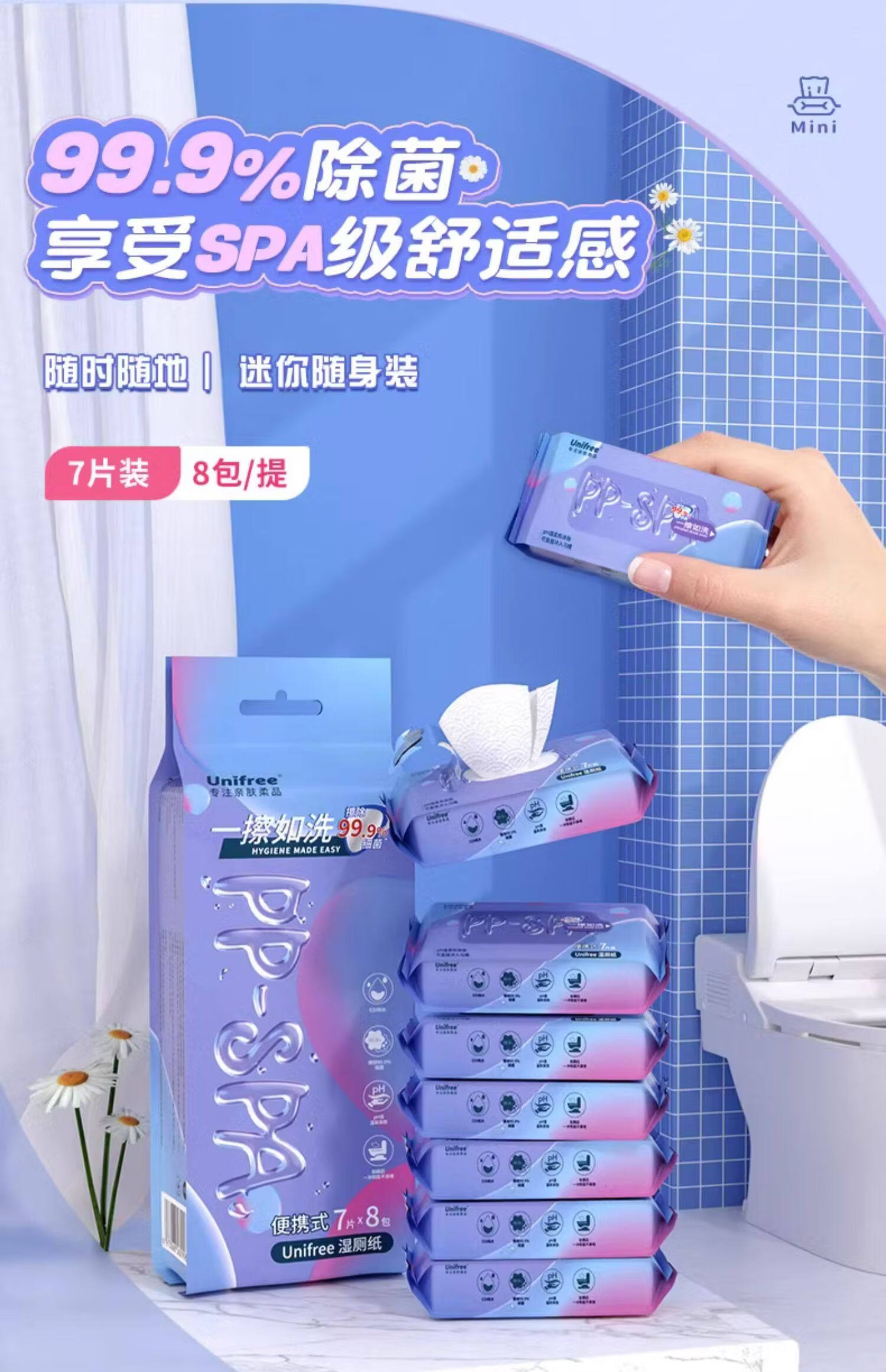 unifree便携湿厕纸男女如厕擦屁股专用洁厕湿巾纸小包装 便携湿厕纸 7抽*24包