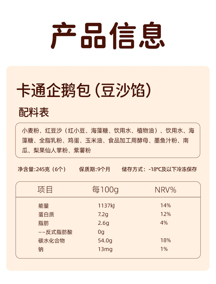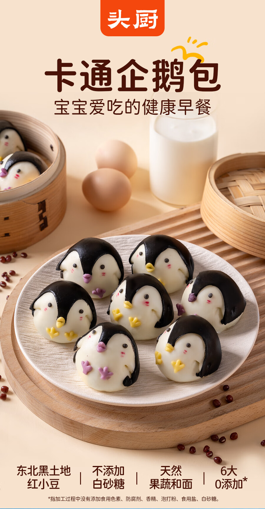 头厨卡通企鹅红豆沙馅包子儿童早餐速冻半成品生鲜面点年货送礼 卡通企鹅包(豆沙馅)245g*1+麦青红豆糕350g*1
