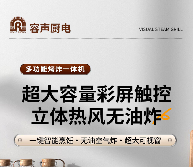 Ronshen容声空气炸锅蒸烤一体2025年新款电烤箱家用微波炉蒸烤一体机可视大容量免翻智能触控三四合一 36L 【烤炸蒸多功能+一年换新+触屏一键菜单】