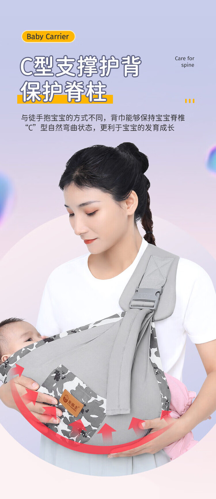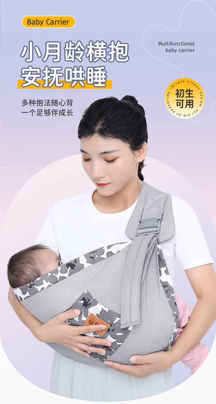 KETAOQI婴儿背带宝宝外出横抱背巾新生儿多功能背前抱式抱娃神器解放双手 浅绿花 升级款【背带/哺乳巾两用】