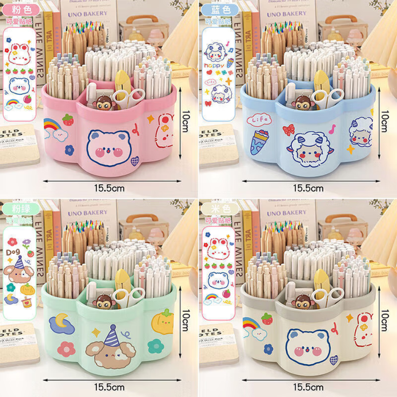 360度旋转笔筒加厚多功能可爱桌面文具收纳学生大容量花朵笔筒 一个(颜色随机)