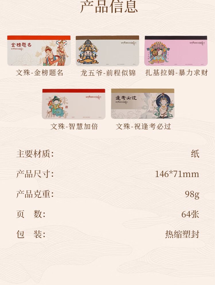 锦福五台山联名便携小本子笔记本记事本高颜值随身口袋本学生办公手账 文殊-金榜题名