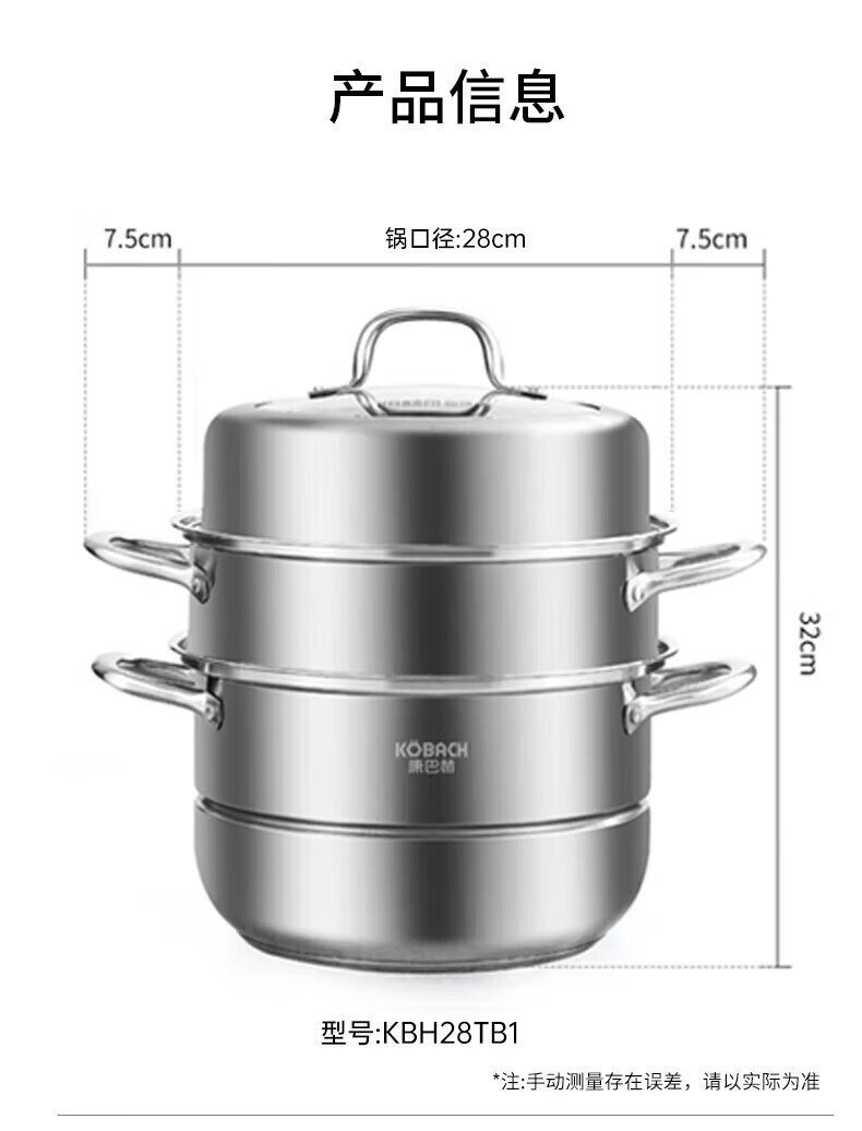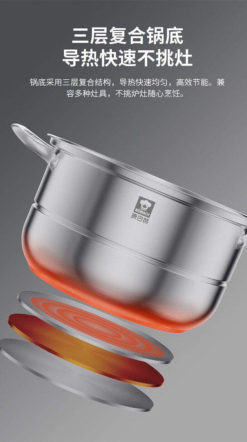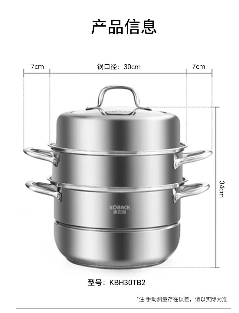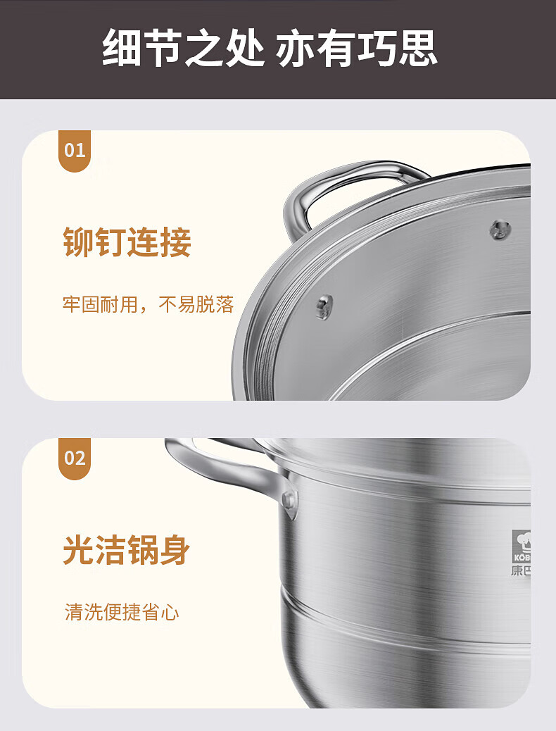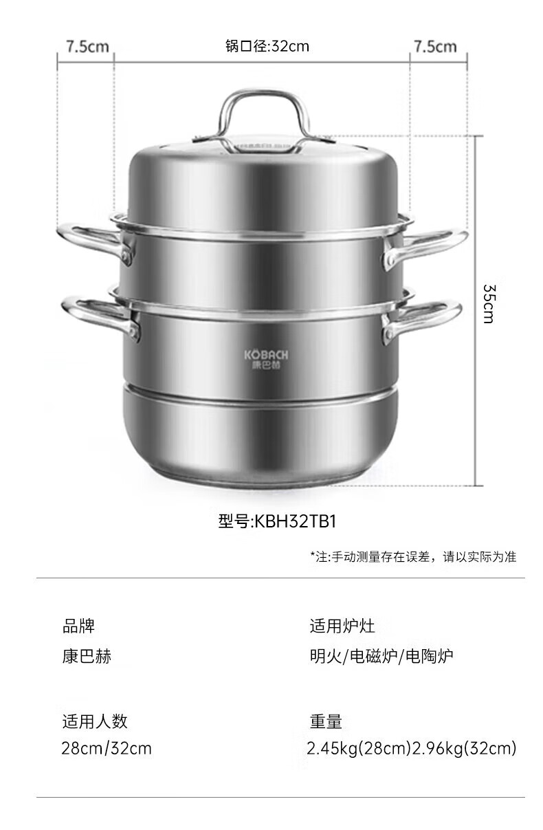 康巴赫纯钛内胆电饭煲家用不粘煮粥锅煮粥锅电饭锅多功能电锅电器煮粥锅蒸锅套装 Mate 4L +304不锈钢蒸锅