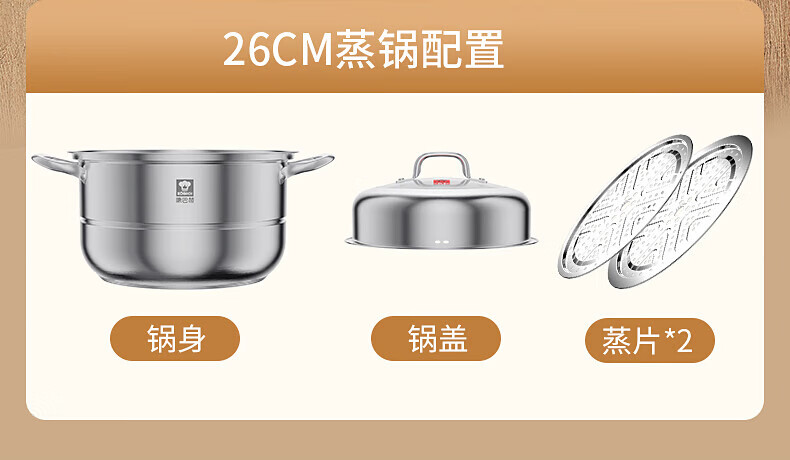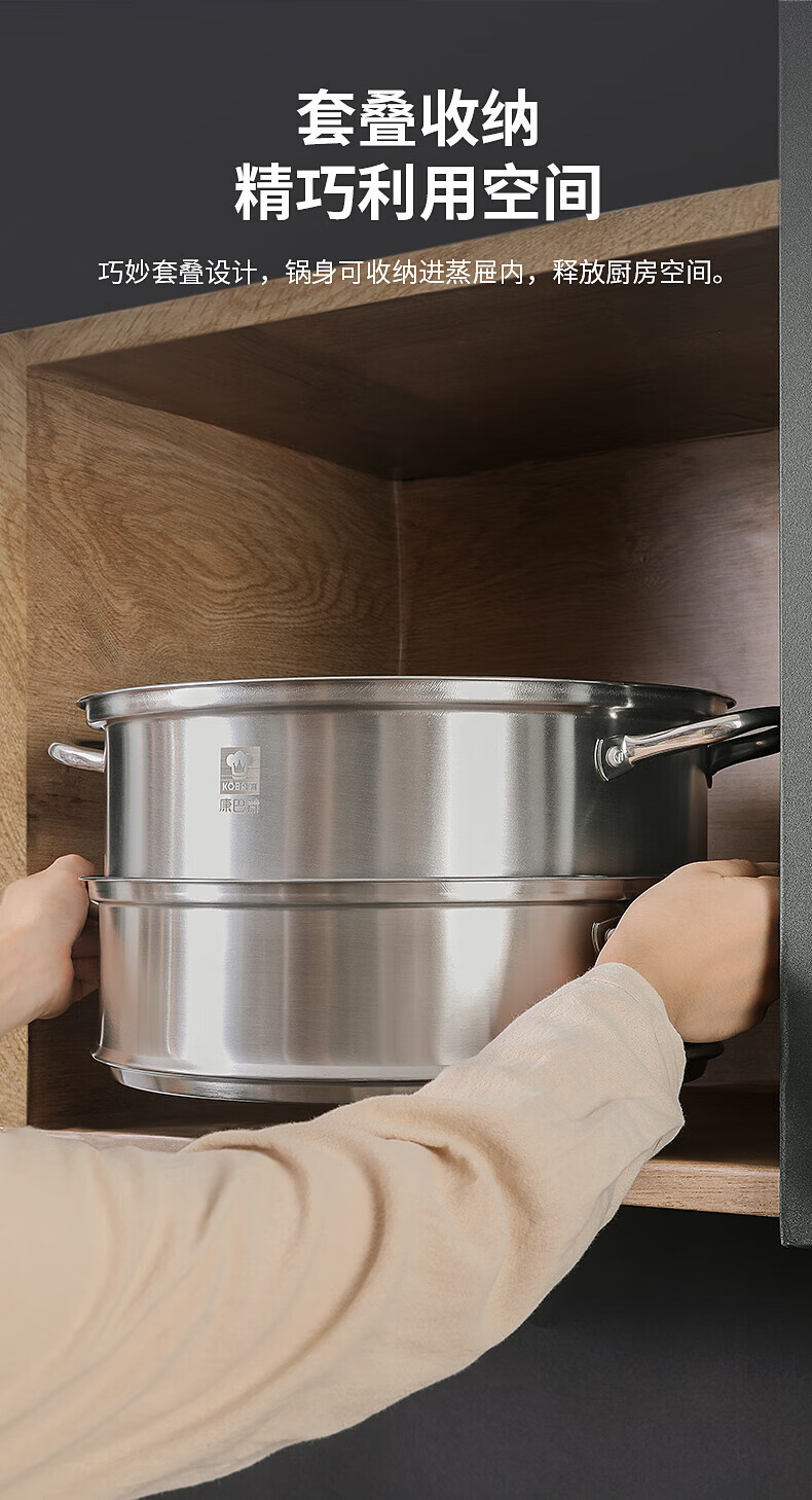 康巴赫纯钛内胆电饭煲家用不粘煮粥锅煮粥锅电饭锅多功能电锅电器煮粥锅套锅煎锅炒锅套装 Mate 4L +纯钛0涂层炒锅+蒸笼+铲子