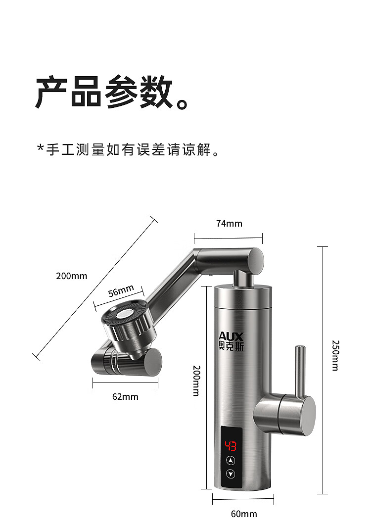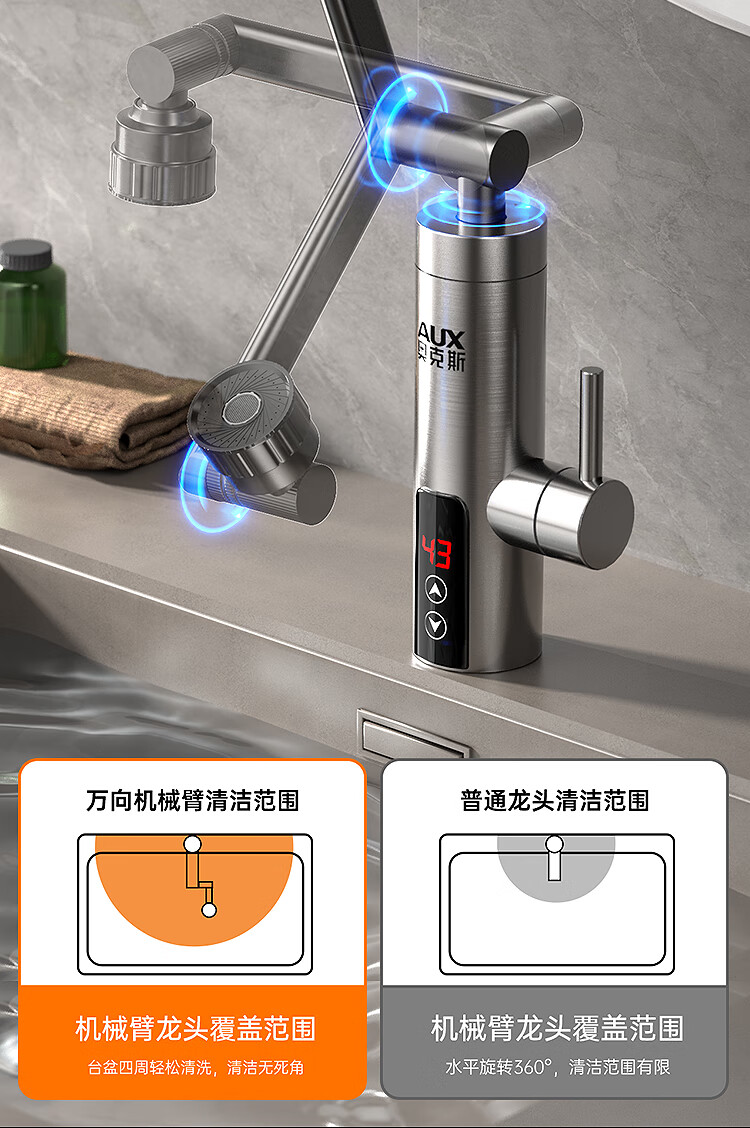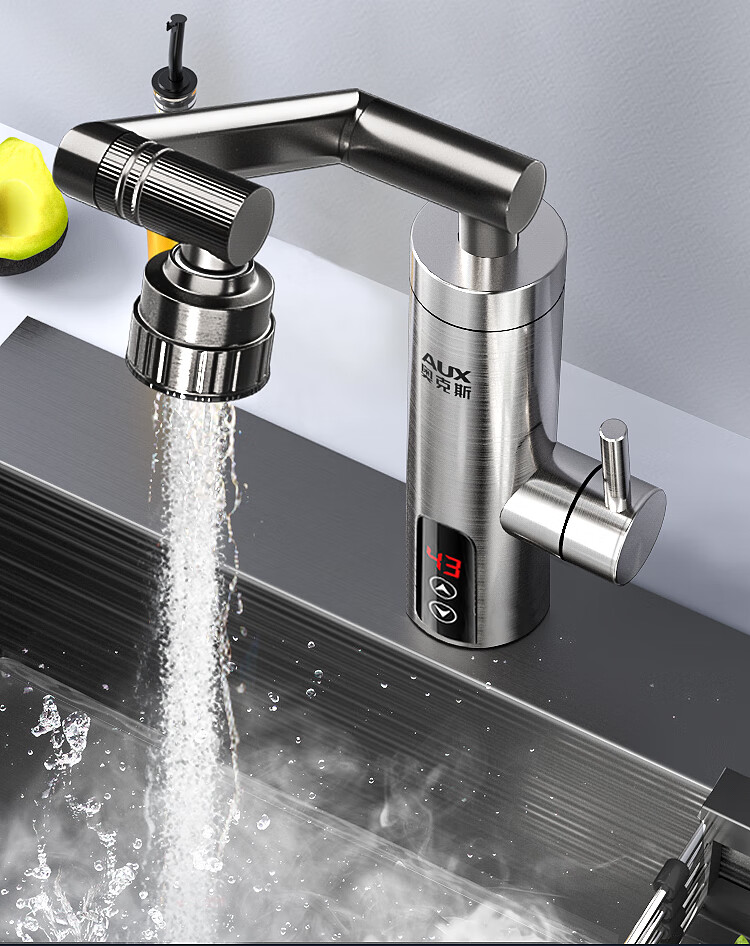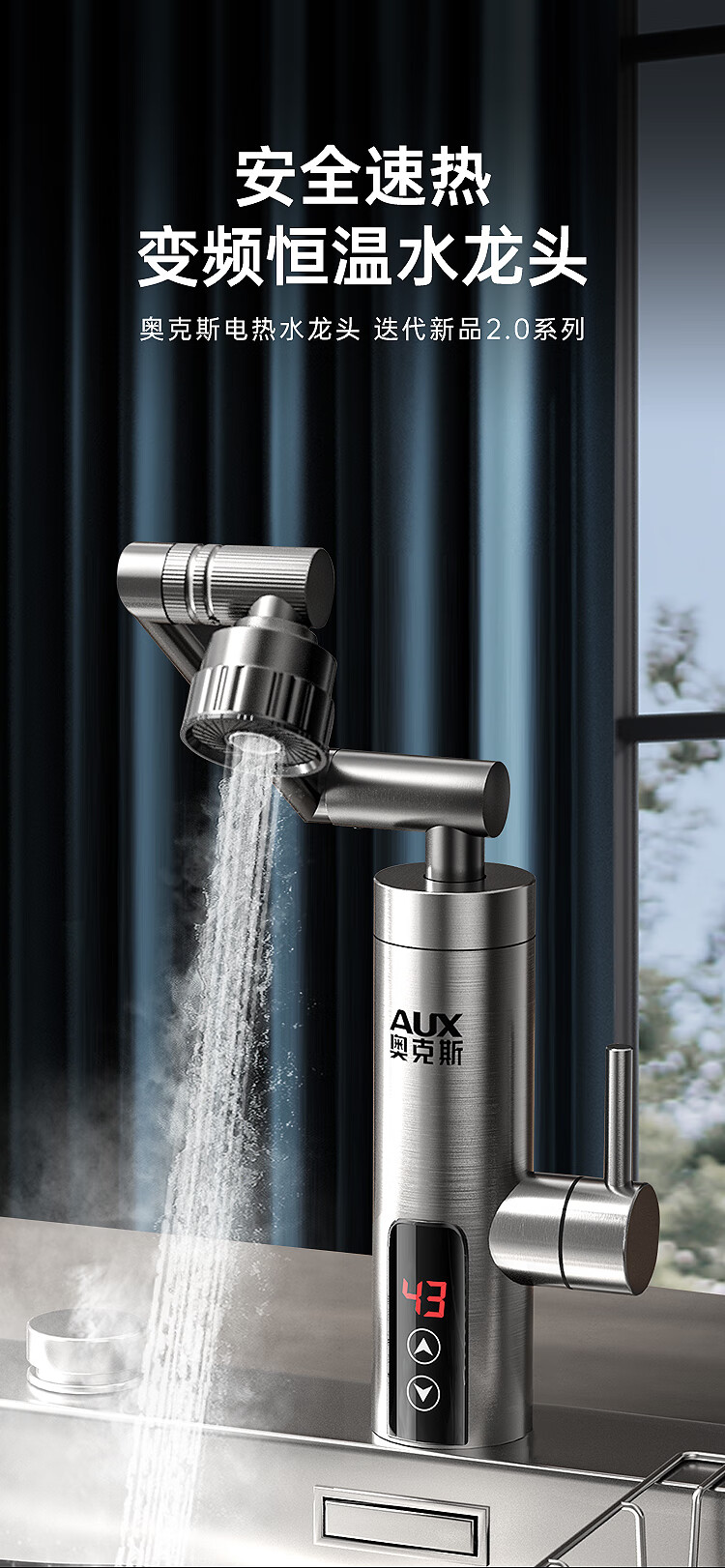 奥克斯(AUX)电热水龙头即热式机械臂快速热水龙头冷热加热器变频恒温厨房宝阳台家用热水器ADL-3AGT2X恒温钢
