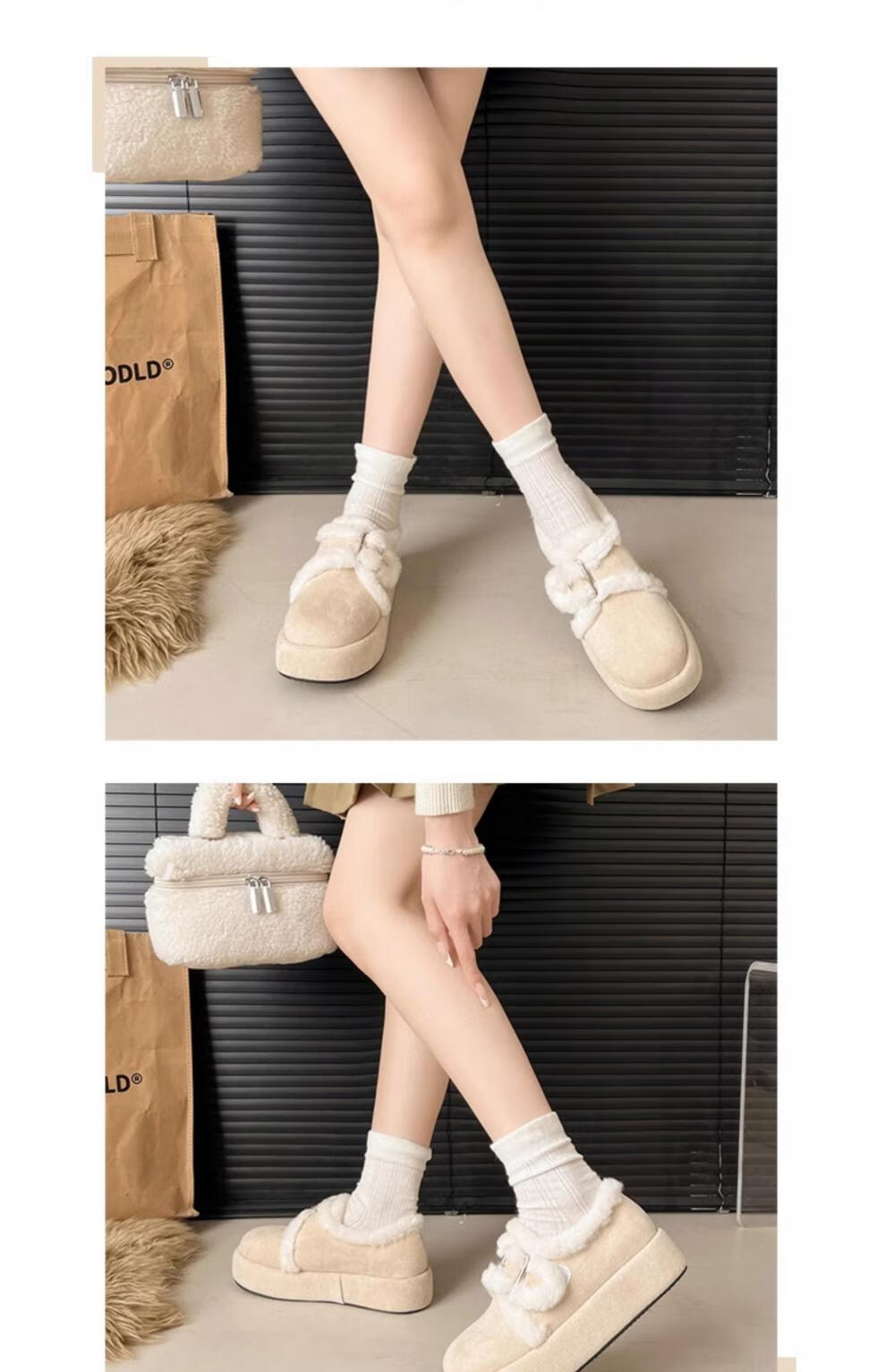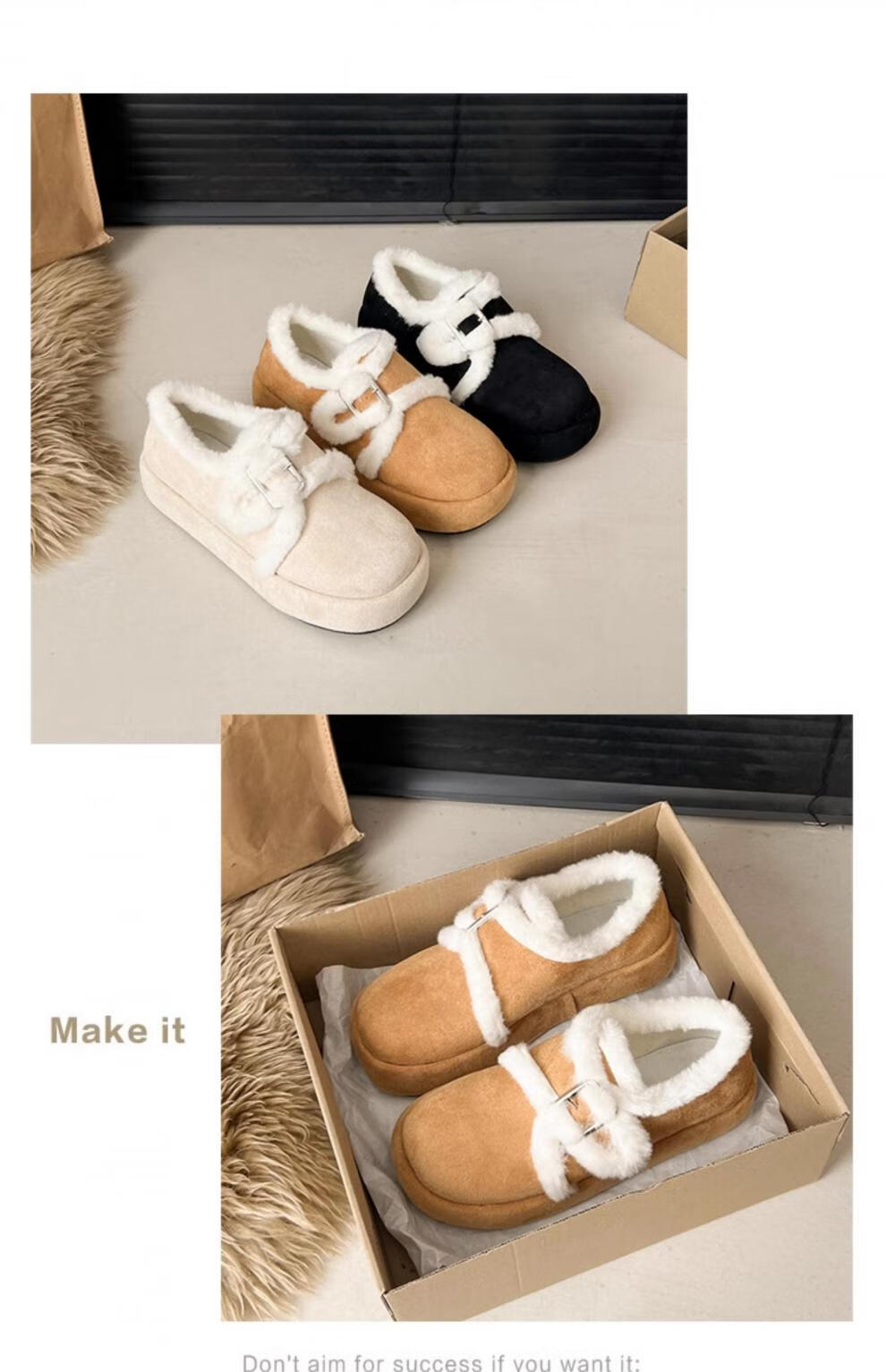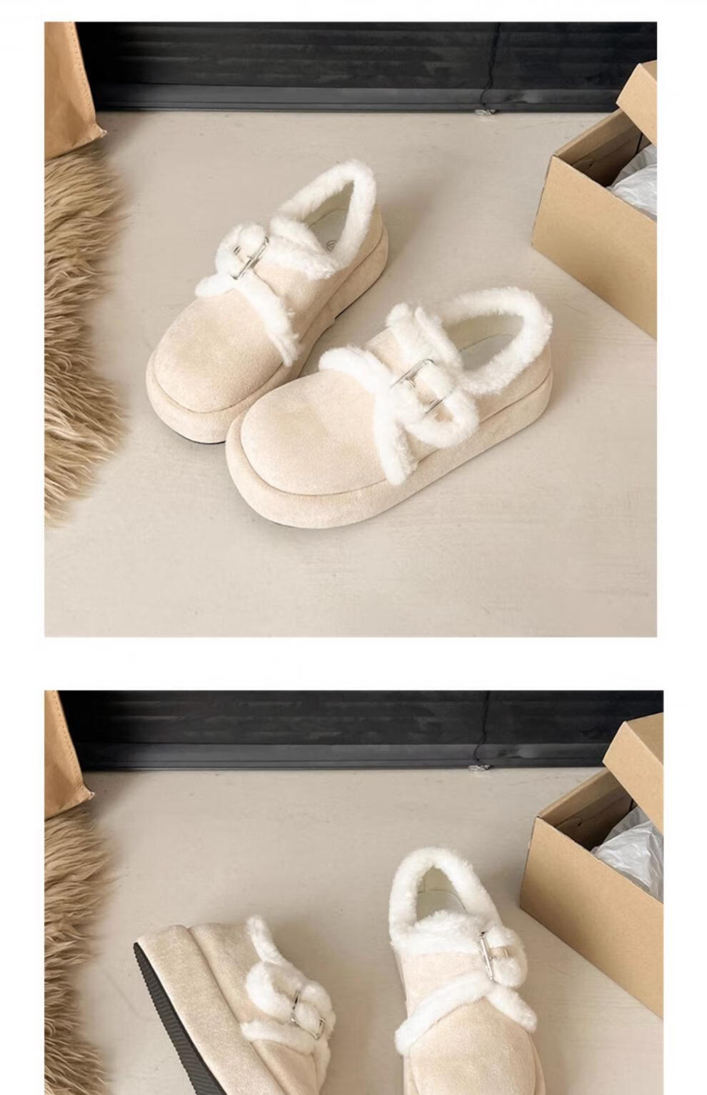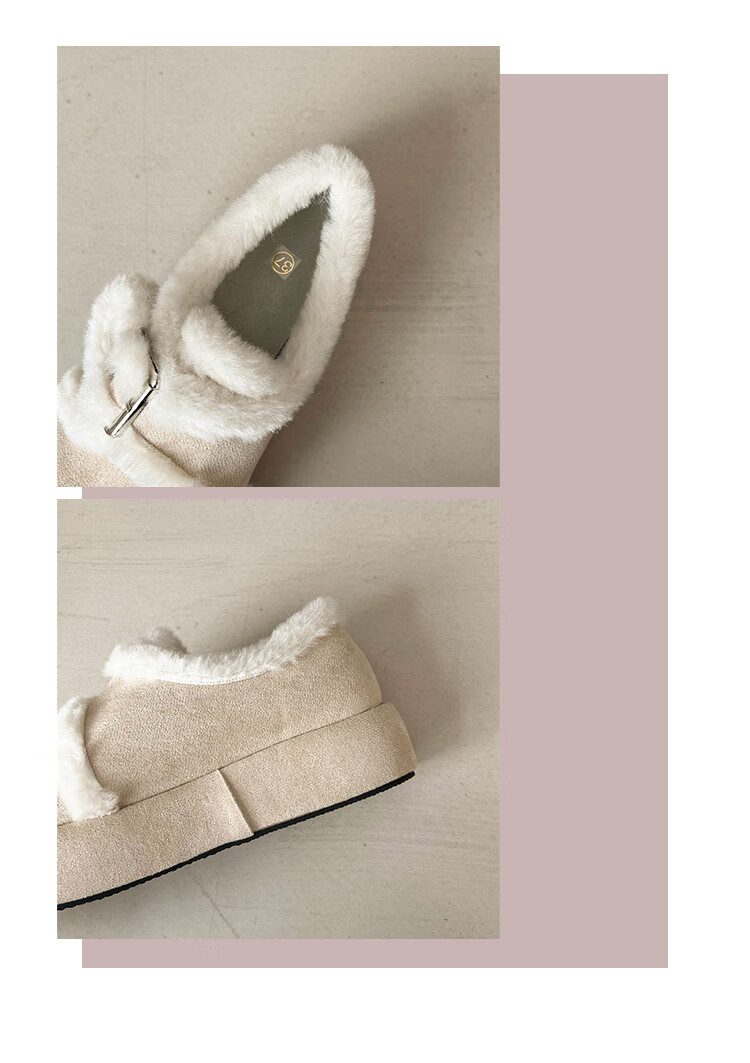 稻草人(MEXICAN)增高厚底棉鞋女款2026新款冬季加绒保暖休闲覆古勃肯毛毛鞋雪地靴 升级版米色 35