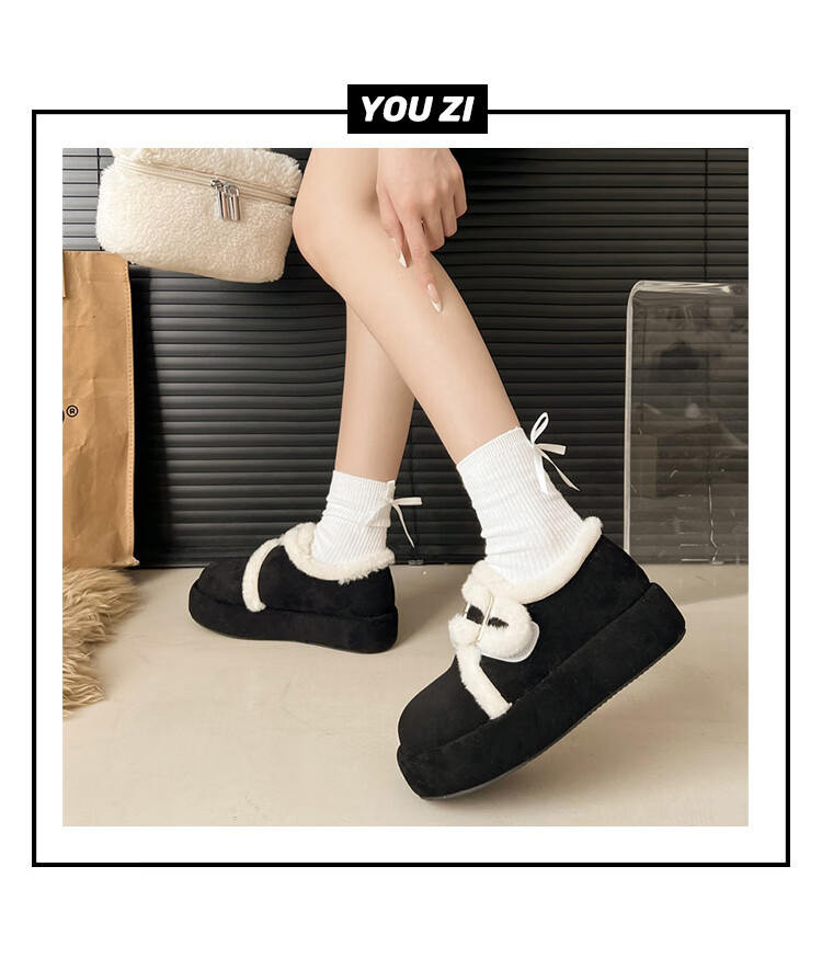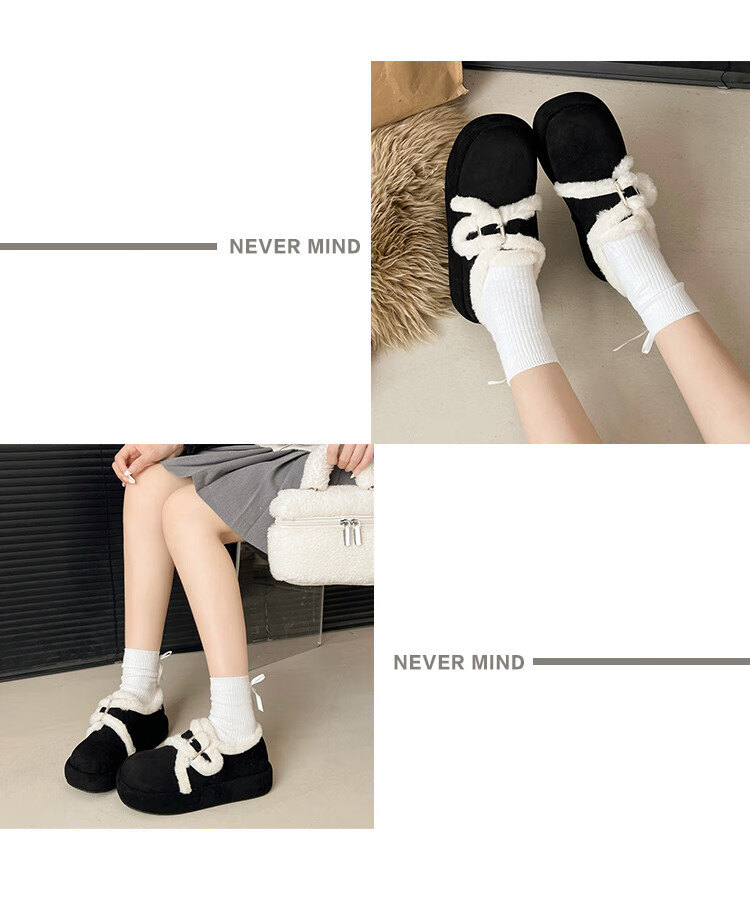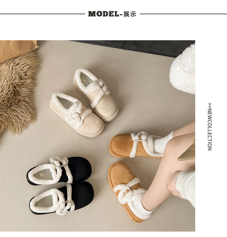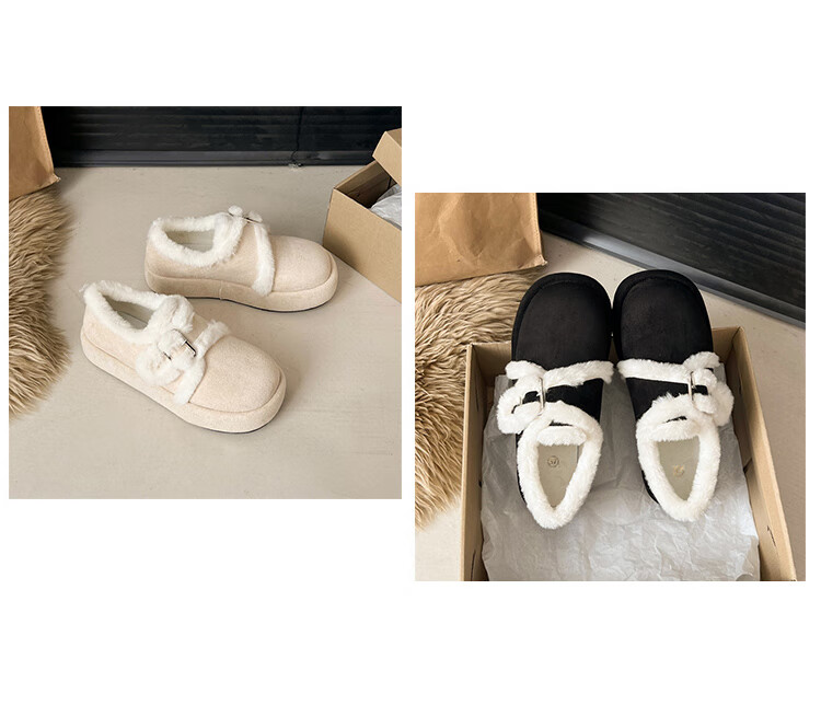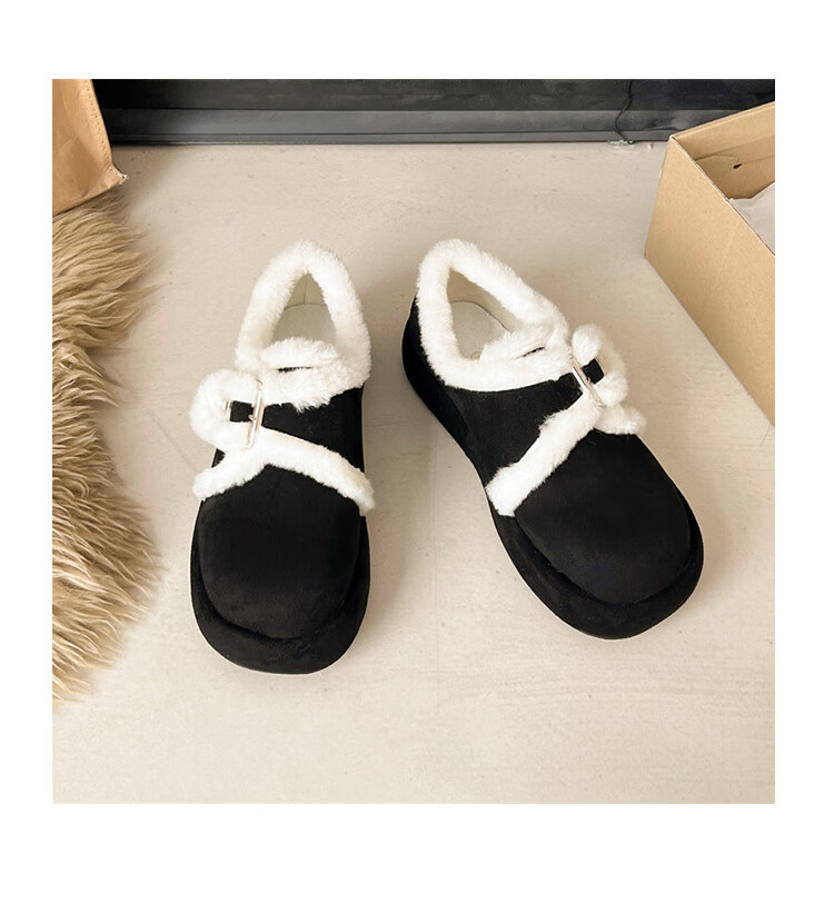 星期六加绒勃肯鞋女2025新款秋冬季软底毛毛鞋一脚蹬懒人保暖棉鞋豆豆鞋 黑色 【通勤百搭】跟高1.5cm 36