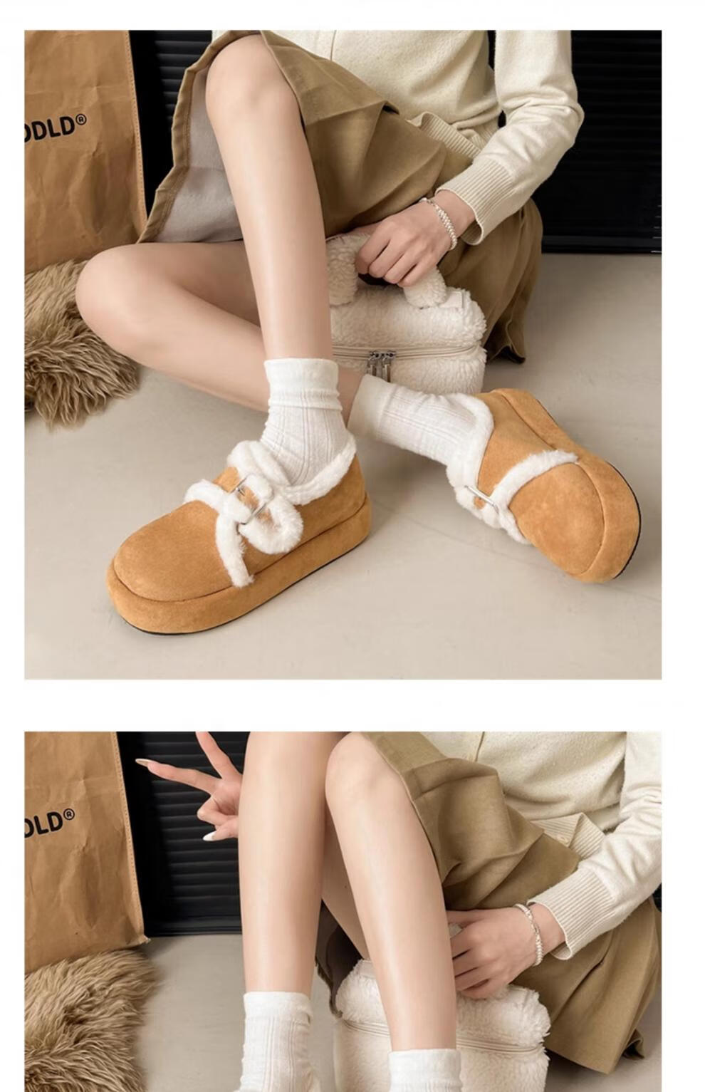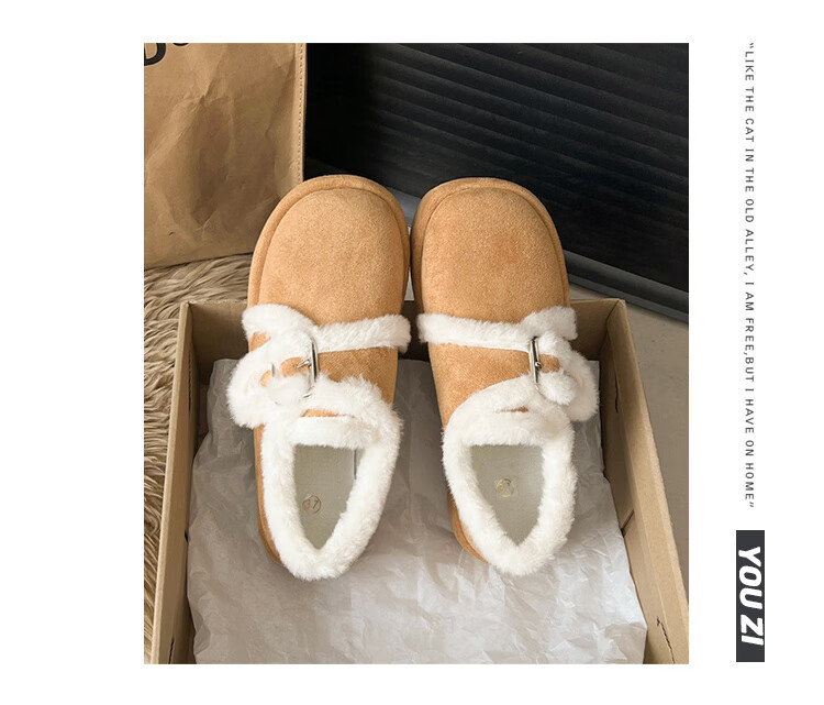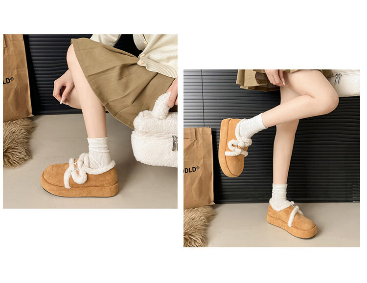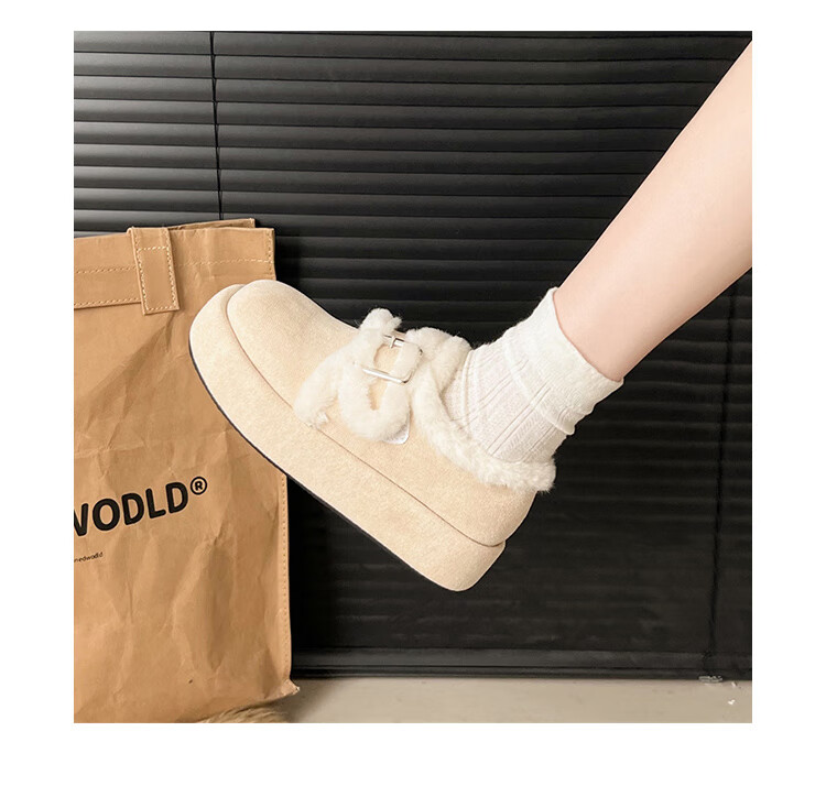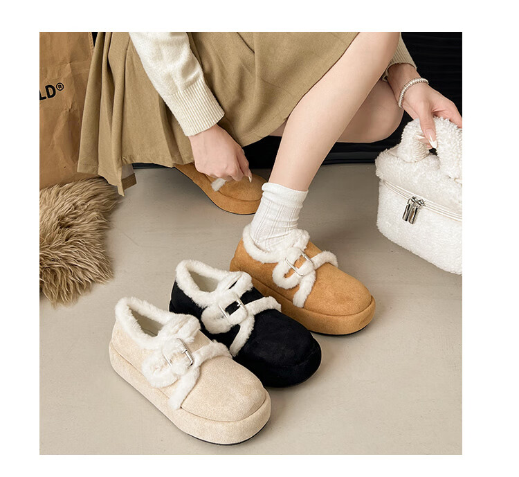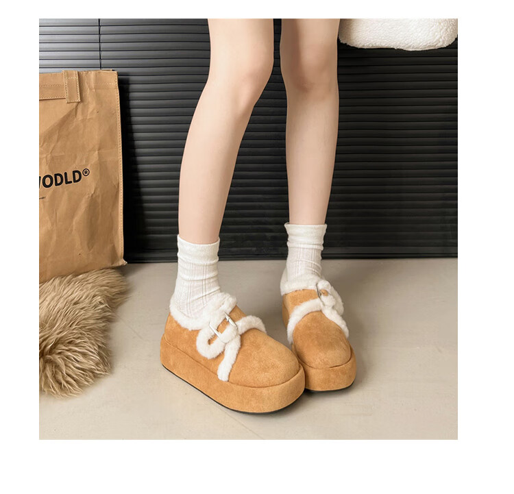 星期六毛绒雪地靴女款冬季加绒2025新款女鞋东北短筒棉鞋厚底保暖面包鞋 卡其色 【冬季保暖】跟高3cm 38