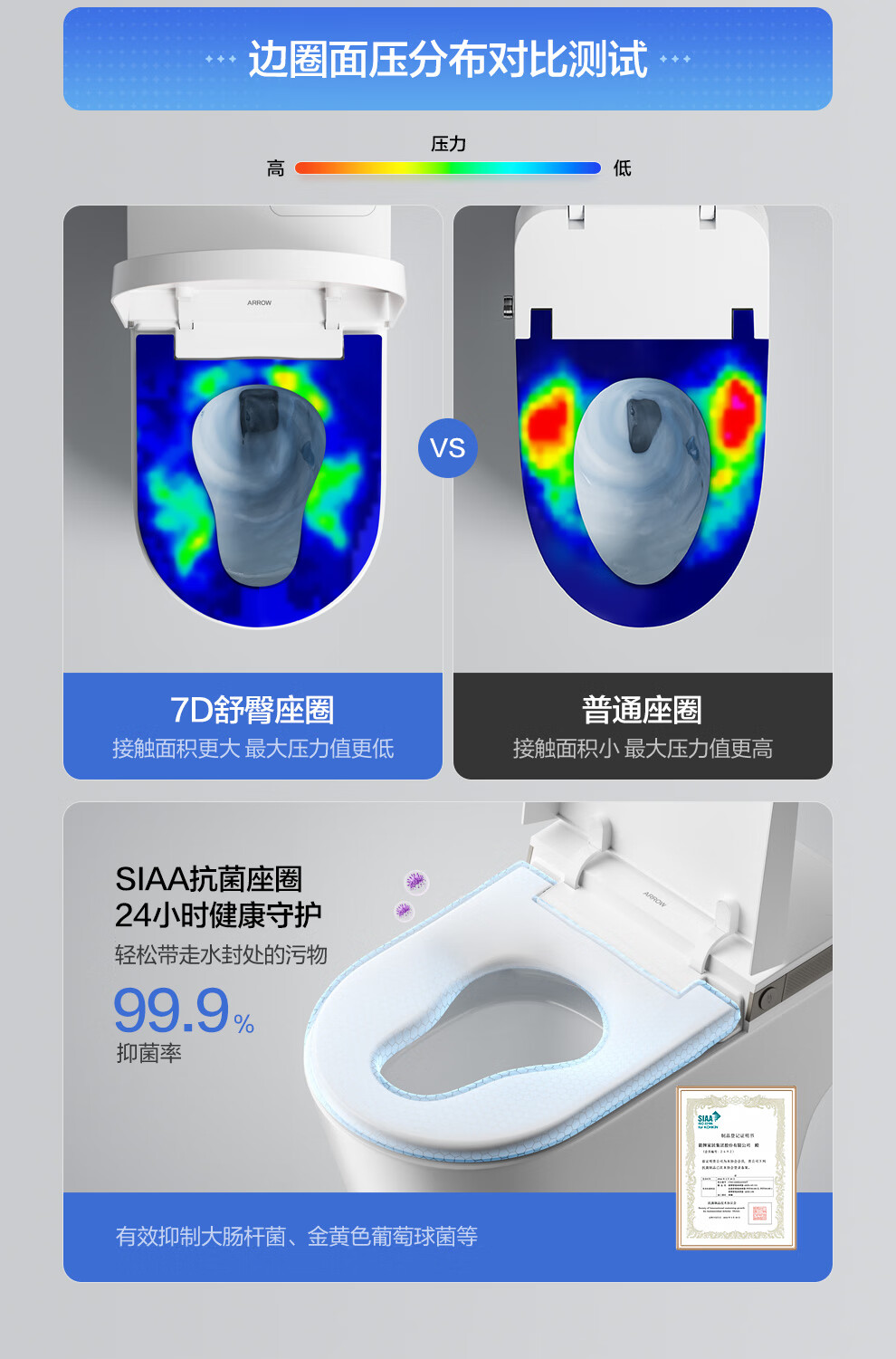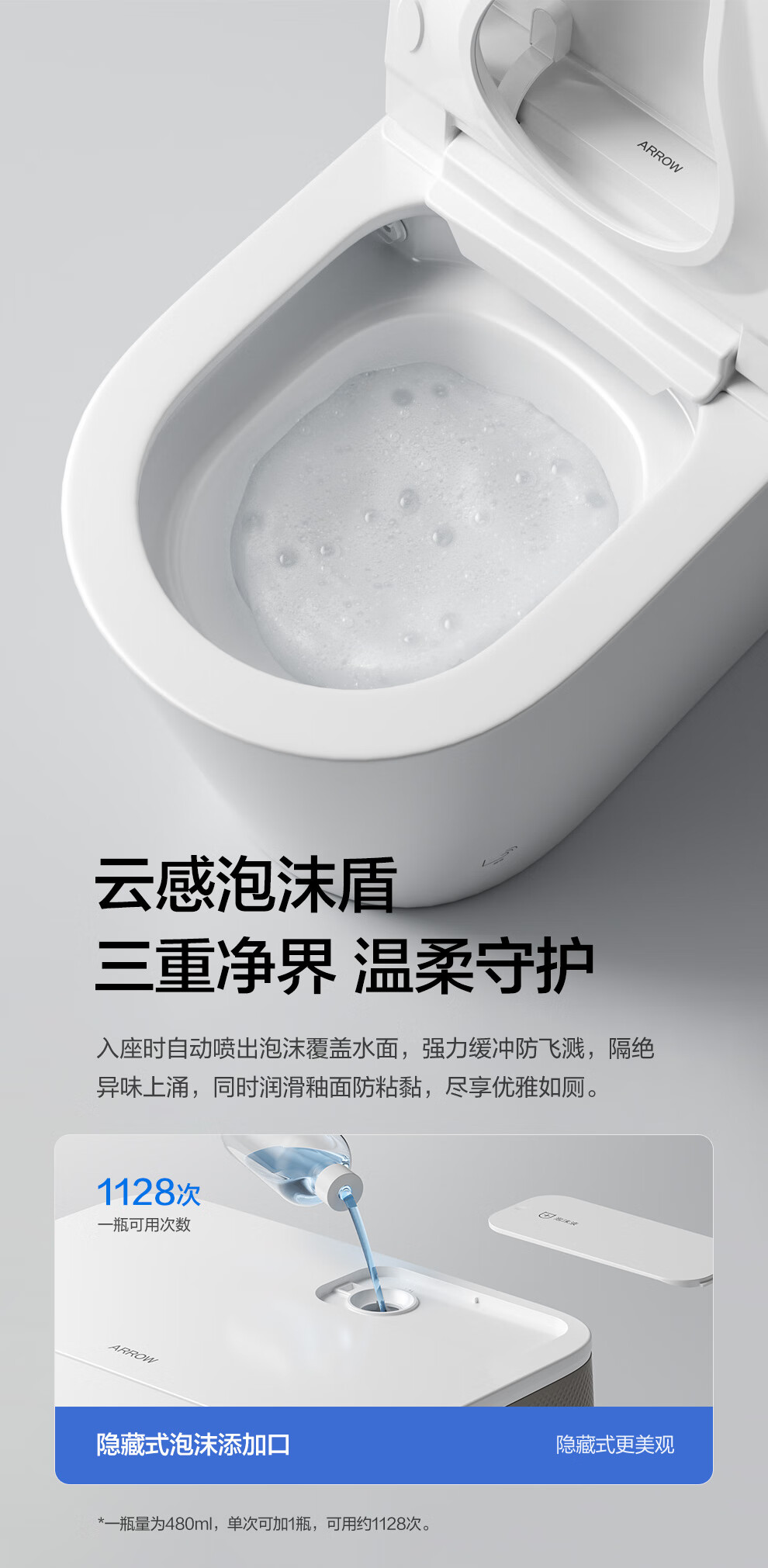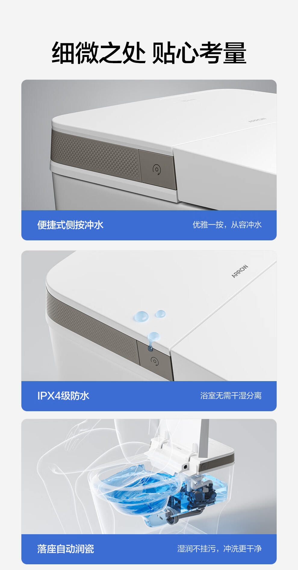 箭牌(ARROW)智能马桶京东联合旋风冲J1Pro旋风魔力泡自动翻盖1208-PM 305坑距