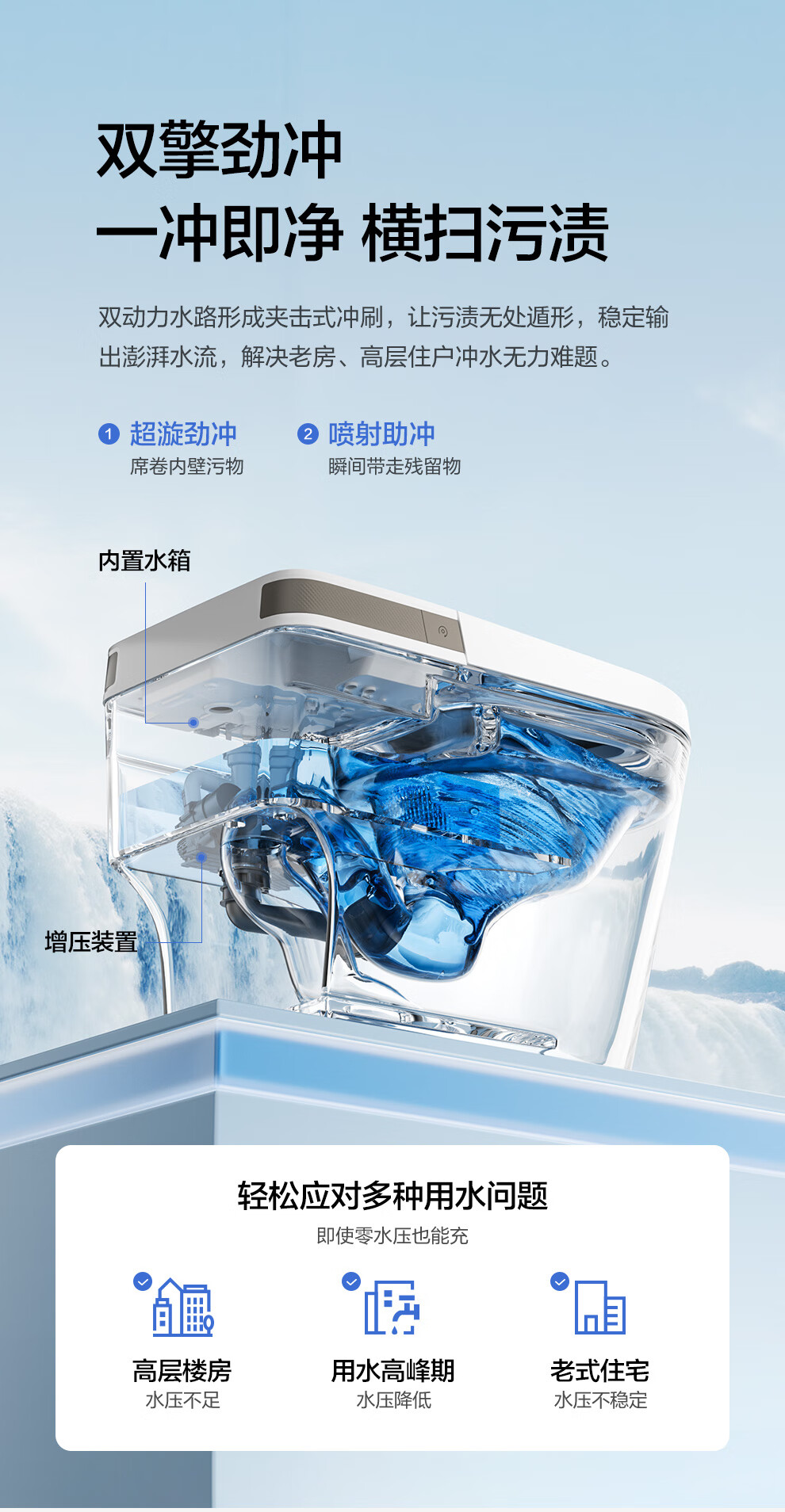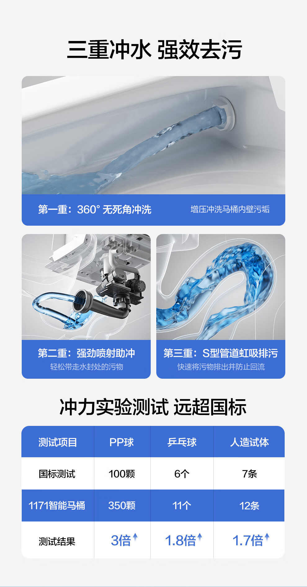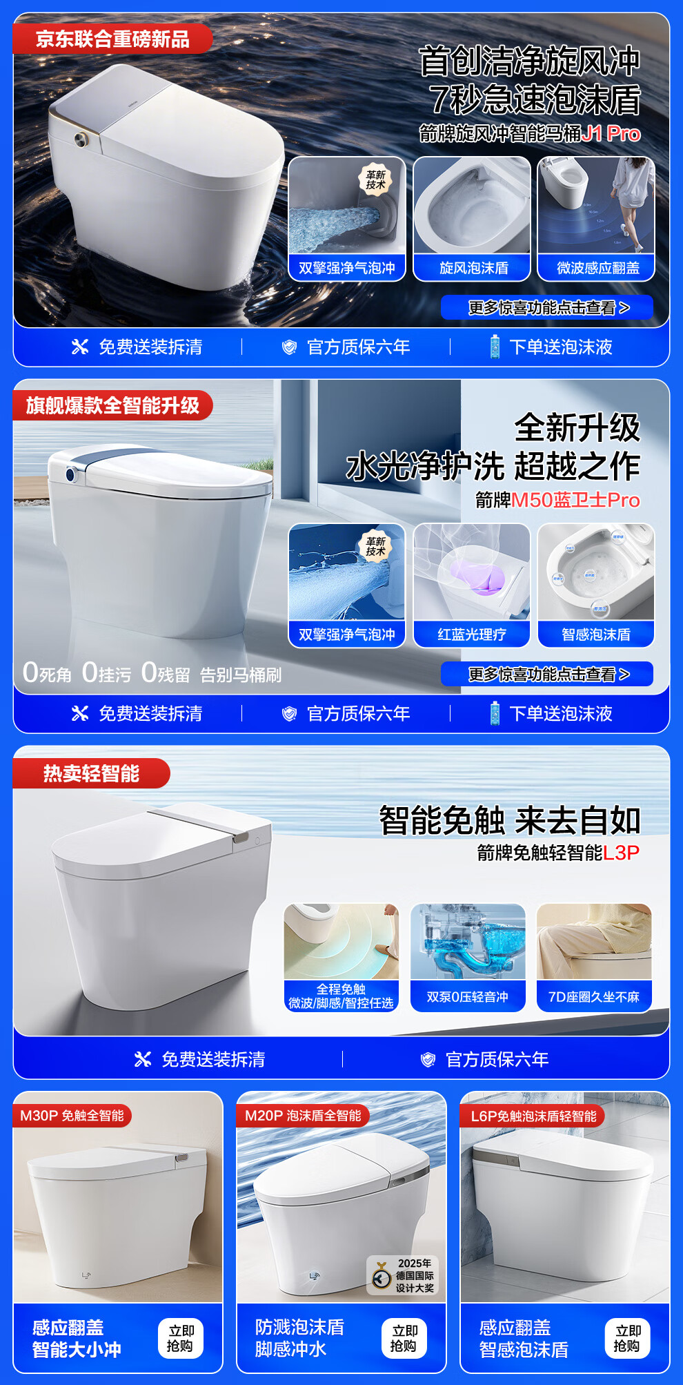 箭牌(ARROW)智能马桶京东联合旋风冲J1Pro旋风魔力泡自动翻盖1208-PM 305坑距