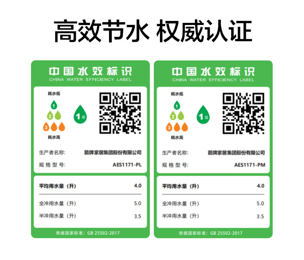 箭牌(ARROW)马桶家用直冲式坐便器大冲力座便坐厕1级水效AEB12601-1M 305坑距