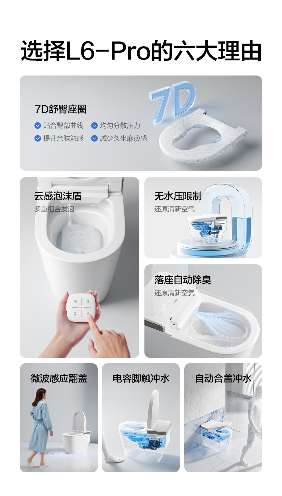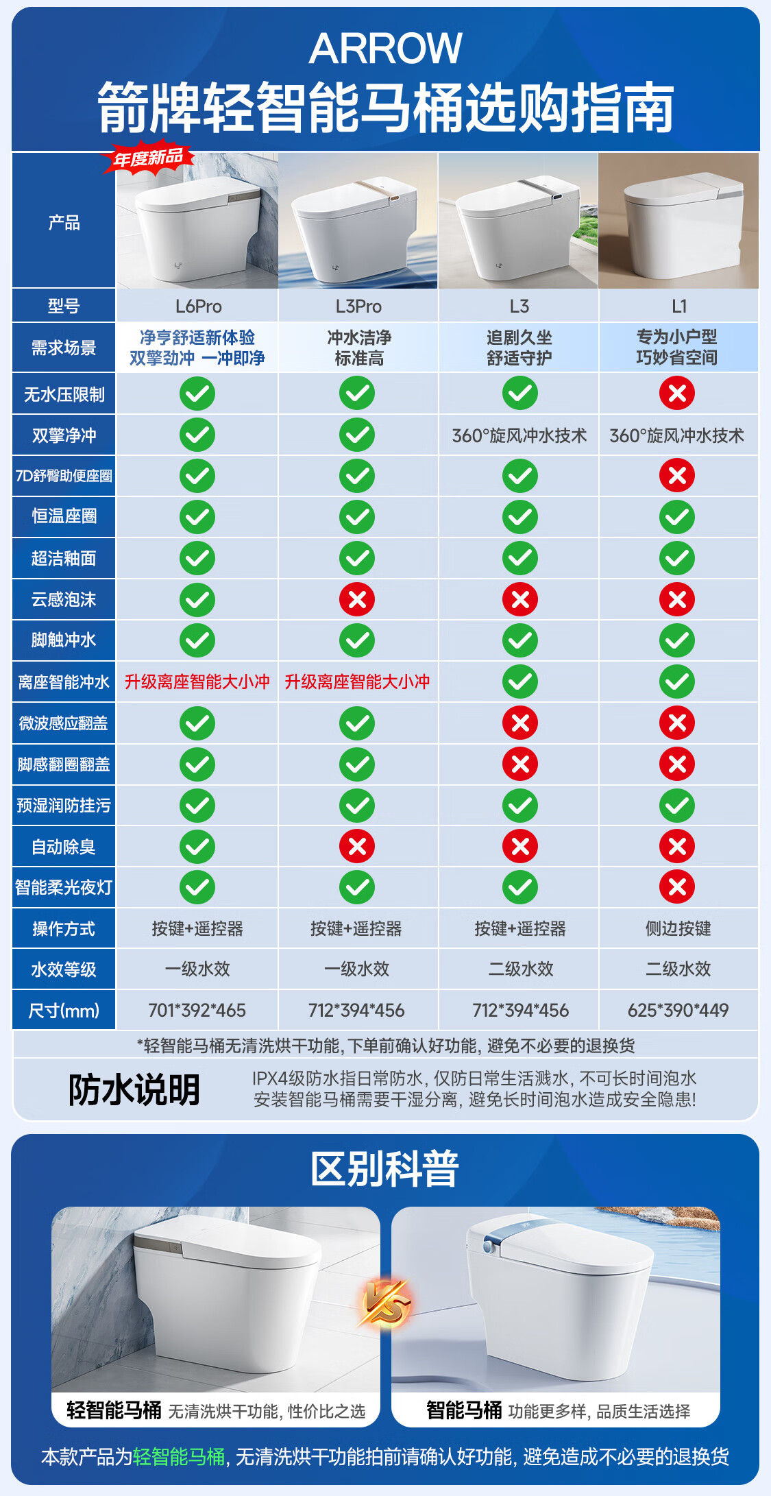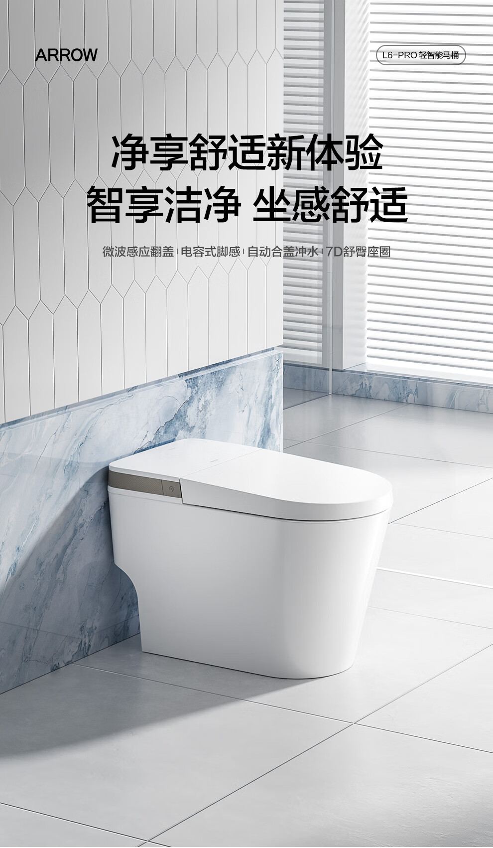 箭牌(ARROW)轻智能马桶L6P泡沫盾轻音冲自动翻盖AES1171-PM 305坑距免费送装