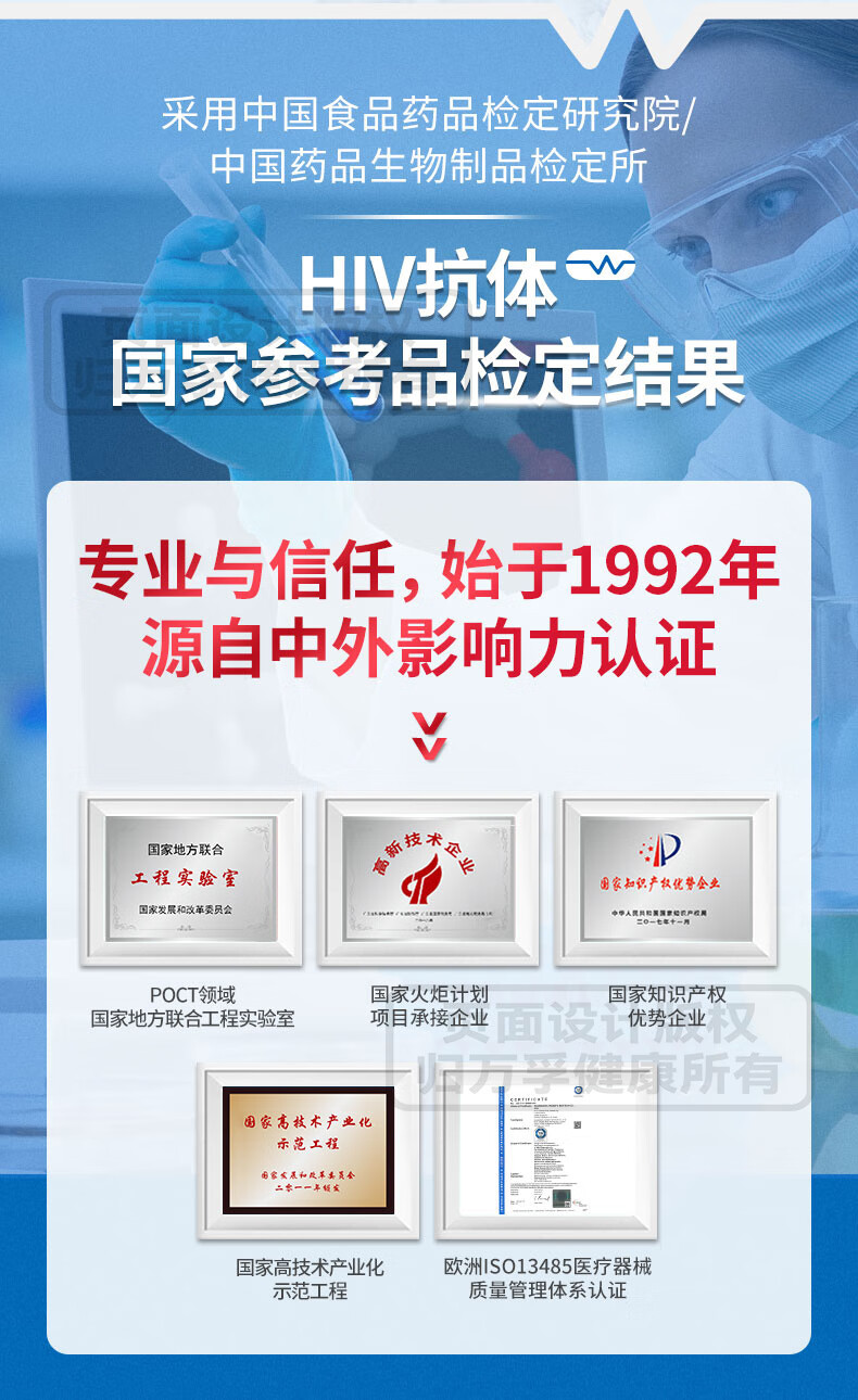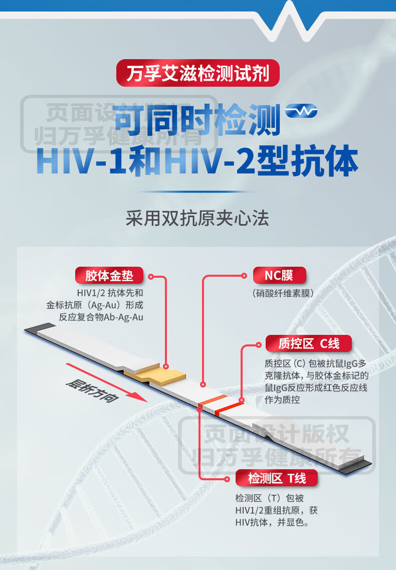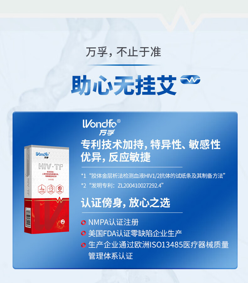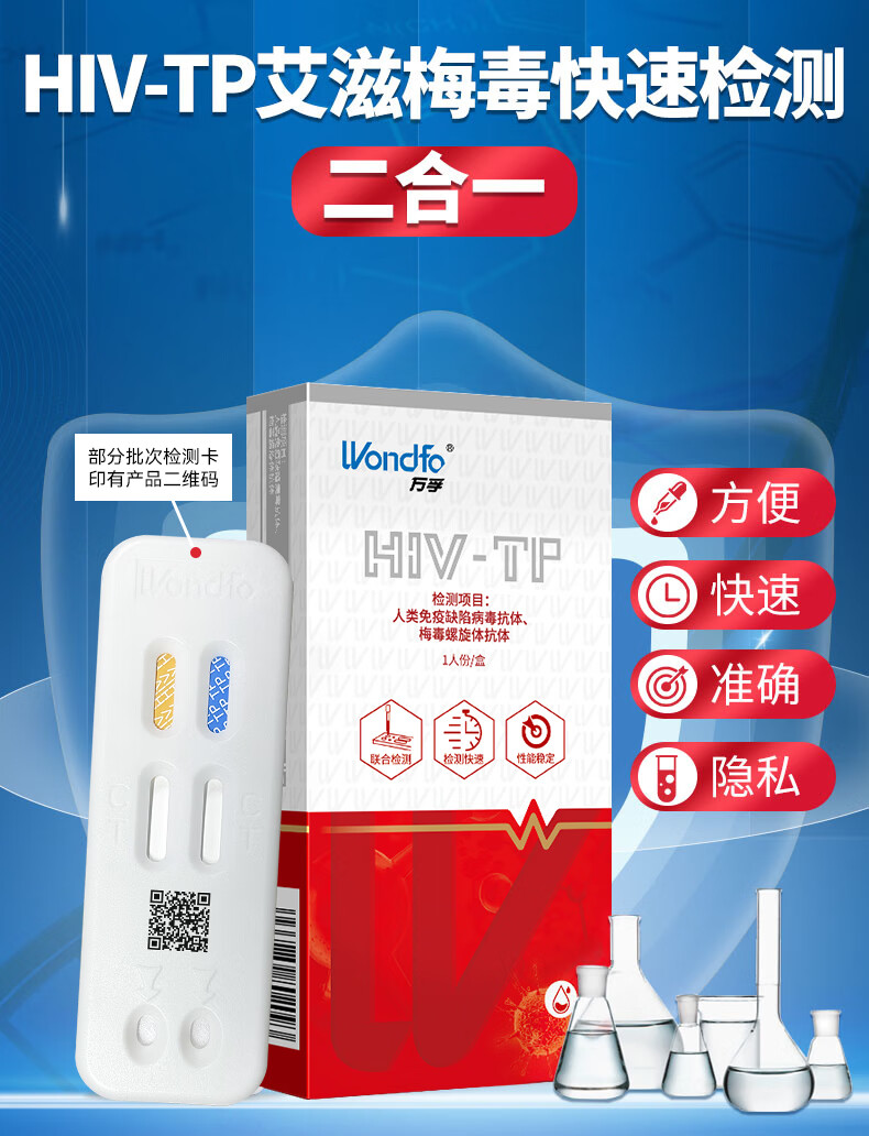 万孚艾滋+梅毒二联检测卡 非四代hiv艾滋检测 艾滋病检测试纸 HIV试纸