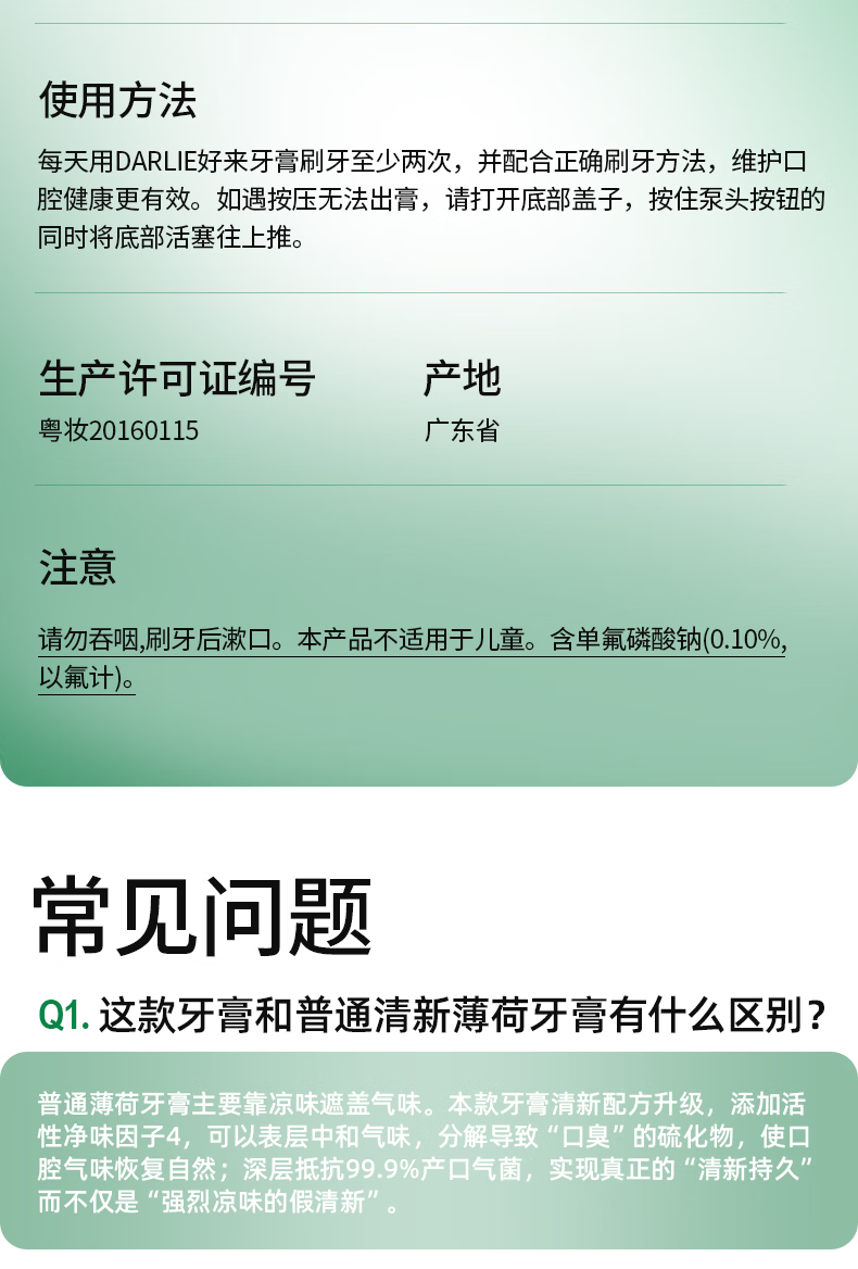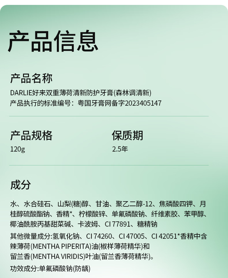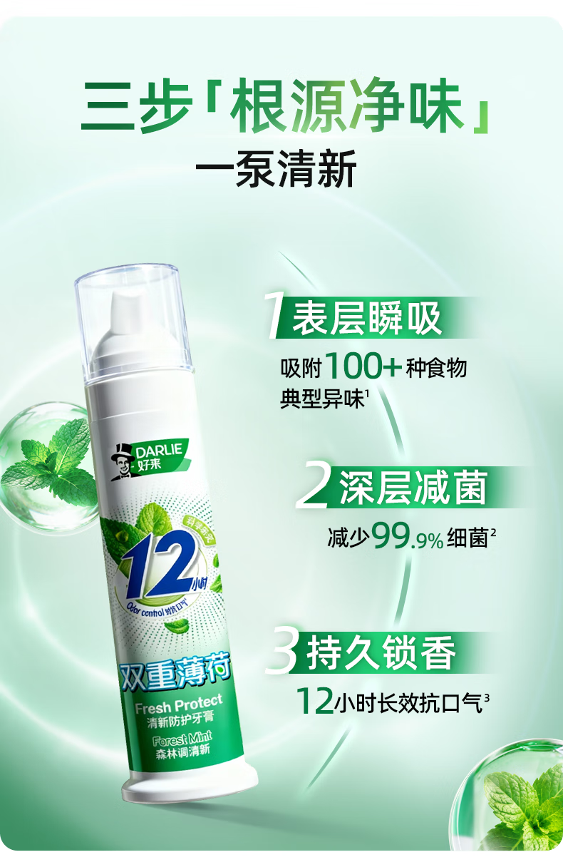 DARLIE好来(原黑人)双重薄荷清新抗口气深层减菌直立按压泵式牙膏120g