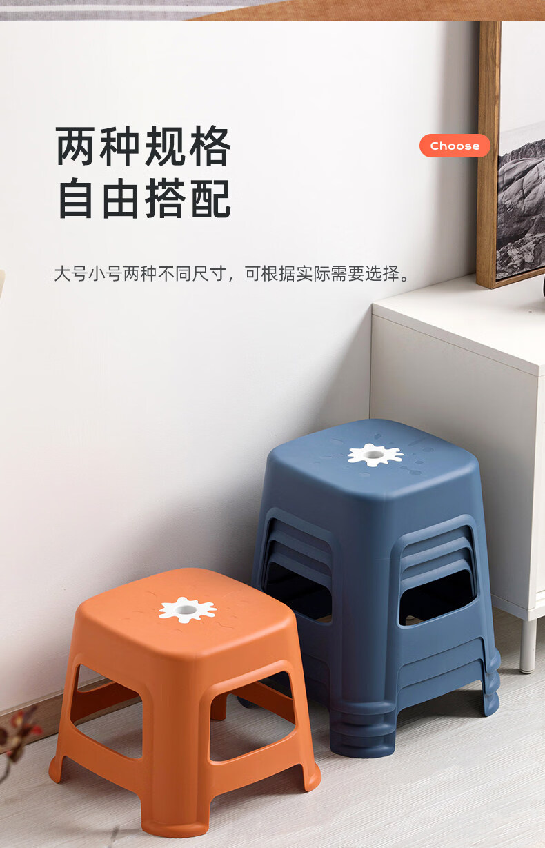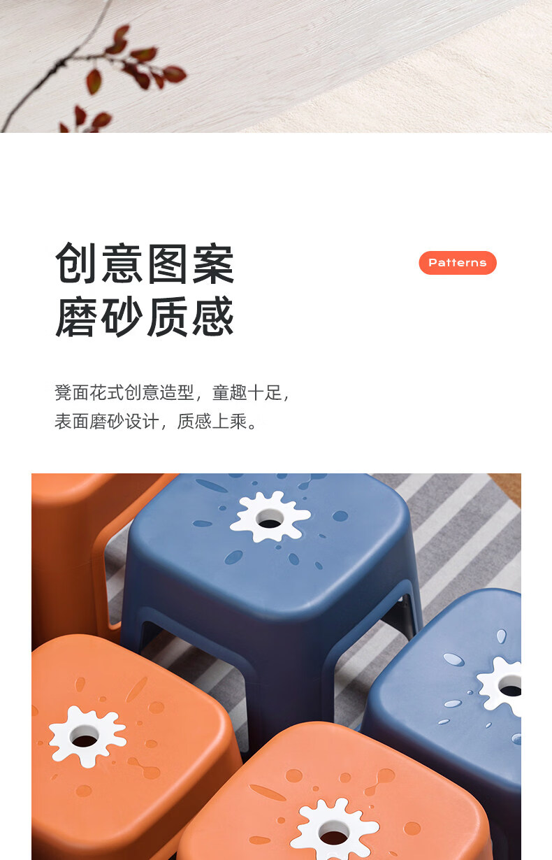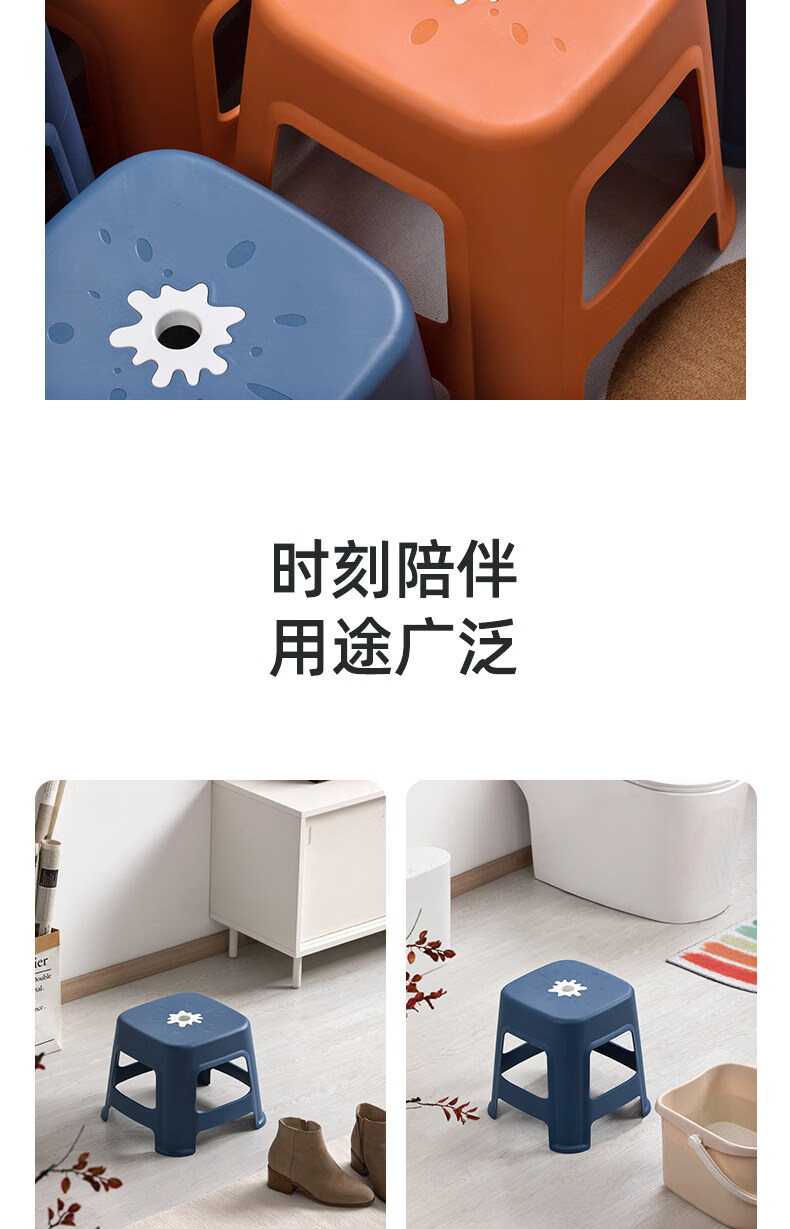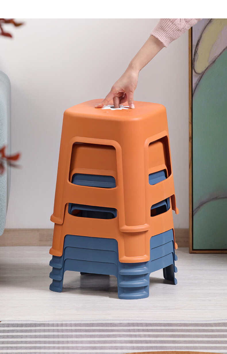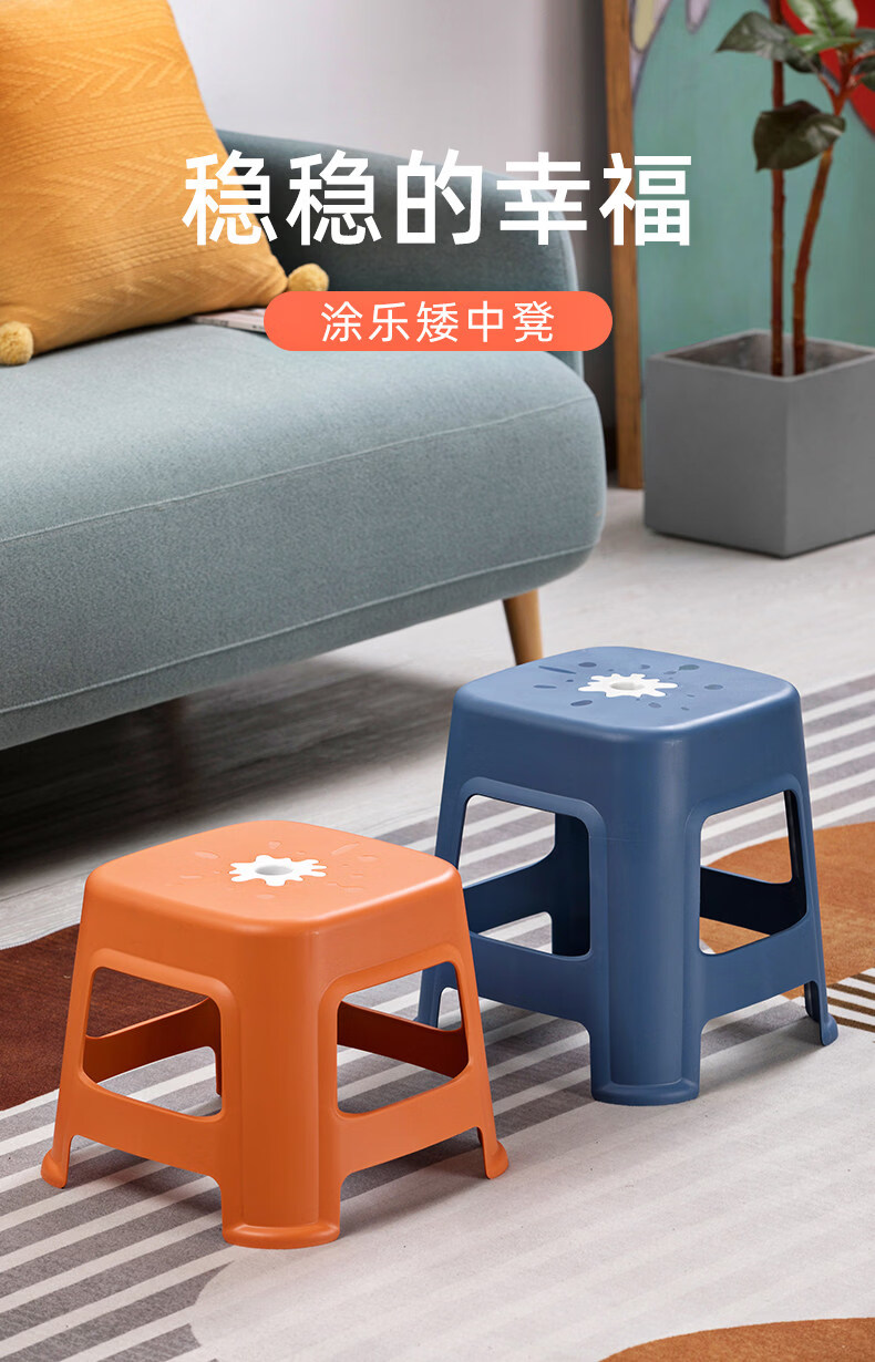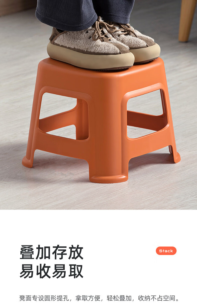 茶花(CHAHUA)加厚小凳子家用换鞋矮凳客厅茶几塑料宿舍出租屋用通用板凳可叠放 大号款【魅力橙】1个装