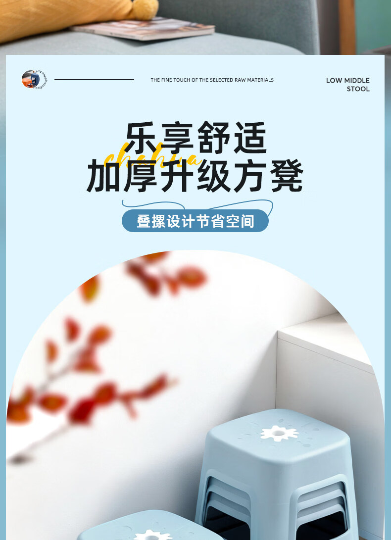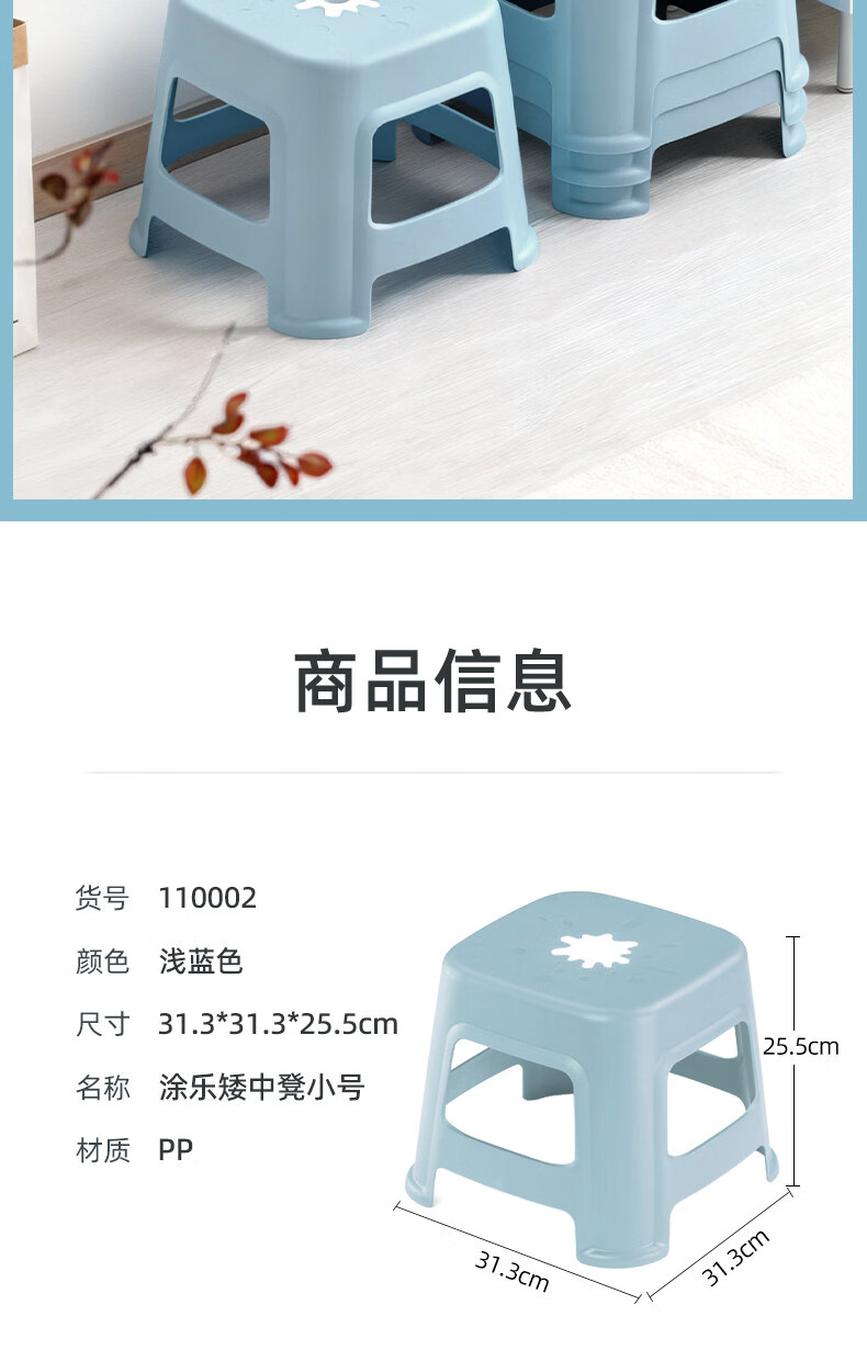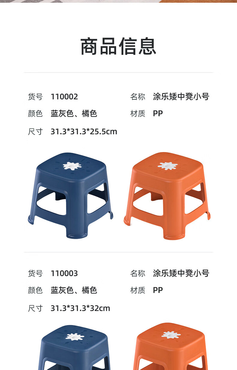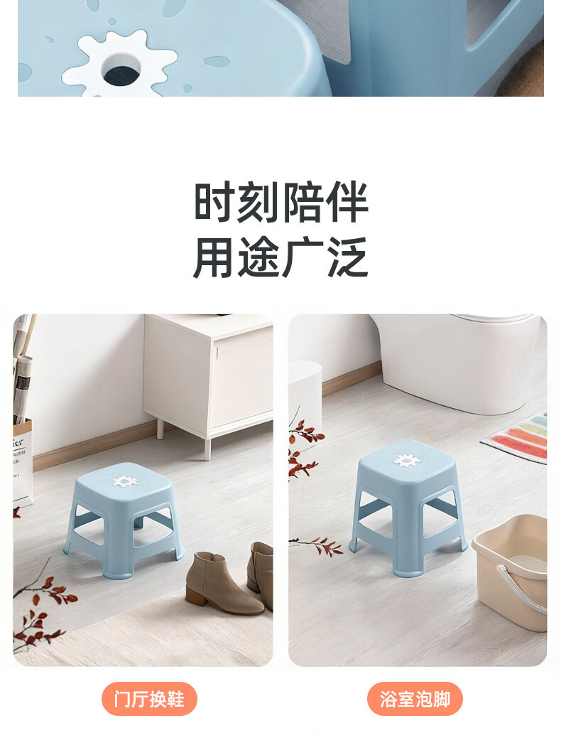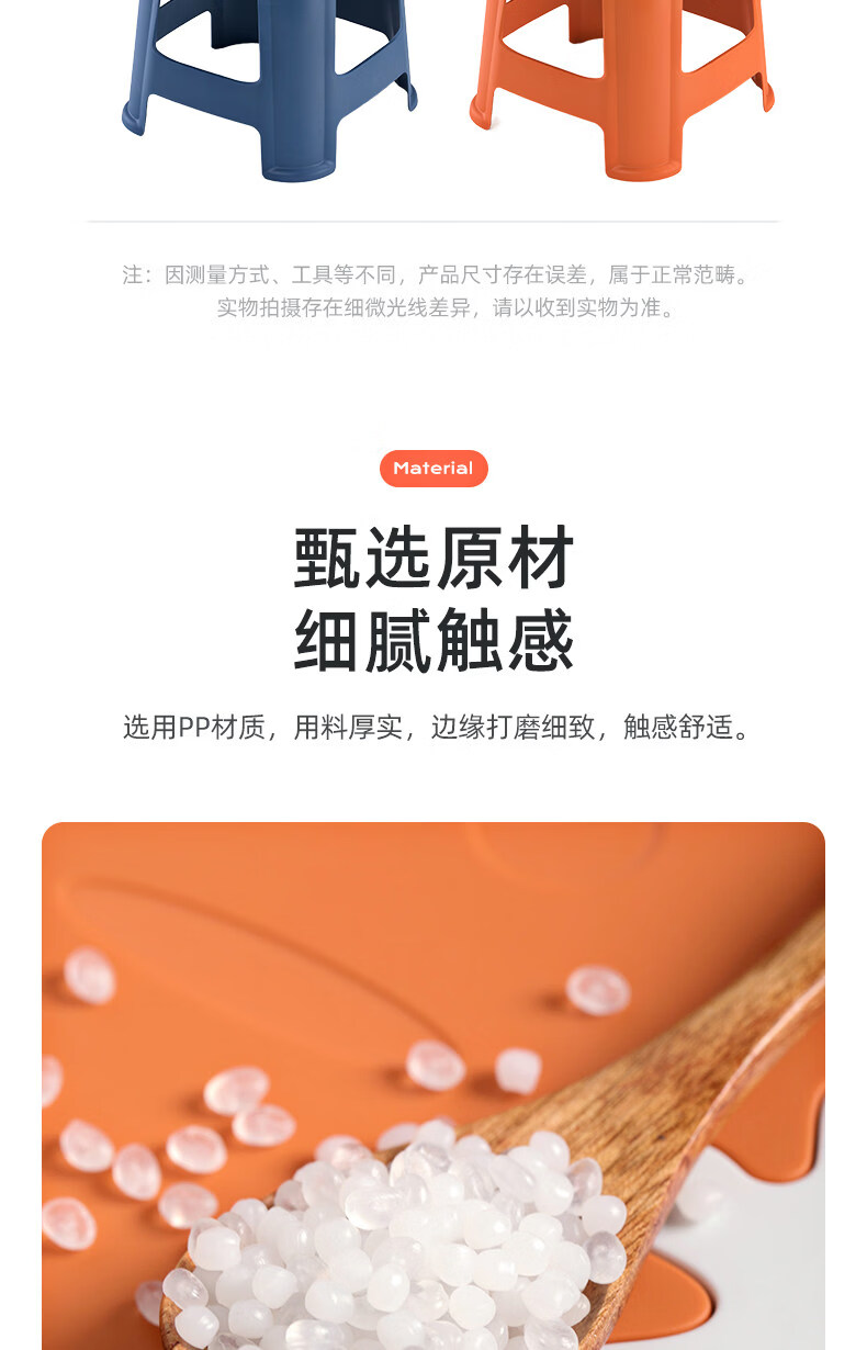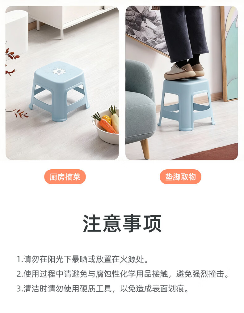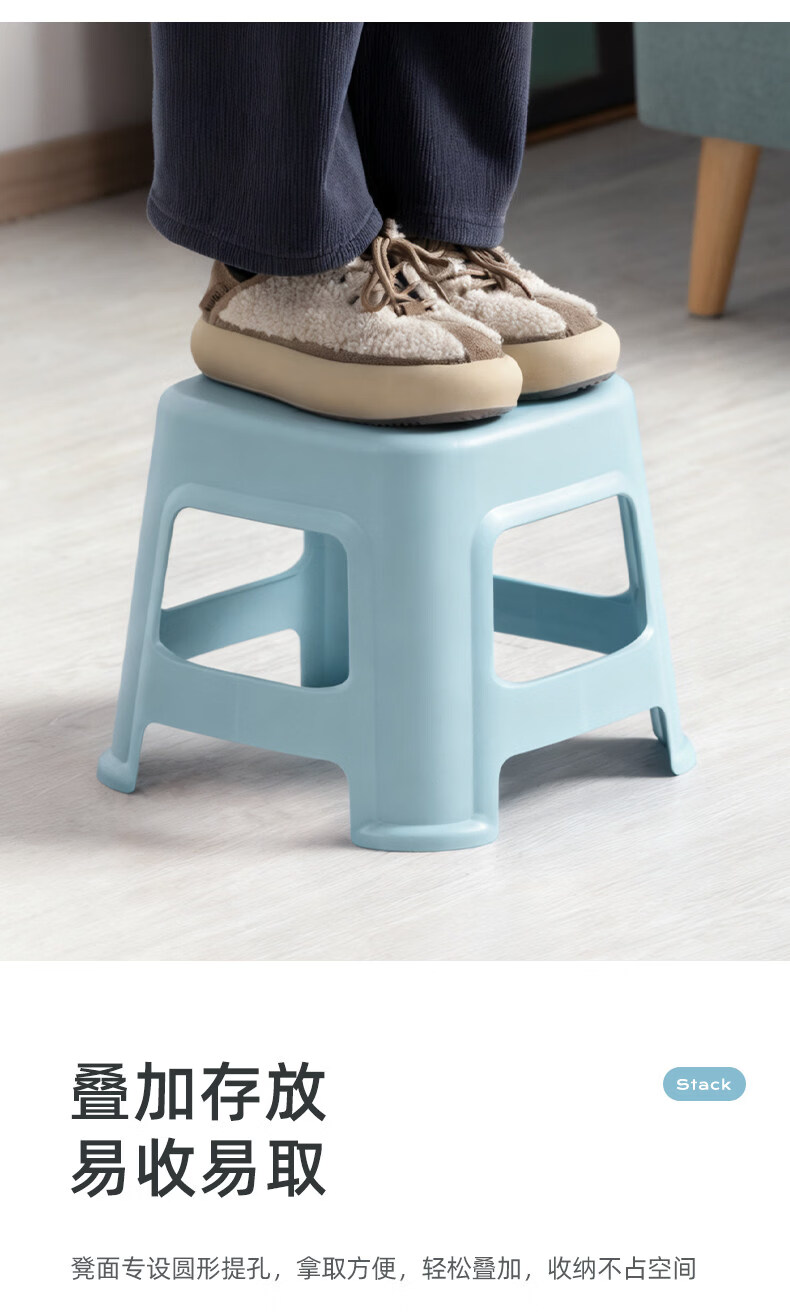 茶花(CHAHUA)加厚小凳子家用换鞋矮凳客厅茶几塑料宿舍出租屋用通用板凳可叠放 大号款【魅力橙】1个装