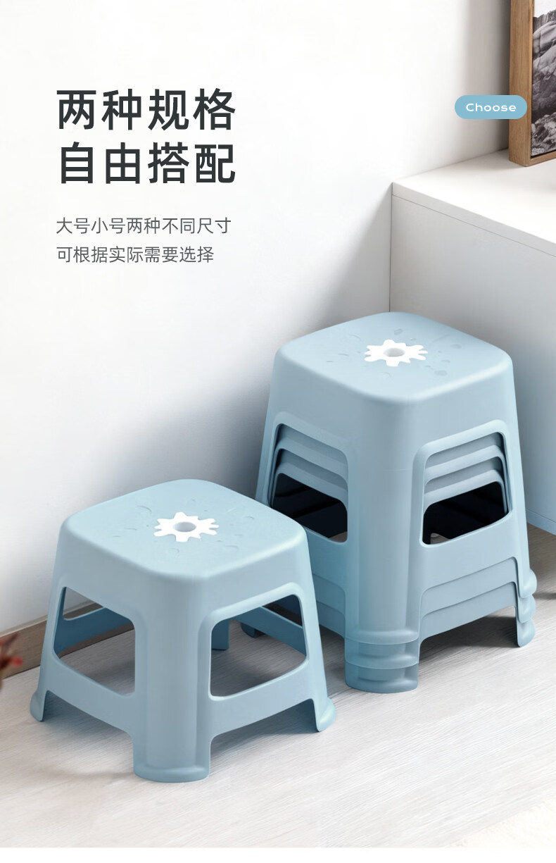 胖东来代购同款塑料凳子加厚加宽塑料凳子加厚家用餐桌凳成人经济 灰紫大号-高47.5cm