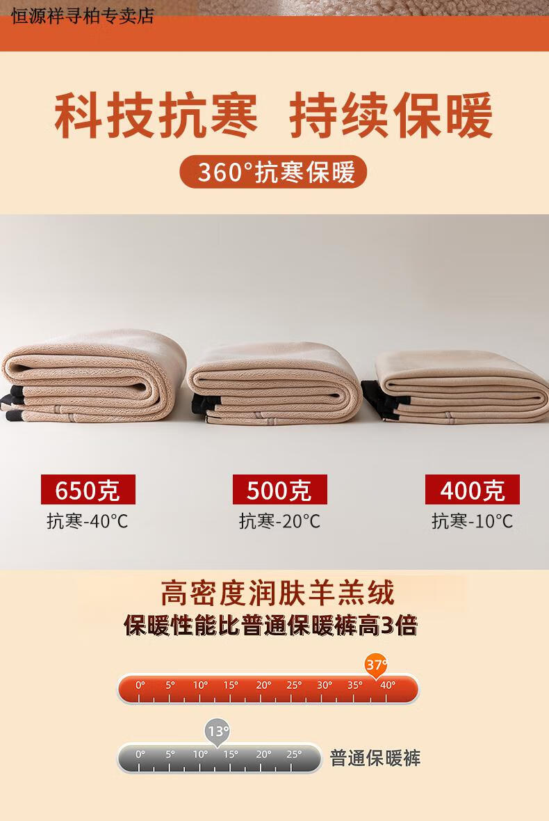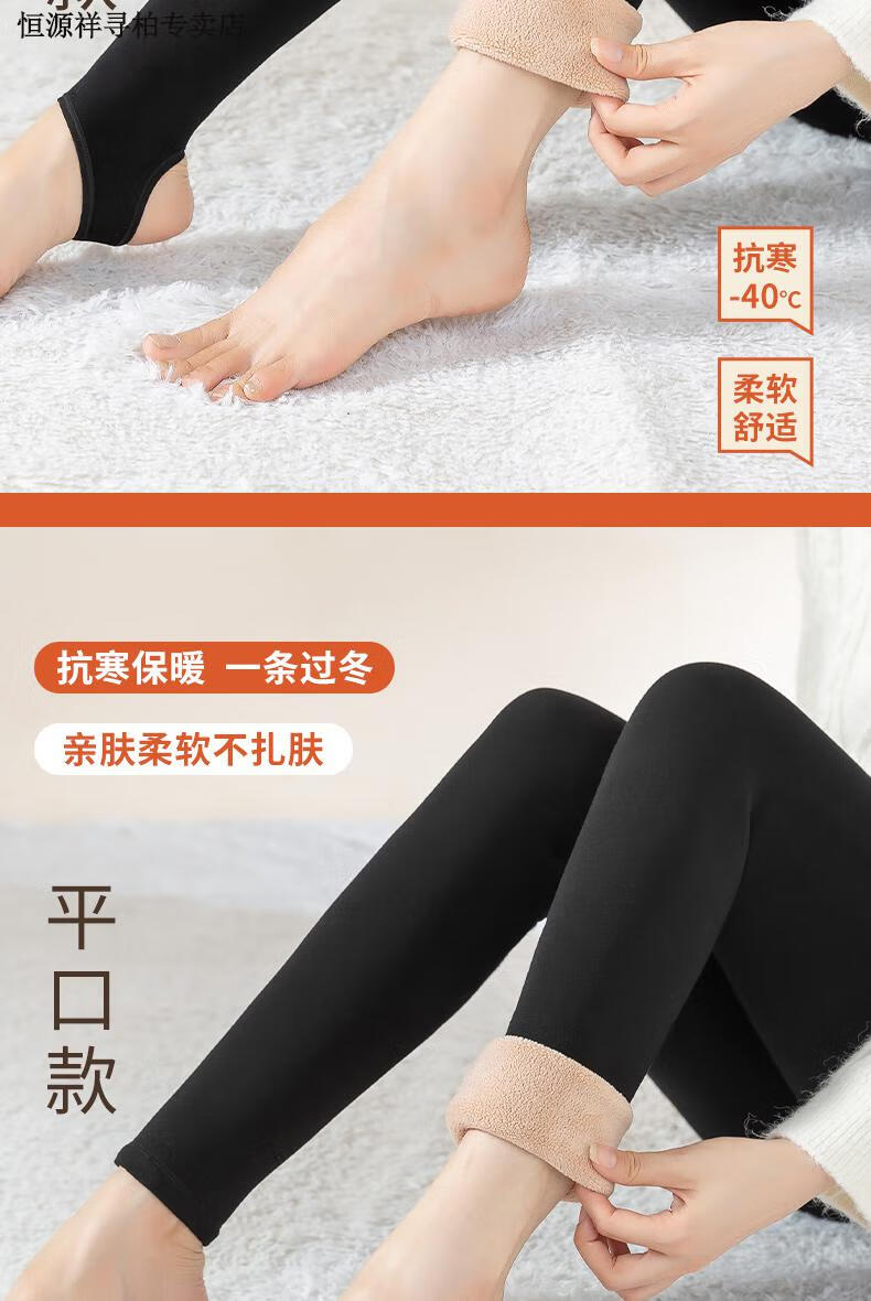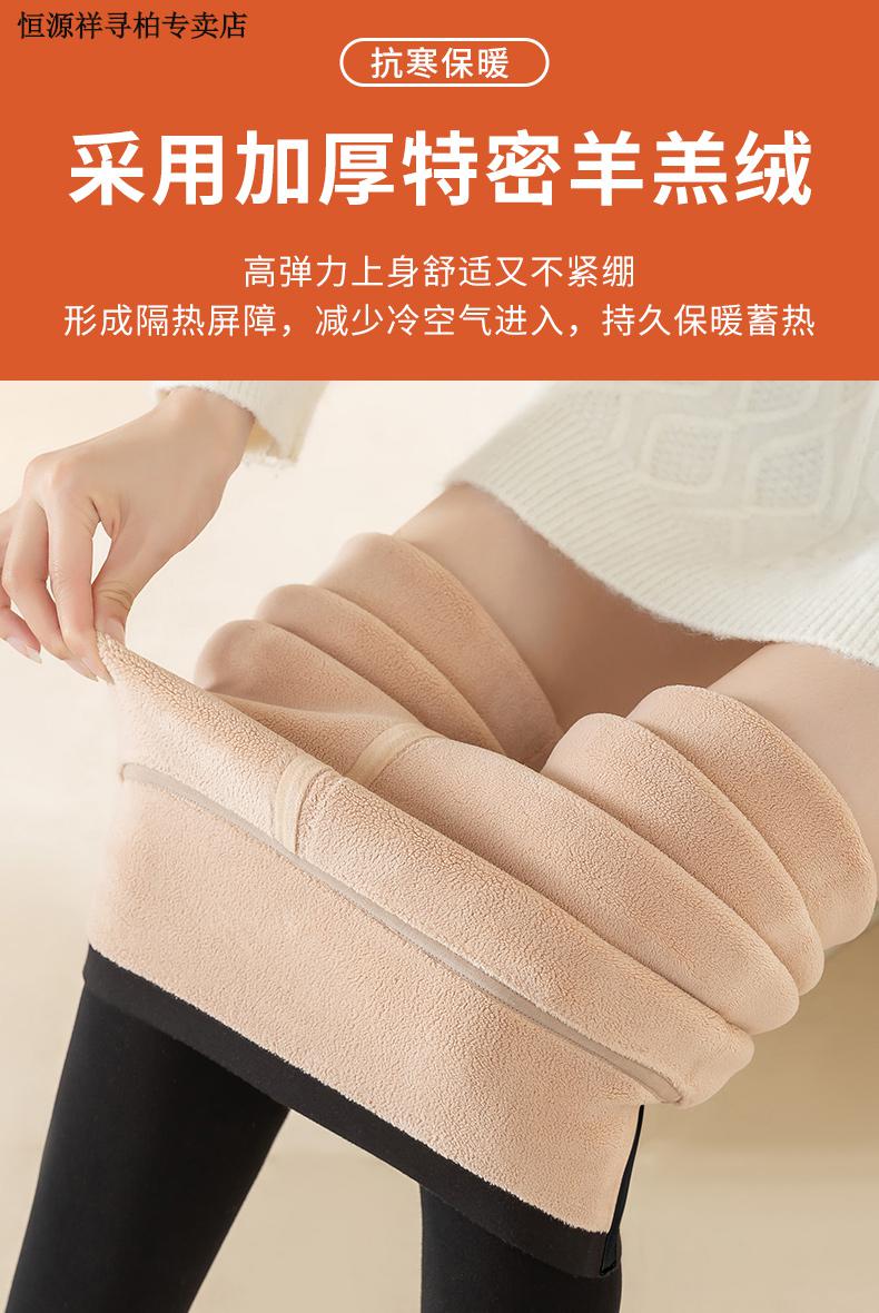 恒源祥品牌羊羔绒打底裤女外穿冬季加绒加厚高腰保暖裤大码东北特厚 黑色平角400克 2XL 150-180斤