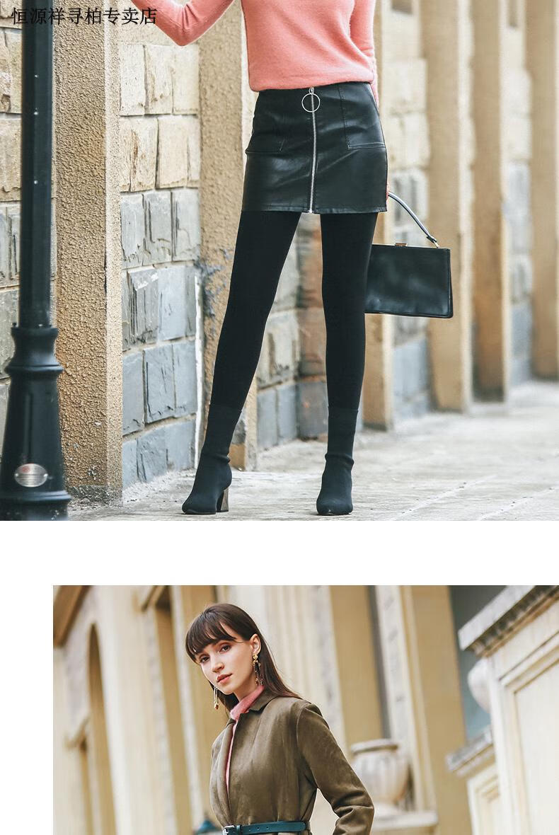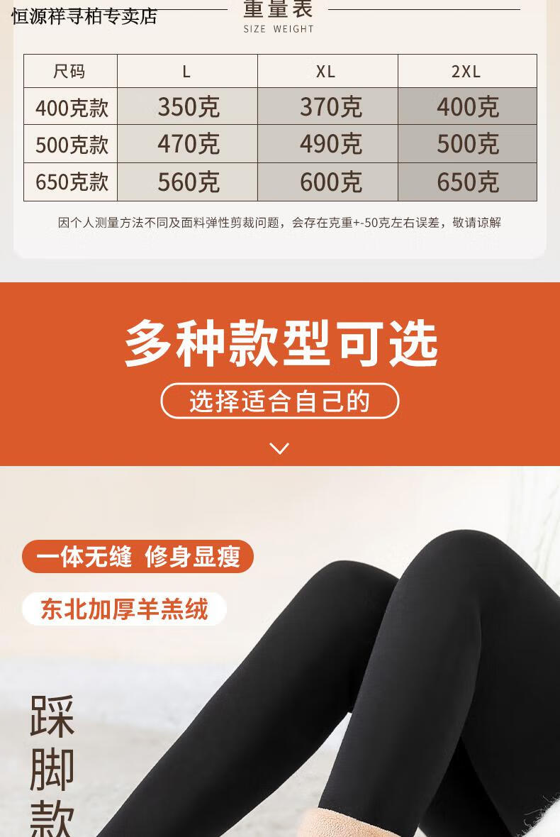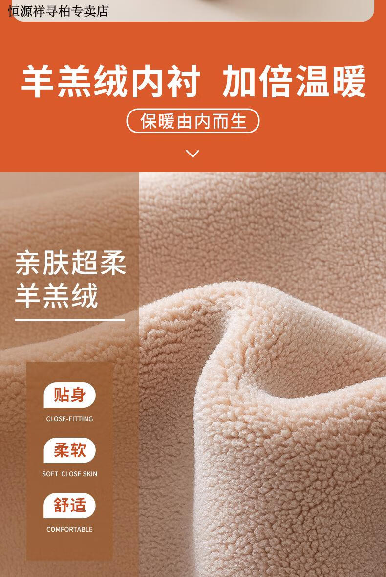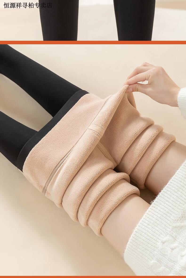 恒源祥品牌羊羔绒打底裤女外穿冬季加绒加厚高腰保暖裤大码东北特厚 黑色平角400克 2XL 150-180斤