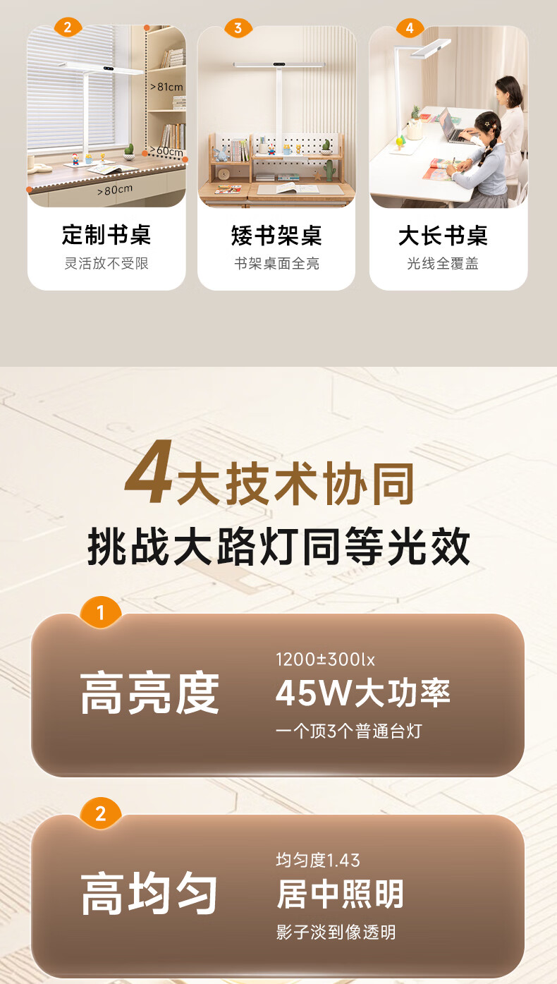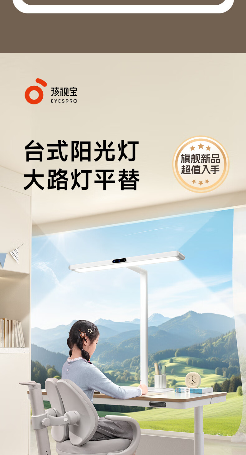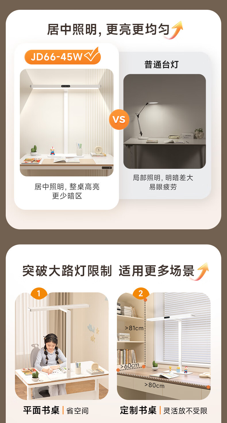 孩视宝京东集采JC系列S3台灯护眼学生学习全光谱桌面大路灯JD66-45W