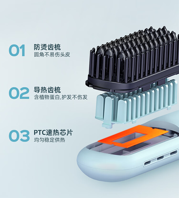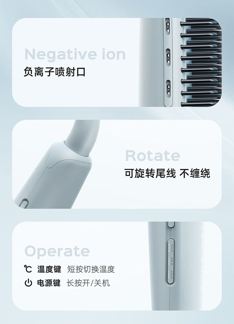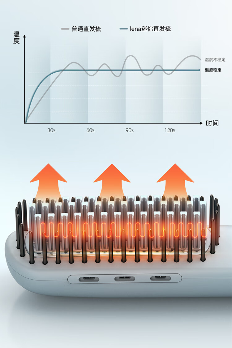 lena直发梳负离子 蓬松梳内扣 迷你便携刘海烫发梳不伤发 短发拉直电梳子 年会礼品新年礼物 LN-F7