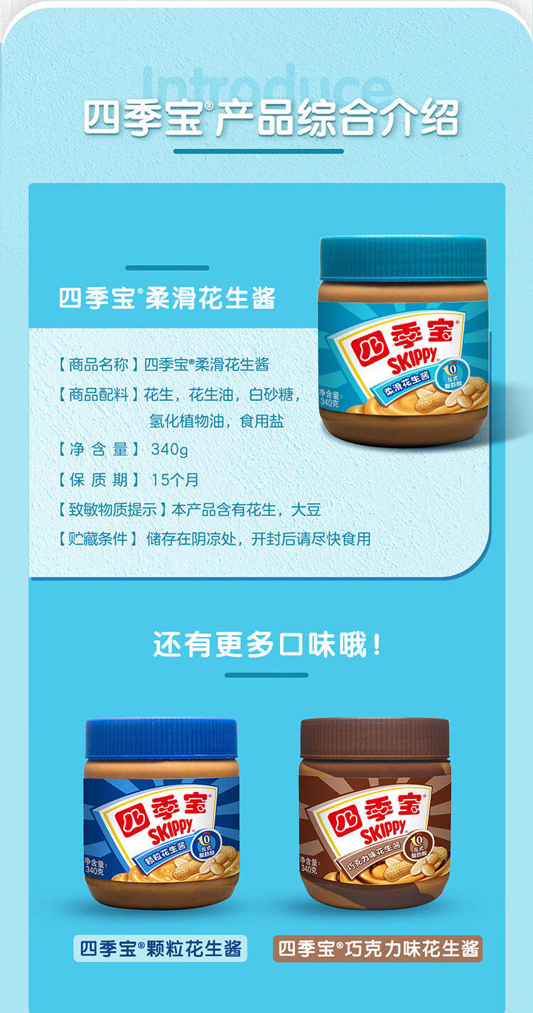 四季宝(skippy)柔滑花生酱 早餐面包酱 拌饭拌面酱 调味酱 火锅蘸料340g+50g