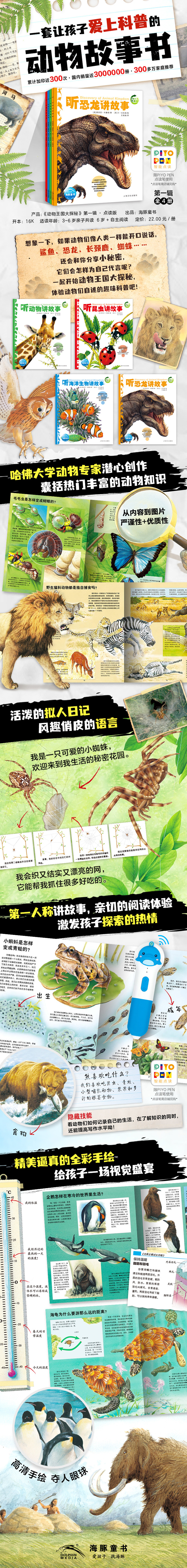 【点读版】动物王国大探秘第一辑全4册动物世界听海洋生物讲故事听恐龙讲故事听昆虫讲故事听动物讲故事3-6-9岁儿童动物科普书小学生一二三年级课外书 动物王国大探秘(第1辑):全4册(点读版)