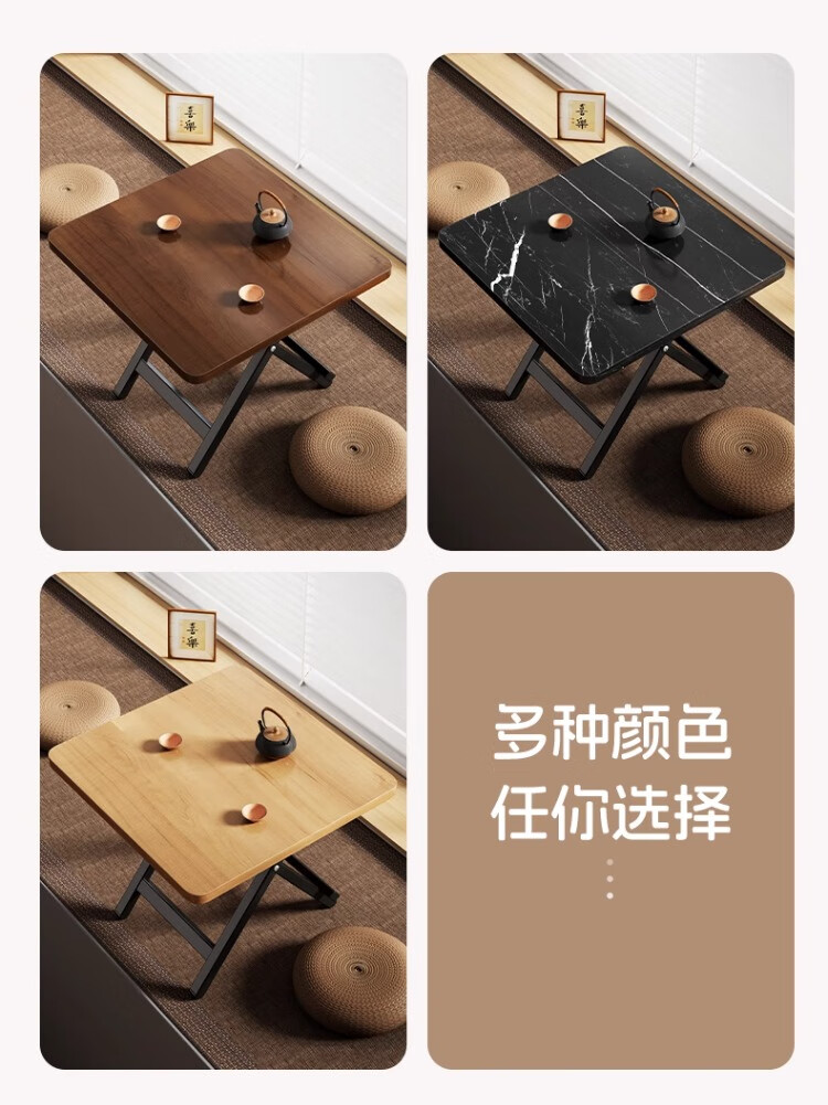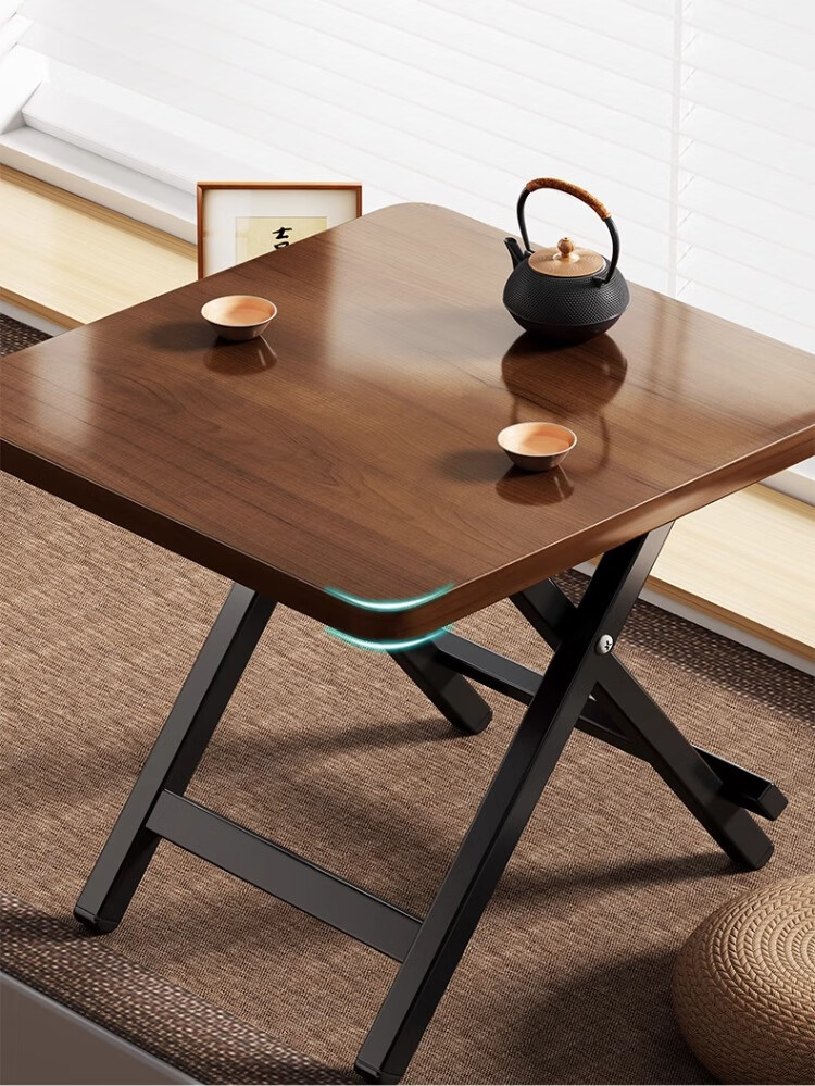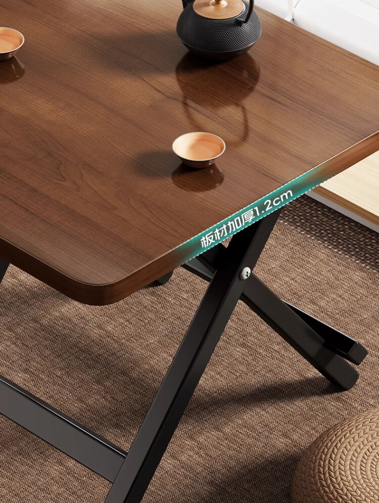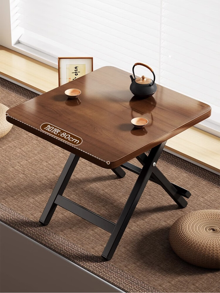 尔思家茶几小户型飘窗桌可折叠边几多功能茶几餐桌两用客厅家用简易饭桌 深胡桃木48*48*50【加厚桌面-黑烤漆腿】