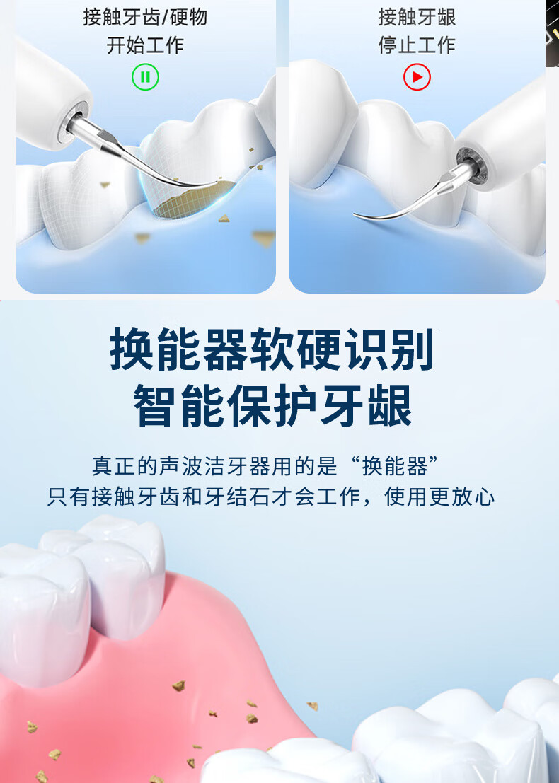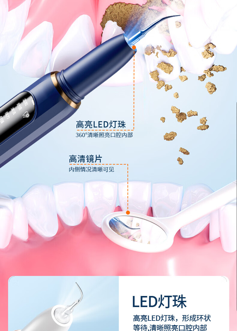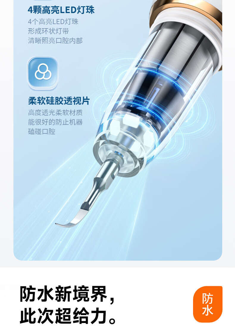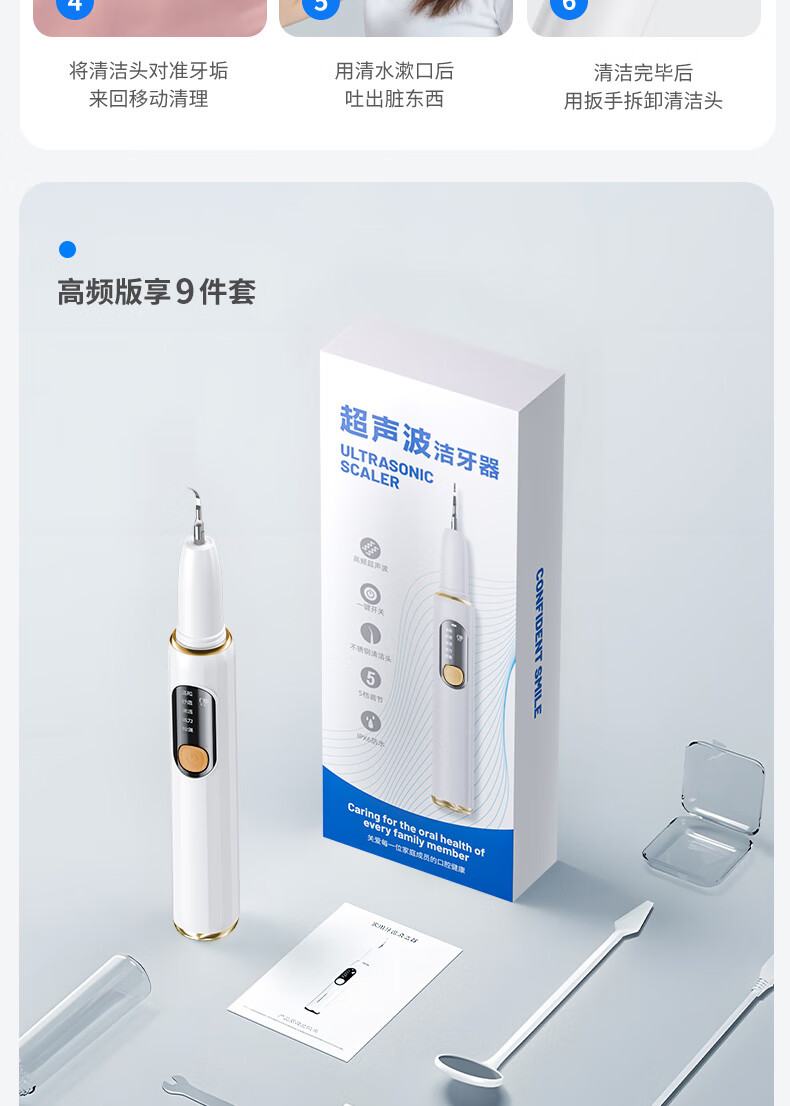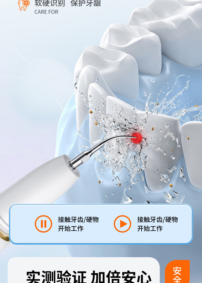 嘉柏兰超声波洁牙器洗牙器结石去除清洁牙齿牙垢冲洗器去黄牙结石清洁器烟渍茶渍工具送父母长辈 闪耀白(高频版)+2喷头+9件套