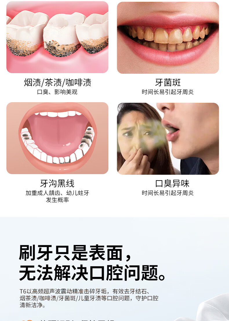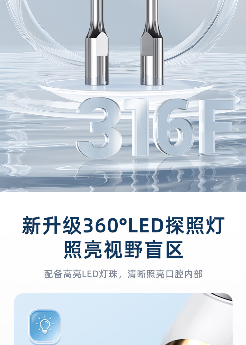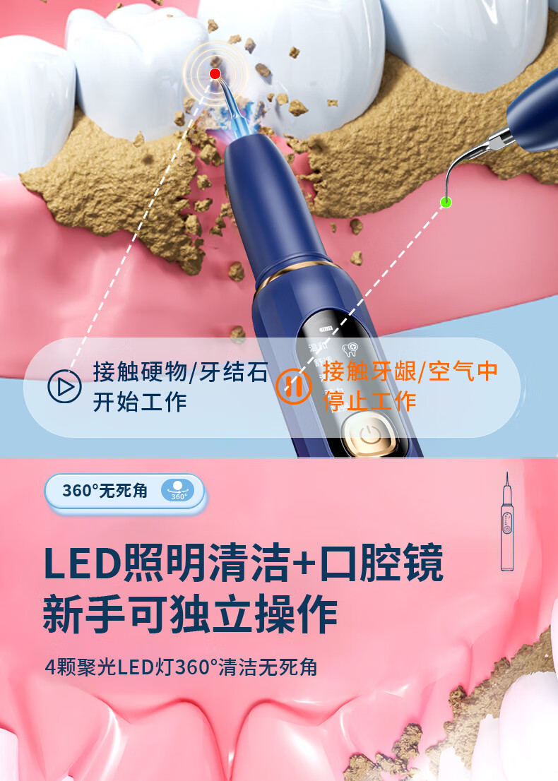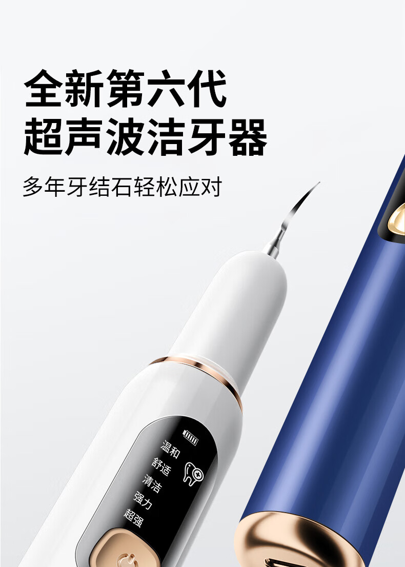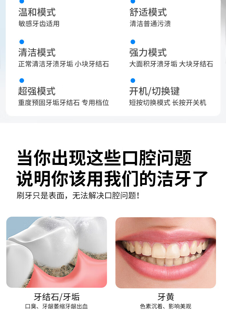 嘉柏兰超声波洁牙器洗牙器结石去除清洁牙齿牙垢冲洗器去黄牙结石清洁器烟渍茶渍工具送父母长辈 闪耀白(高频版)+2喷头+9件套