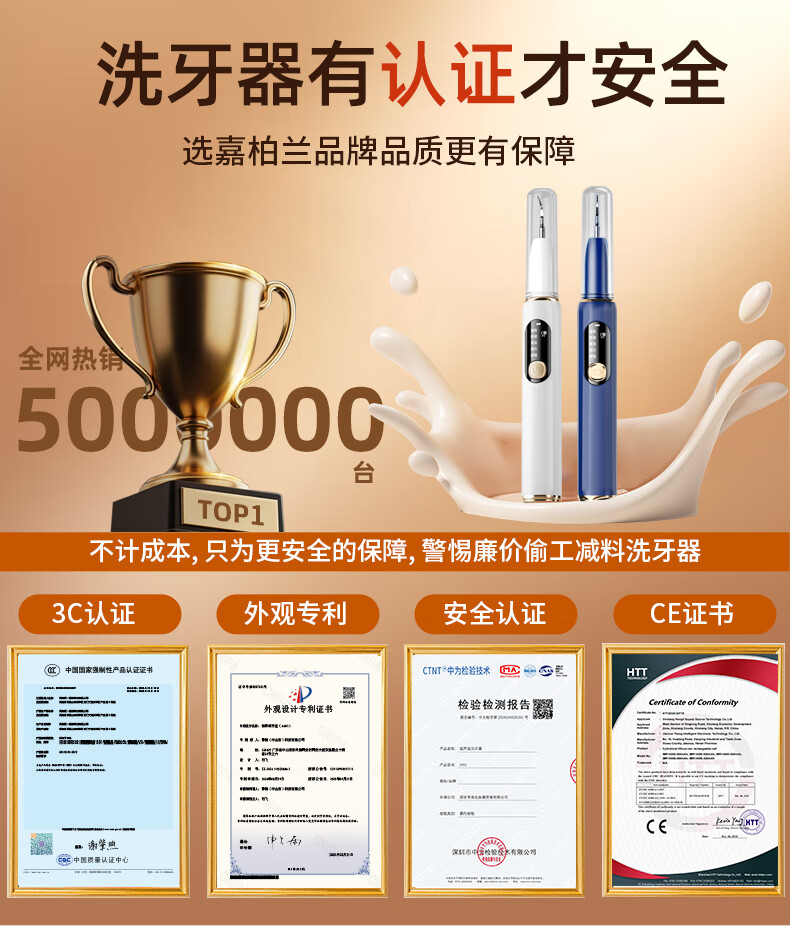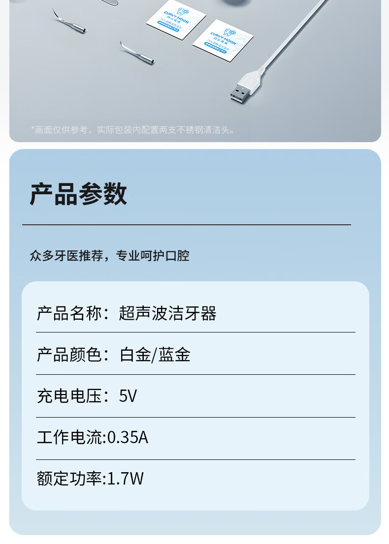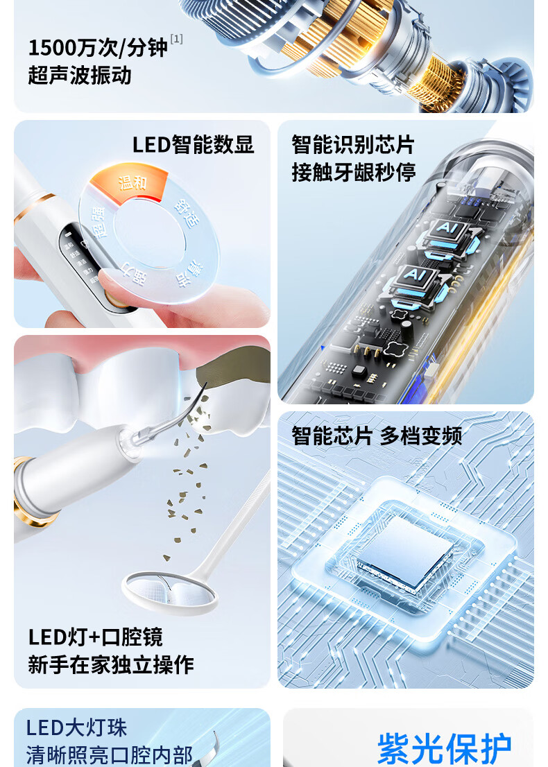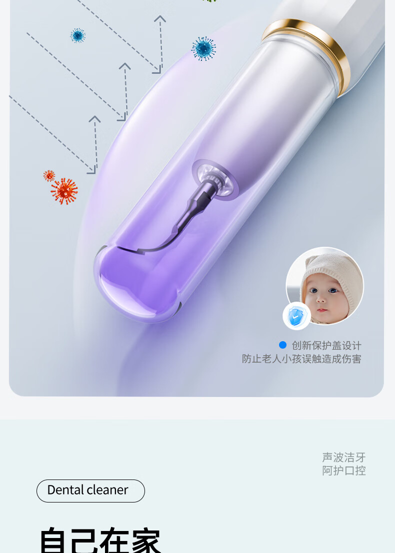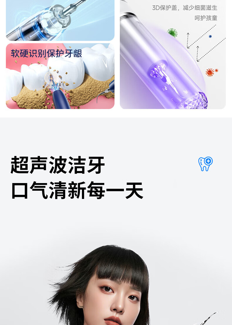 嘉柏兰超声波洁牙器洗牙器结石去除清洁牙齿牙垢冲洗器去黄牙结石清洁器烟渍茶渍工具送父母长辈 闪耀白(高频版)+2喷头+9件套