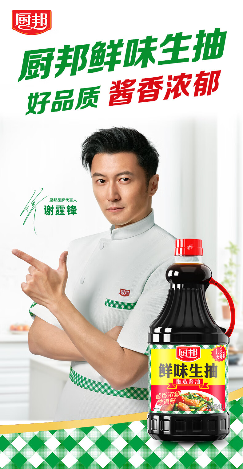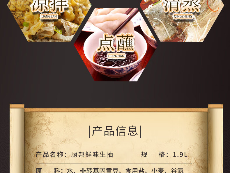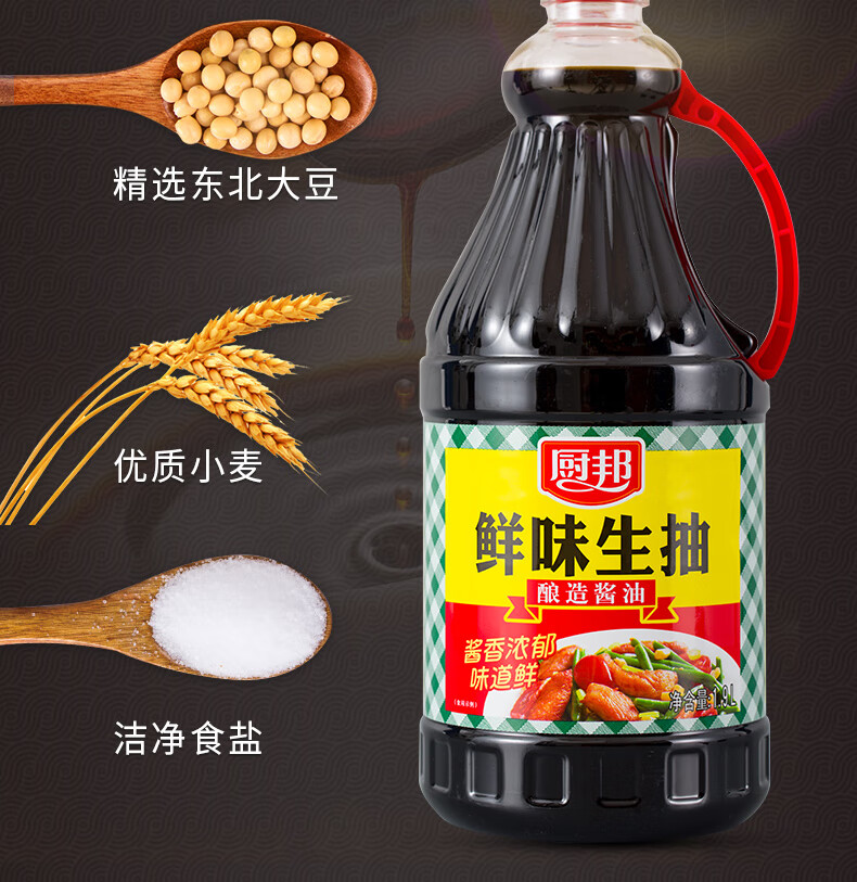 厨邦酱油 鲜味系列 生抽 酱油【黄豆酱油】1.9L 酿造酱油 大瓶超值装