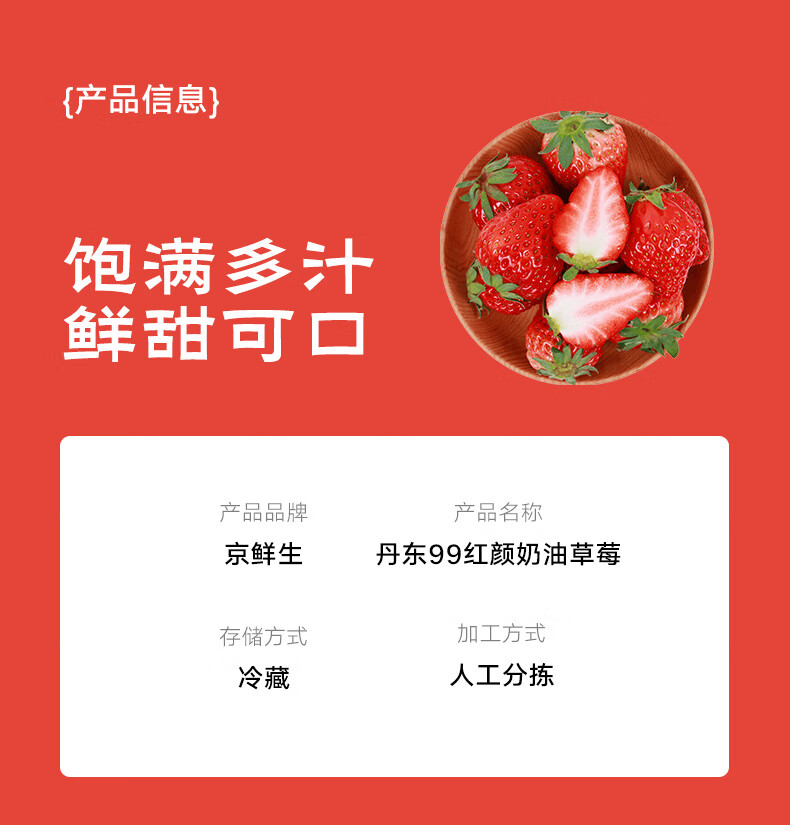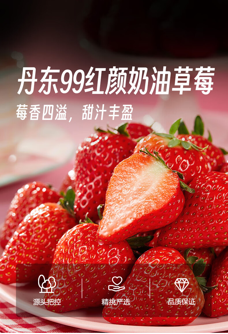 京鲜生 丹东99红颜奶油草莓 300g装 单果14-20g 生鲜水果