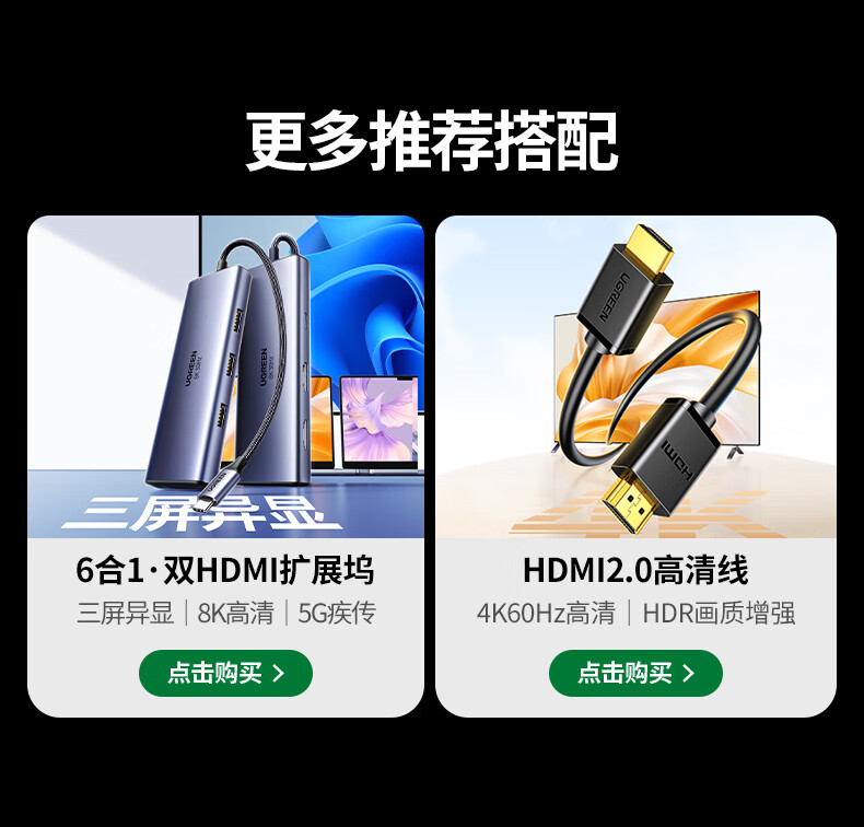 绿联Type-C扩展坞转HDMI拓展坞投屏接口转换器雷电4转接头USB适用苹果MacBook华为笔记本电脑iPad手机