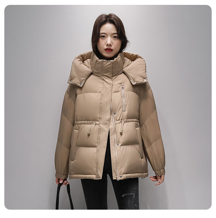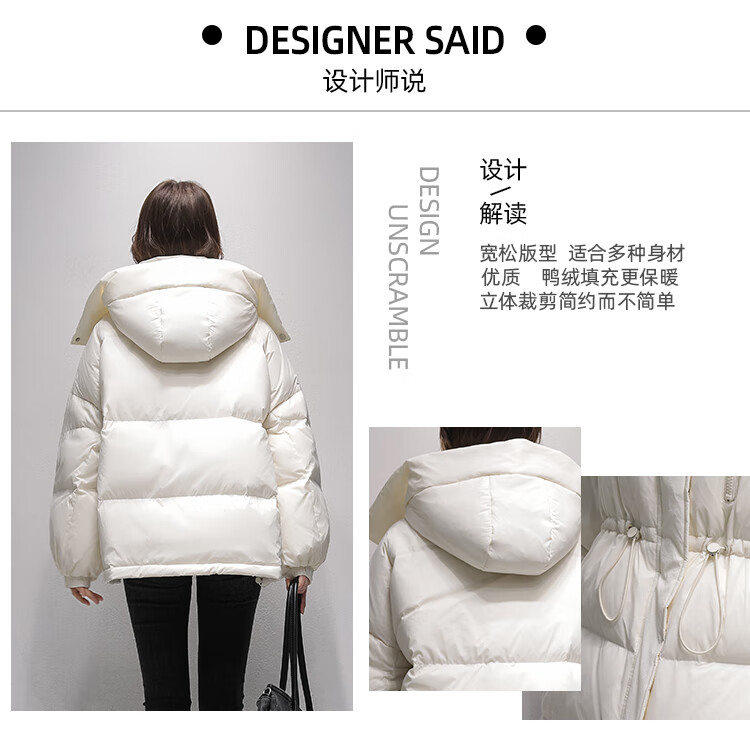 雪中飞女士短款羽绒服90鸭绒抗寒保暖时尚休闲户外连帽外套30753 米白色 S (160/84A)