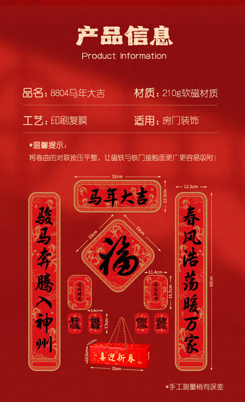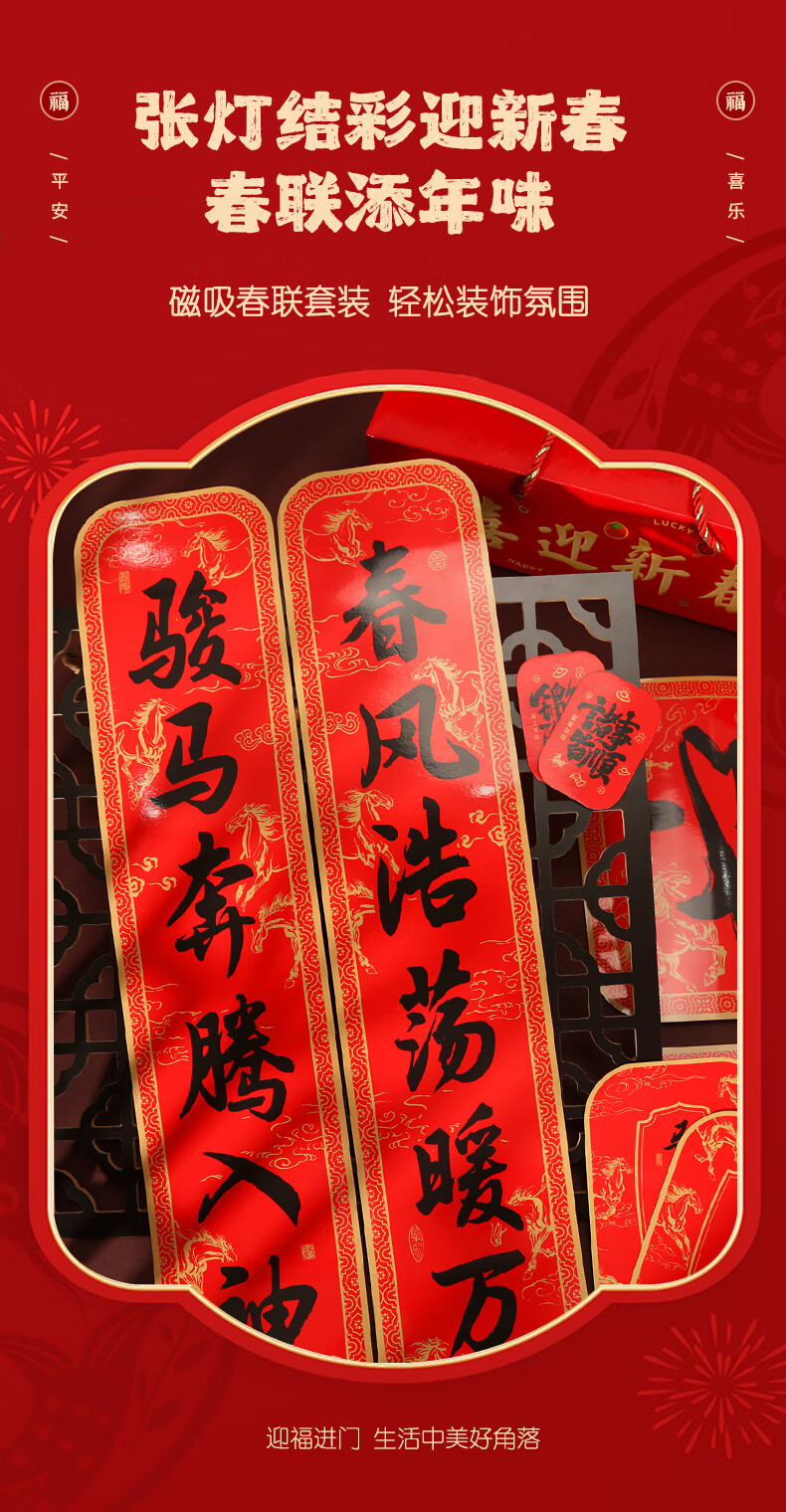 少年伴春联对联礼包 2026马年新年礼物大礼包喜迎新春员工福利磁吸春联春节福字套装马年大吉11件套8804